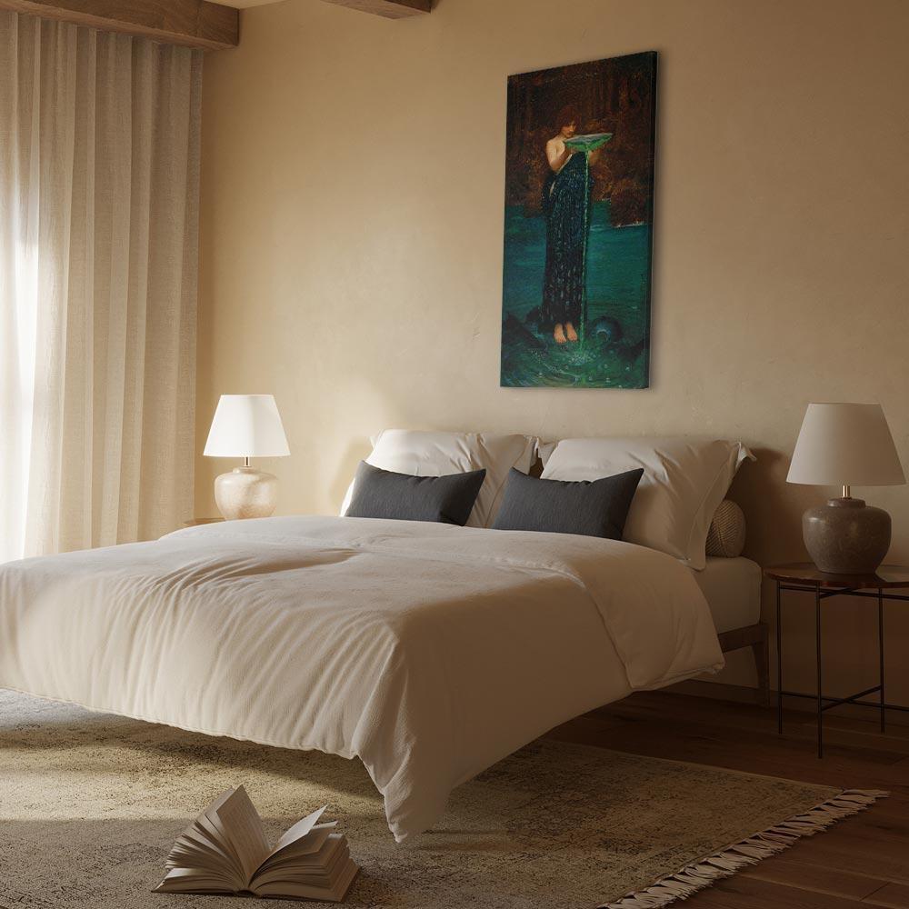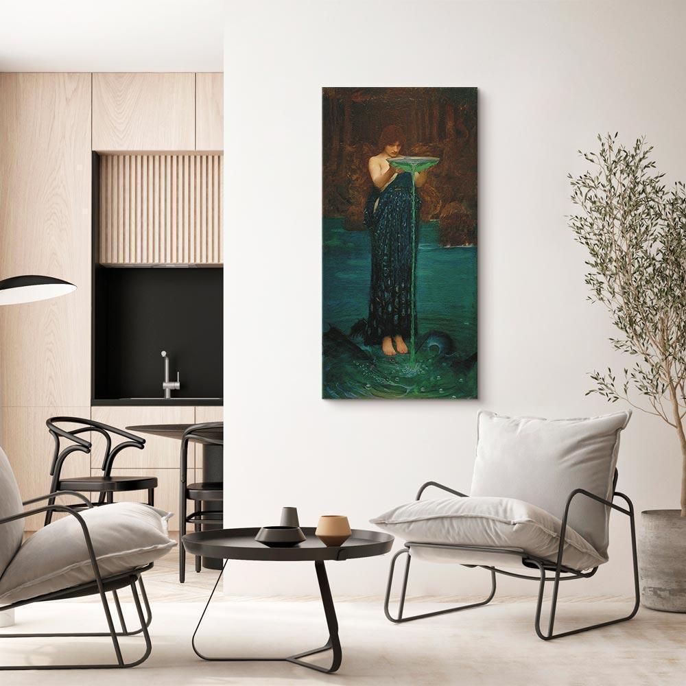 Unsere Bilder sind sicher und geruchsneutral und eignen sich daher ideal für Kinderzimmer. Die Größe wird Ihr Kind sicher beeindrucken! Bilder für Schlafzimmer sind ein echter Blickfang, genauso wie Bilder Wohnzimmer. Dekorieren Sie die Wände in Ihrem privaten Bereich mit einem Bild "Leinwandbild - John William Waterhouse – Circe Invidiosa". Wir empfehlen Bilder für Schlafzimmer , die Sie beruhigen und in eine erholsame Stimmung versetzen. Bilder aus unserer Kollektion werden Ihrem Interieur eine außergewöhnliche Atmosphäre verleihen. Unabhängig vom Raum schaffen auch Kunst Bilder eine gemütliche Atmosphäre für die Gäste. Massive Holzrahmen unterstreichen den einzigartigen Charakter der Schlafzimmerbilder, und ein schneller und sicherer Versand ist ein weiterer Vorteil, der für diese Wanddekorationen spricht Leinwandbilder sind in fünf Varianten erhältlich, sodass jeder Kunde die perfekte Option für seine Bedürfnisse findet.Die Variante auf Strukturleinwand (Standard) ist eine universelle Dekoration, die das Haushaltsbudget nicht belastet.Für Liebhaber edler Materialien ist ein Druck auf italienischer Leinwand aus 100 % Baumwolle die ideale Wahl.Und für Fans der Malerei? Hier überzeugt die außergewöhnliche Premium-Print-Technik – ein Bild, das auf Strukturleinwand gedruckt und von Hand mit einer Schicht transparenten Gels überzogen wird, die die Pinselstriche eines Künstlers imitiert – ein „wie gemalt“-Effekt, aber zu einem günstigeren Preis.Die Variante im soliden Holzrahmen des Typs American Box mit Tiefeneffekt (zwei Rahmenfarben zur Auswahl, Motiv auf Strukturleinwand gedruckt) bietet eine klassische Lösung in neuer Form.Das Akustikbild (Druck auf Strukturleinwand mit einer zusätzlichen Schicht schallabsorbierendem Schaumstoff) ist dagegen ein Volltreffer für alle, die Ästhetik mit Funktionalität verbinden möchten.Zwar sind die beiden letzten Optionen nur für bestimmte Größen von einteiligen Bildern verfügbar, doch bei allen Varianten legen wir GRATIS die erforderliche Anzahl an Haken und Nägeln zur Montage bei.