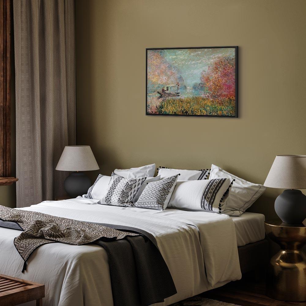 Unsere Bilder sind sicher und geruchsneutral und eignen sich daher ideal für Kinderzimmer. Die Größe wird Ihr Kind sicher beeindrucken! Bilder für Schlafzimmer sind ein echter Blickfang, genauso wie Bilder Wohnzimmer. Dekorieren Sie die Wände in Ihrem privaten Bereich mit einem Bild "Leinwandbild - Claude Monet – Boat on the Seine". Wir empfehlen Bilder für Schlafzimmer , die Sie beruhigen und in eine erholsame Stimmung versetzen. Bilder aus unserer Kollektion werden Ihrem Interieur eine außergewöhnliche Atmosphäre verleihen. Unabhängig vom Raum schaffen auch Kunst Bilder eine gemütliche Atmosphäre für die Gäste. Massive Holzrahmen unterstreichen den einzigartigen Charakter der Schlafzimmerbilder, und ein schneller und sicherer Versand ist ein weiterer Vorteil, der für diese Wanddekorationen spricht Leinwandbilder sind in fünf Varianten erhältlich, sodass jeder Kunde die perfekte Option für seine Bedürfnisse findet.Die Variante auf Strukturleinwand (Standard) ist eine universelle Dekoration, die das Haushaltsbudget nicht belastet.Für Liebhaber edler Materialien ist ein Druck auf italienischer Leinwand aus 100 % Baumwolle die ideale Wahl.Und für Fans der Malerei? Hier überzeugt die außergewöhnliche Premium-Print-Technik – ein Bild, das auf Strukturleinwand gedruckt und von Hand mit einer Schicht transparenten Gels überzogen wird, die die Pinselstriche eines Künstlers imitiert – ein „wie gemalt“-Effekt, aber zu einem günstigeren Preis.Die Variante im soliden Holzrahmen des Typs American Box mit Tiefeneffekt (zwei Rahmenfarben zur Auswahl, Motiv auf Strukturleinwand gedruckt) bietet eine klassische Lösung in neuer Form.Das Akustikbild (Druck auf Strukturleinwand mit einer zusätzlichen Schicht schallabsorbierendem Schaumstoff) ist dagegen ein Volltreffer für alle, die Ästhetik mit Funktionalität verbinden möchten.Zwar sind die beiden letzten Optionen nur für bestimmte Größen von einteiligen Bildern verfügbar, doch bei allen Varianten legen wir GRATIS die erforderliche Anzahl an Haken und Nägeln zur Montage bei.