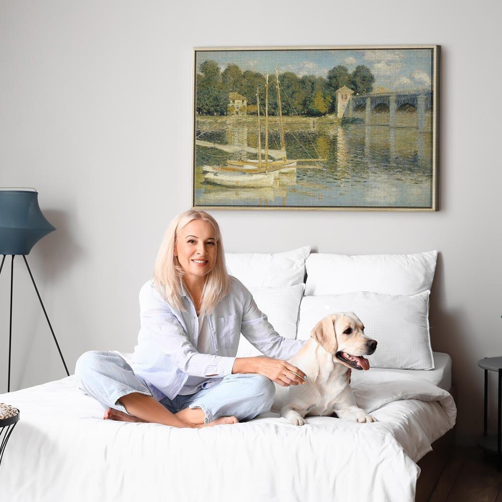 Unsere Bilder sind sicher und geruchsneutral und eignen sich daher ideal für Kinderzimmer. Die Größe wird Ihr Kind sicher beeindrucken! Bilder für Schlafzimmer sind ein echter Blickfang, genauso wie Bilder Wohnzimmer. Dekorieren Sie die Wände in Ihrem privaten Bereich mit einem Bild "Leinwandbild - Claude Monet – Bridge at Argenteuil". Wir empfehlen Bilder für Schlafzimmer , die Sie beruhigen und in eine erholsame Stimmung versetzen. Bilder aus unserer Kollektion werden Ihrem Interieur eine außergewöhnliche Atmosphäre verleihen. Unabhängig vom Raum schaffen auch Kunst Bilder eine gemütliche Atmosphäre für die Gäste. Massive Holzrahmen unterstreichen den einzigartigen Charakter der Schlafzimmerbilder, und ein schneller und sicherer Versand ist ein weiterer Vorteil, der für diese Wanddekorationen spricht Leinwandbilder sind in fünf Varianten erhältlich, sodass jeder Kunde die perfekte Option für seine Bedürfnisse findet.Die Variante auf Strukturleinwand (Standard) ist eine universelle Dekoration, die das Haushaltsbudget nicht belastet.Für Liebhaber edler Materialien ist ein Druck auf italienischer Leinwand aus 100 % Baumwolle die ideale Wahl.Und für Fans der Malerei? Hier überzeugt die außergewöhnliche Premium-Print-Technik – ein Bild, das auf Strukturleinwand gedruckt und von Hand mit einer Schicht transparenten Gels überzogen wird, die die Pinselstriche eines Künstlers imitiert – ein „wie gemalt“-Effekt, aber zu einem günstigeren Preis.Die Variante im soliden Holzrahmen des Typs American Box mit Tiefeneffekt (zwei Rahmenfarben zur Auswahl, Motiv auf Strukturleinwand gedruckt) bietet eine klassische Lösung in neuer Form.Das Akustikbild (Druck auf Strukturleinwand mit einer zusätzlichen Schicht schallabsorbierendem Schaumstoff) ist dagegen ein Volltreffer für alle, die Ästhetik mit Funktionalität verbinden möchten.Zwar sind die beiden letzten Optionen nur für bestimmte Größen von einteiligen Bildern verfügbar, doch bei allen Varianten legen wir GRATIS die erforderliche Anzahl an Haken und Nägeln zur Montage bei.