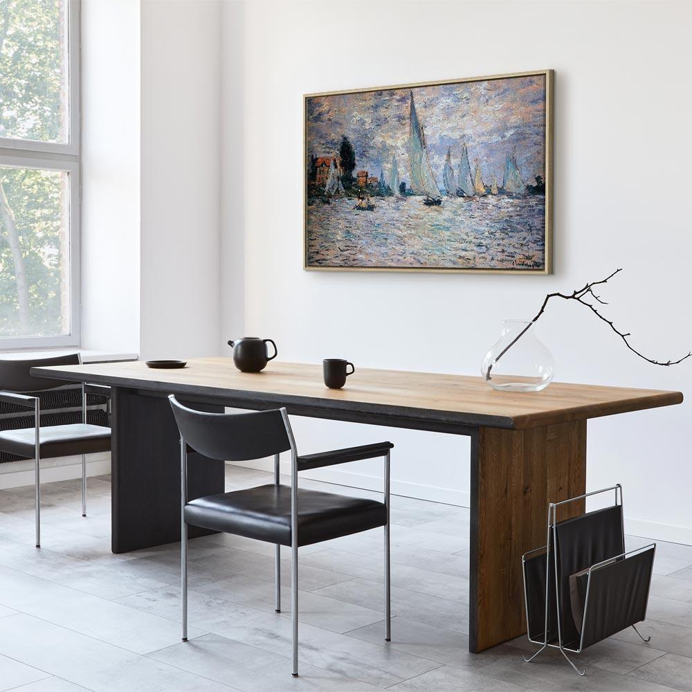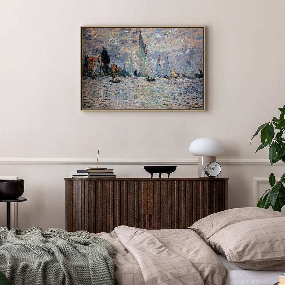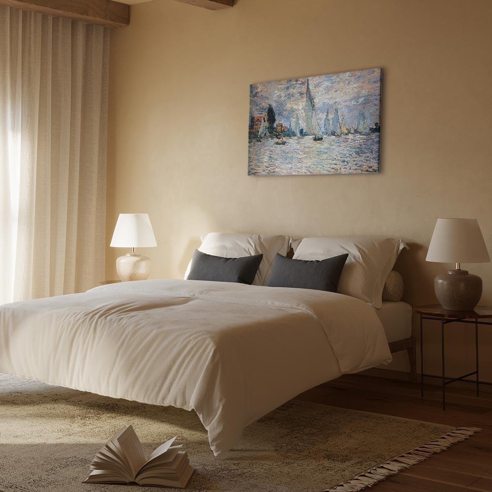 Unsere Bilder sind sicher und geruchsneutral und eignen sich daher ideal für Kinderzimmer. Die Größe wird Ihr Kind sicher beeindrucken! Bilder für Schlafzimmer sind ein echter Blickfang, genauso wie Bilder Wohnzimmer. Dekorieren Sie die Wände in Ihrem privaten Bereich mit einem Bild "Leinwandbild - Claude Monet - Sailboats, Regatta in Argenteuil". Wir empfehlen Bilder für Schlafzimmer , die Sie beruhigen und in eine erholsame Stimmung versetzen. Bilder aus unserer Kollektion werden Ihrem Interieur eine außergewöhnliche Atmosphäre verleihen. Unabhängig vom Raum schaffen auch Kunst Bilder eine gemütliche Atmosphäre für die Gäste. Massive Holzrahmen unterstreichen den einzigartigen Charakter der Schlafzimmerbilder, und ein schneller und sicherer Versand ist ein weiterer Vorteil, der für diese Wanddekorationen spricht Leinwandbilder sind in fünf Varianten erhältlich, sodass jeder Kunde die perfekte Option für seine Bedürfnisse findet.Die Variante auf Strukturleinwand (Standard) ist eine universelle Dekoration, die das Haushaltsbudget nicht belastet.Für Liebhaber edler Materialien ist ein Druck auf italienischer Leinwand aus 100 % Baumwolle die ideale Wahl.Und für Fans der Malerei? Hier überzeugt die außergewöhnliche Premium-Print-Technik – ein Bild, das auf Strukturleinwand gedruckt und von Hand mit einer Schicht transparenten Gels überzogen wird, die die Pinselstriche eines Künstlers imitiert – ein „wie gemalt“-Effekt, aber zu einem günstigeren Preis.Die Variante im soliden Holzrahmen des Typs American Box mit Tiefeneffekt (zwei Rahmenfarben zur Auswahl, Motiv auf Strukturleinwand gedruckt) bietet eine klassische Lösung in neuer Form.Das Akustikbild (Druck auf Strukturleinwand mit einer zusätzlichen Schicht schallabsorbierendem Schaumstoff) ist dagegen ein Volltreffer für alle, die Ästhetik mit Funktionalität verbinden möchten.Zwar sind die beiden letzten Optionen nur für bestimmte Größen von einteiligen Bildern verfügbar, doch bei allen Varianten legen wir GRATIS die erforderliche Anzahl an Haken und Nägeln zur Montage bei.