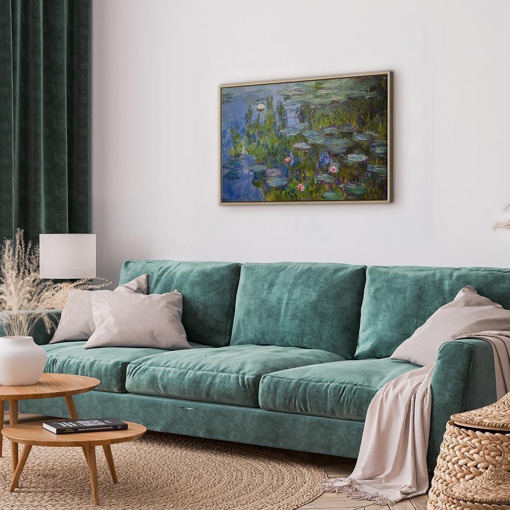 Unsere Bilder sind sicher und geruchsneutral und eignen sich daher ideal für Kinderzimmer. Die Größe wird Ihr Kind sicher beeindrucken! Bilder für Schlafzimmer sind ein echter Blickfang, genauso wie Bilder Wohnzimmer. Dekorieren Sie die Wände in Ihrem privaten Bereich mit einem Bild "Leinwandbild - Claude Monet – Water Lilies". Wir empfehlen Bilder für Schlafzimmer , die Sie beruhigen und in eine erholsame Stimmung versetzen. Bilder aus unserer Kollektion werden Ihrem Interieur eine außergewöhnliche Atmosphäre verleihen. Unabhängig vom Raum schaffen auch Kunst Bilder eine gemütliche Atmosphäre für die Gäste. Massive Holzrahmen unterstreichen den einzigartigen Charakter der Schlafzimmerbilder, und ein schneller und sicherer Versand ist ein weiterer Vorteil, der für diese Wanddekorationen spricht Leinwandbilder sind in fünf Varianten erhältlich, sodass jeder Kunde die perfekte Option für seine Bedürfnisse findet.Die Variante auf Strukturleinwand (Standard) ist eine universelle Dekoration, die das Haushaltsbudget nicht belastet.Für Liebhaber edler Materialien ist ein Druck auf italienischer Leinwand aus 100 % Baumwolle die ideale Wahl.Und für Fans der Malerei? Hier überzeugt die außergewöhnliche Premium-Print-Technik – ein Bild, das auf Strukturleinwand gedruckt und von Hand mit einer Schicht transparenten Gels überzogen wird, die die Pinselstriche eines Künstlers imitiert – ein „wie gemalt“-Effekt, aber zu einem günstigeren Preis.Die Variante im soliden Holzrahmen des Typs American Box mit Tiefeneffekt (zwei Rahmenfarben zur Auswahl, Motiv auf Strukturleinwand gedruckt) bietet eine klassische Lösung in neuer Form.Das Akustikbild (Druck auf Strukturleinwand mit einer zusätzlichen Schicht schallabsorbierendem Schaumstoff) ist dagegen ein Volltreffer für alle, die Ästhetik mit Funktionalität verbinden möchten.Zwar sind die beiden letzten Optionen nur für bestimmte Größen von einteiligen Bildern verfügbar, doch bei allen Varianten legen wir GRATIS die erforderliche Anzahl an Haken und Nägeln zur Montage bei.