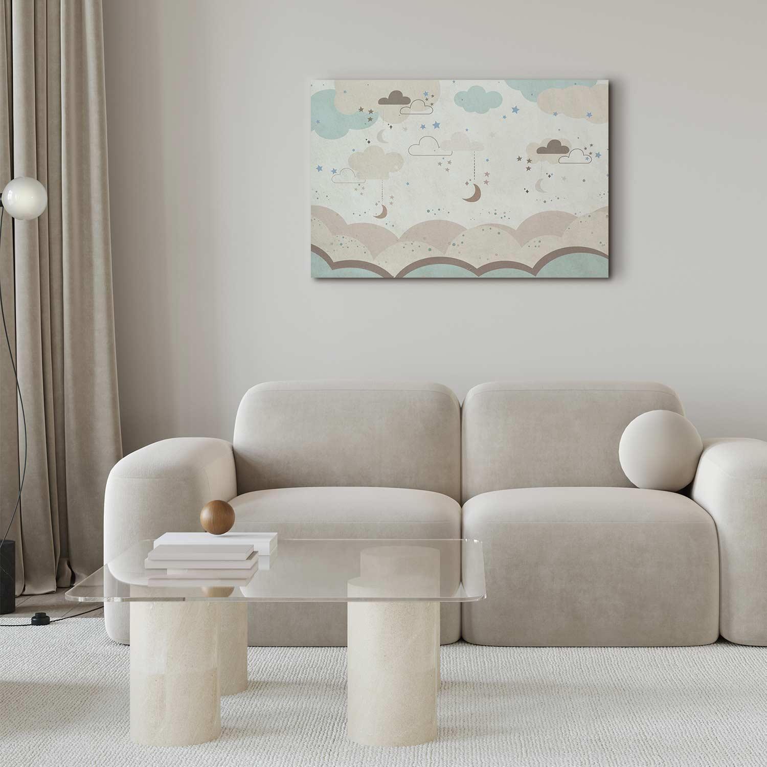 Unsere Bilder sind sicher und geruchsneutral und eignen sich daher ideal für Kinderzimmer. Die Größe wird Ihr Kind sicher beeindrucken! Bilder für Schlafzimmer sind ein echter Blickfang, genauso wie Bilder Wohnzimmer. Dekorieren Sie die Wände in Ihrem privaten Bereich mit einem Bild "Leinwandbild - Cloudy Night Sky - Moons in Brown and Beige Hues Among Clouds and Numerous Little Stars on a Light Background". Wir empfehlen Bilder für Schlafzimmer , die Sie beruhigen und in eine erholsame Stimmung versetzen. Bilder aus unserer Kollektion werden Ihrem Interieur eine außergewöhnliche Atmosphäre verleihen. Unabhängig vom Raum schaffen auch Kunst Bilder eine gemütliche Atmosphäre für die Gäste. Massive Holzrahmen unterstreichen den einzigartigen Charakter der Schlafzimmerbilder, und ein schneller und sicherer Versand ist ein weiterer Vorteil, der für diese Wanddekorationen spricht Leinwandbilder sind in fünf Varianten erhältlich, sodass jeder Kunde die perfekte Option für seine Bedürfnisse findet.Die Variante auf Strukturleinwand (Standard) ist eine universelle Dekoration, die das Haushaltsbudget nicht belastet.Für Liebhaber edler Materialien ist ein Druck auf italienischer Leinwand aus 100 % Baumwolle die ideale Wahl.Und für Fans der Malerei? Hier überzeugt die außergewöhnliche Premium-Print-Technik – ein Bild, das auf Strukturleinwand gedruckt und von Hand mit einer Schicht transparenten Gels überzogen wird, die die Pinselstriche eines Künstlers imitiert – ein „wie gemalt“-Effekt, aber zu einem günstigeren Preis.Die Variante im soliden Holzrahmen des Typs American Box mit Tiefeneffekt (zwei Rahmenfarben zur Auswahl, Motiv auf Strukturleinwand gedruckt) bietet eine klassische Lösung in neuer Form.Das Akustikbild (Druck auf Strukturleinwand mit einer zusätzlichen Schicht schallabsorbierendem Schaumstoff) ist dagegen ein Volltreffer für alle, die Ästhetik mit Funktionalität verbinden möchten.Zwar sind die beiden letzten Optionen nur für bestimmte Größen von einteiligen Bildern verfügbar, doch bei allen Varianten legen wir GRATIS die erforderliche Anzahl an Haken und Nägeln zur Montage bei.