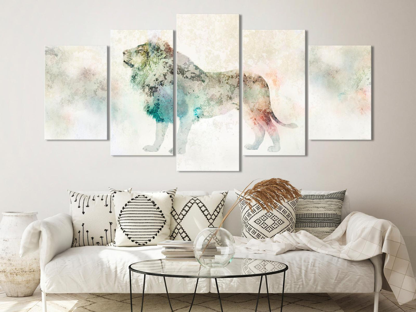 Unsere Bilder sind sicher und geruchsneutral und eignen sich daher ideal für Kinderzimmer. Die Größe wird Ihr Kind sicher beeindrucken! Bilder für Schlafzimmer sind ein echter Blickfang, genauso wie Bilder Wohnzimmer. Dekorieren Sie die Wände in Ihrem privaten Bereich mit einem Bild "Leinwandbild - Colourful King (5 Parts) Wide". Wir empfehlen Bilder für Schlafzimmer, die Sie beruhigen und in eine erholsame Stimmung versetzen. Bilder aus unserer Kollektion werden Ihrem Interieur eine außergewöhnliche Atmosphäre verleihen. Unabhängig vom Raum schaffen auch Kunst Bilder eine gemütliche Atmosphäre für die Gäste. Massive Holzrahmen unterstreichen den einzigartigen Charakter der Schlafzimmerbilder, und ein schneller und sicherer Versand ist ein weiterer Vorteil, der für diese Wanddekorationen spricht. Bilder auf Leinwand sind in vier Versionen erhältlich, aus denen jeder Kunde die perfekte Option für seine Bedürfnisse finden wird. Das Angebot umfasst eine Version auf Vliesleinwand (Standard), auf italienischer Leinwand, Premium Print (ein Bild, das auf italienischer Leinwand gedruckt und von Hand mit einer Schicht transparentem Gel überzogen ist, das die Pinselstriche des Künstlers imitiert) sowie in einem soliden, hölzernen American-Box-Rahmen (zwei Rahmenfarben zur Auswahl, Muster gedruckt auf italienischer Leinwand).