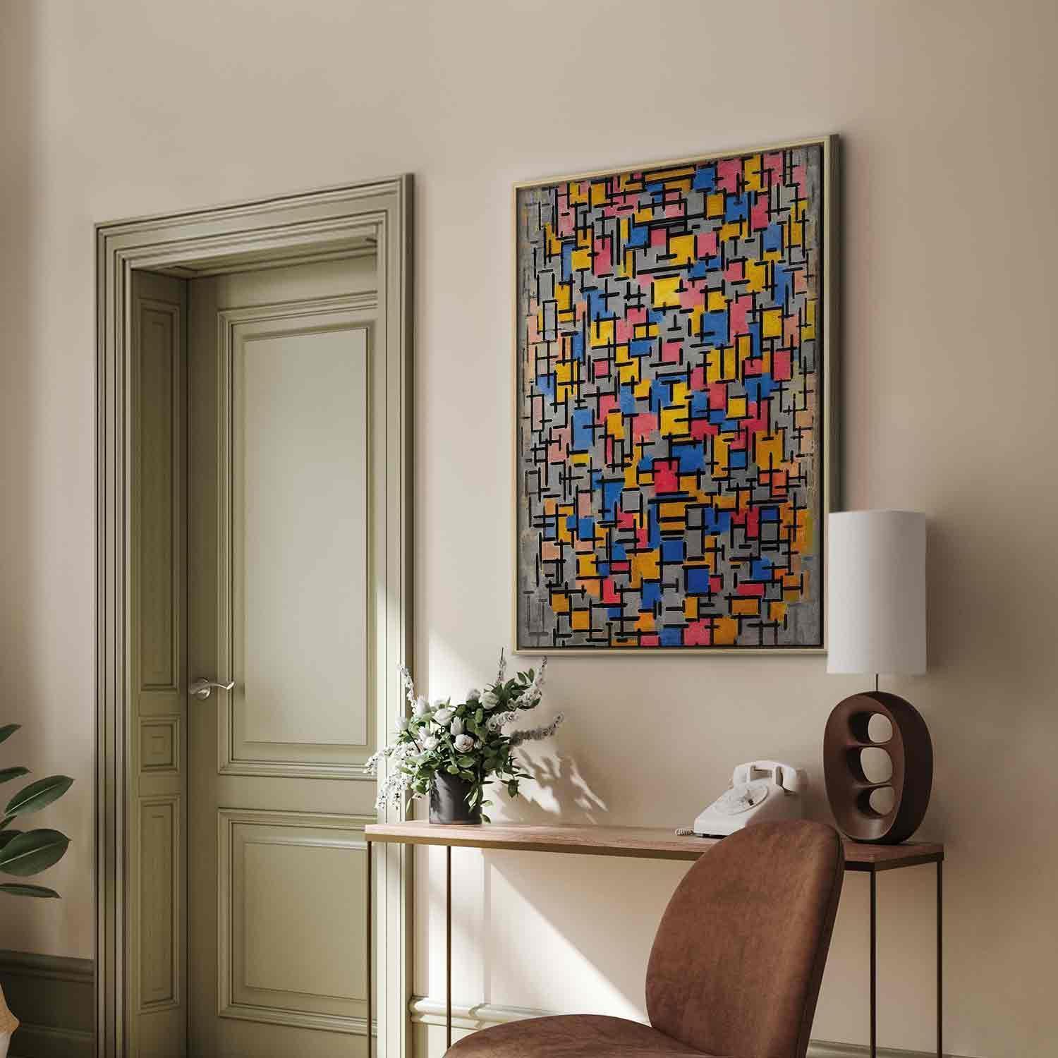 Unsere Bilder sind sicher und geruchsneutral und eignen sich daher ideal für Kinderzimmer. Die Größe wird Ihr Kind sicher beeindrucken! Bilder für Schlafzimmer sind ein echter Blickfang, genauso wie Bilder Wohnzimmer. Dekorieren Sie die Wände in Ihrem privaten Bereich mit einem Bild "Leinwandbild - Piet Mondrian – Composition". Wir empfehlen Bilder für Schlafzimmer , die Sie beruhigen und in eine erholsame Stimmung versetzen. Bilder aus unserer Kollektion werden Ihrem Interieur eine außergewöhnliche Atmosphäre verleihen. Unabhängig vom Raum schaffen auch Kunst Bilder eine gemütliche Atmosphäre für die Gäste. Massive Holzrahmen unterstreichen den einzigartigen Charakter der Schlafzimmerbilder, und ein schneller und sicherer Versand ist ein weiterer Vorteil, der für diese Wanddekorationen spricht Leinwandbilder sind in fünf Varianten erhältlich, sodass jeder Kunde die perfekte Option für seine Bedürfnisse findet.Die Variante auf Strukturleinwand (Standard) ist eine universelle Dekoration, die das Haushaltsbudget nicht belastet.Für Liebhaber edler Materialien ist ein Druck auf italienischer Leinwand aus 100 % Baumwolle die ideale Wahl.Und für Fans der Malerei? Hier überzeugt die außergewöhnliche Premium-Print-Technik – ein Bild, das auf Strukturleinwand gedruckt und von Hand mit einer Schicht transparenten Gels überzogen wird, die die Pinselstriche eines Künstlers imitiert – ein „wie gemalt“-Effekt, aber zu einem günstigeren Preis.Die Variante im soliden Holzrahmen des Typs American Box mit Tiefeneffekt (zwei Rahmenfarben zur Auswahl, Motiv auf Strukturleinwand gedruckt) bietet eine klassische Lösung in neuer Form.Das Akustikbild (Druck auf Strukturleinwand mit einer zusätzlichen Schicht schallabsorbierendem Schaumstoff) ist dagegen ein Volltreffer für alle, die Ästhetik mit Funktionalität verbinden möchten.Zwar sind die beiden letzten Optionen nur für bestimmte Größen von einteiligen Bildern verfügbar, doch bei allen Varianten legen wir GRATIS die erforderliche Anzahl an Haken und Nägeln zur Montage bei.