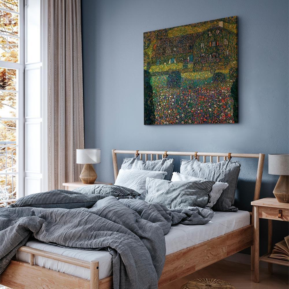 Unsere Bilder sind sicher und geruchsneutral und eignen sich daher ideal für Kinderzimmer. Die Größe wird Ihr Kind sicher beeindrucken! Bilder für Schlafzimmer sind ein echter Blickfang, genauso wie Bilder Wohnzimmer. Dekorieren Sie die Wände in Ihrem privaten Bereich mit einem Bild "Leinwandbild - Gustav Klimt – Country House on the Attersee Lake". Wir empfehlen Bilder für Schlafzimmer , die Sie beruhigen und in eine erholsame Stimmung versetzen. Bilder aus unserer Kollektion werden Ihrem Interieur eine außergewöhnliche Atmosphäre verleihen. Unabhängig vom Raum schaffen auch Kunst Bilder eine gemütliche Atmosphäre für die Gäste. Massive Holzrahmen unterstreichen den einzigartigen Charakter der Schlafzimmerbilder, und ein schneller und sicherer Versand ist ein weiterer Vorteil, der für diese Wanddekorationen spricht Leinwandbilder sind in fünf Varianten erhältlich, sodass jeder Kunde die perfekte Option für seine Bedürfnisse findet.Die Variante auf Strukturleinwand (Standard) ist eine universelle Dekoration, die das Haushaltsbudget nicht belastet.Für Liebhaber edler Materialien ist ein Druck auf italienischer Leinwand aus 100 % Baumwolle die ideale Wahl.Und für Fans der Malerei? Hier überzeugt die außergewöhnliche Premium-Print-Technik – ein Bild, das auf Strukturleinwand gedruckt und von Hand mit einer Schicht transparenten Gels überzogen wird, die die Pinselstriche eines Künstlers imitiert – ein „wie gemalt“-Effekt, aber zu einem günstigeren Preis.Die Variante im soliden Holzrahmen des Typs American Box mit Tiefeneffekt (zwei Rahmenfarben zur Auswahl, Motiv auf Strukturleinwand gedruckt) bietet eine klassische Lösung in neuer Form.Das Akustikbild (Druck auf Strukturleinwand mit einer zusätzlichen Schicht schallabsorbierendem Schaumstoff) ist dagegen ein Volltreffer für alle, die Ästhetik mit Funktionalität verbinden möchten.Zwar sind die beiden letzten Optionen nur für bestimmte Größen von einteiligen Bildern verfügbar, doch bei allen Varianten legen wir GRATIS die erforderliche Anzahl an Haken und Nägeln zur Montage bei.
