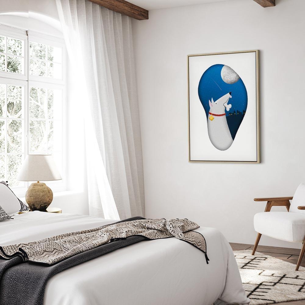 Unsere Bilder sind sicher und geruchsneutral und eignen sich daher ideal für Kinderzimmer. Die Größe wird Ihr Kind sicher beeindrucken! Bilder für Schlafzimmer sind ein echter Blickfang, genauso wie Bilder Wohnzimmer. Dekorieren Sie die Wände in Ihrem privaten Bereich mit einem Bild "Leinwandbild - Dog Dreams (1 Part) Vertical". Wir empfehlen Bilder für Schlafzimmer , die Sie beruhigen und in eine erholsame Stimmung versetzen. Bilder aus unserer Kollektion werden Ihrem Interieur eine außergewöhnliche Atmosphäre verleihen. Unabhängig vom Raum schaffen auch Kunst Bilder eine gemütliche Atmosphäre für die Gäste. Massive Holzrahmen unterstreichen den einzigartigen Charakter der Schlafzimmerbilder, und ein schneller und sicherer Versand ist ein weiterer Vorteil, der für diese Wanddekorationen spricht Leinwandbilder sind in fünf Varianten erhältlich, sodass jeder Kunde die perfekte Option für seine Bedürfnisse findet.Die Variante auf Strukturleinwand (Standard) ist eine universelle Dekoration, die das Haushaltsbudget nicht belastet.Für Liebhaber edler Materialien ist ein Druck auf italienischer Leinwand aus 100 % Baumwolle die ideale Wahl.Und für Fans der Malerei? Hier überzeugt die außergewöhnliche Premium-Print-Technik – ein Bild, das auf Strukturleinwand gedruckt und von Hand mit einer Schicht transparenten Gels überzogen wird, die die Pinselstriche eines Künstlers imitiert – ein „wie gemalt“-Effekt, aber zu einem günstigeren Preis.Die Variante im soliden Holzrahmen des Typs American Box mit Tiefeneffekt (zwei Rahmenfarben zur Auswahl, Motiv auf Strukturleinwand gedruckt) bietet eine klassische Lösung in neuer Form.Das Akustikbild (Druck auf Strukturleinwand mit einer zusätzlichen Schicht schallabsorbierendem Schaumstoff) ist dagegen ein Volltreffer für alle, die Ästhetik mit Funktionalität verbinden möchten.Zwar sind die beiden letzten Optionen nur für bestimmte Größen von einteiligen Bildern verfügbar, doch bei allen Varianten legen wir GRATIS die erforderliche Anzahl an Haken und Nägeln zur Montage bei.