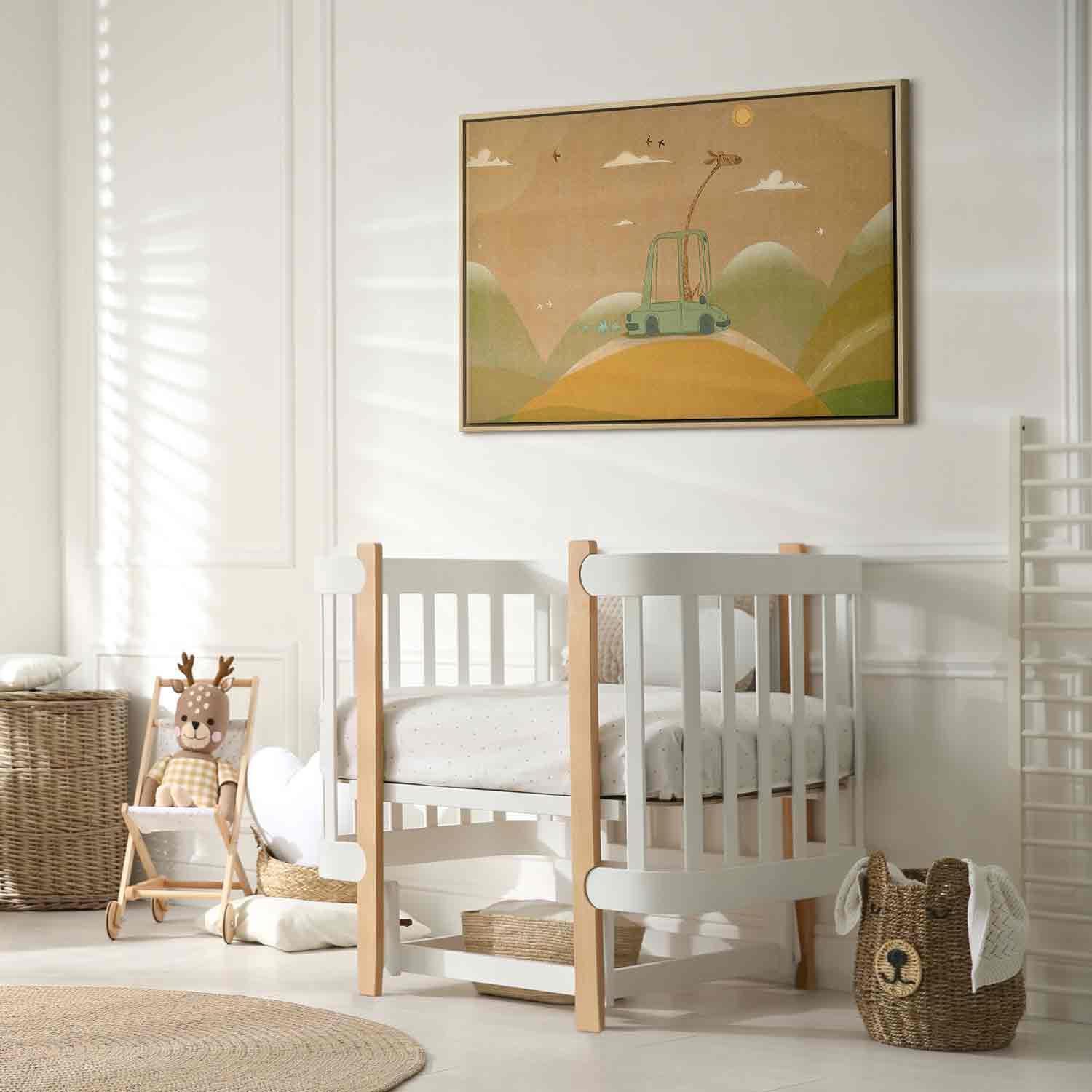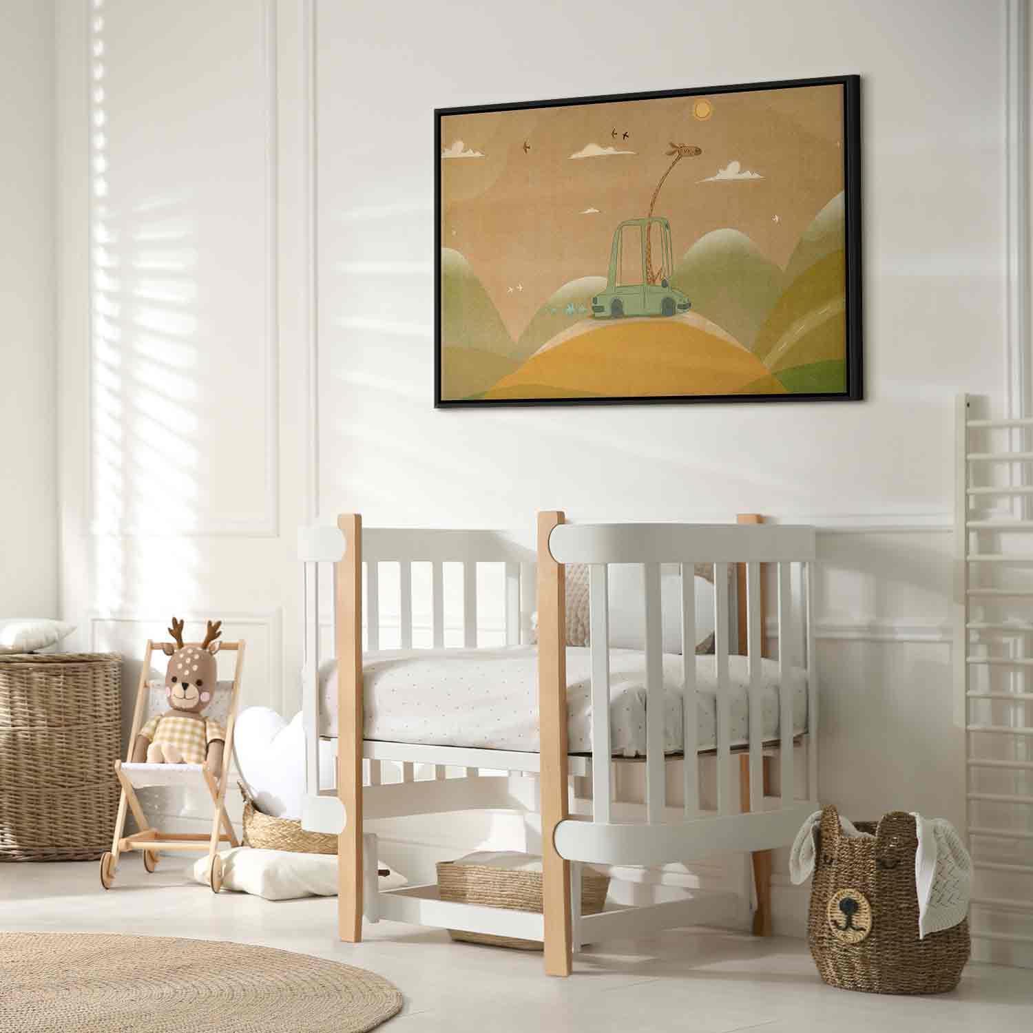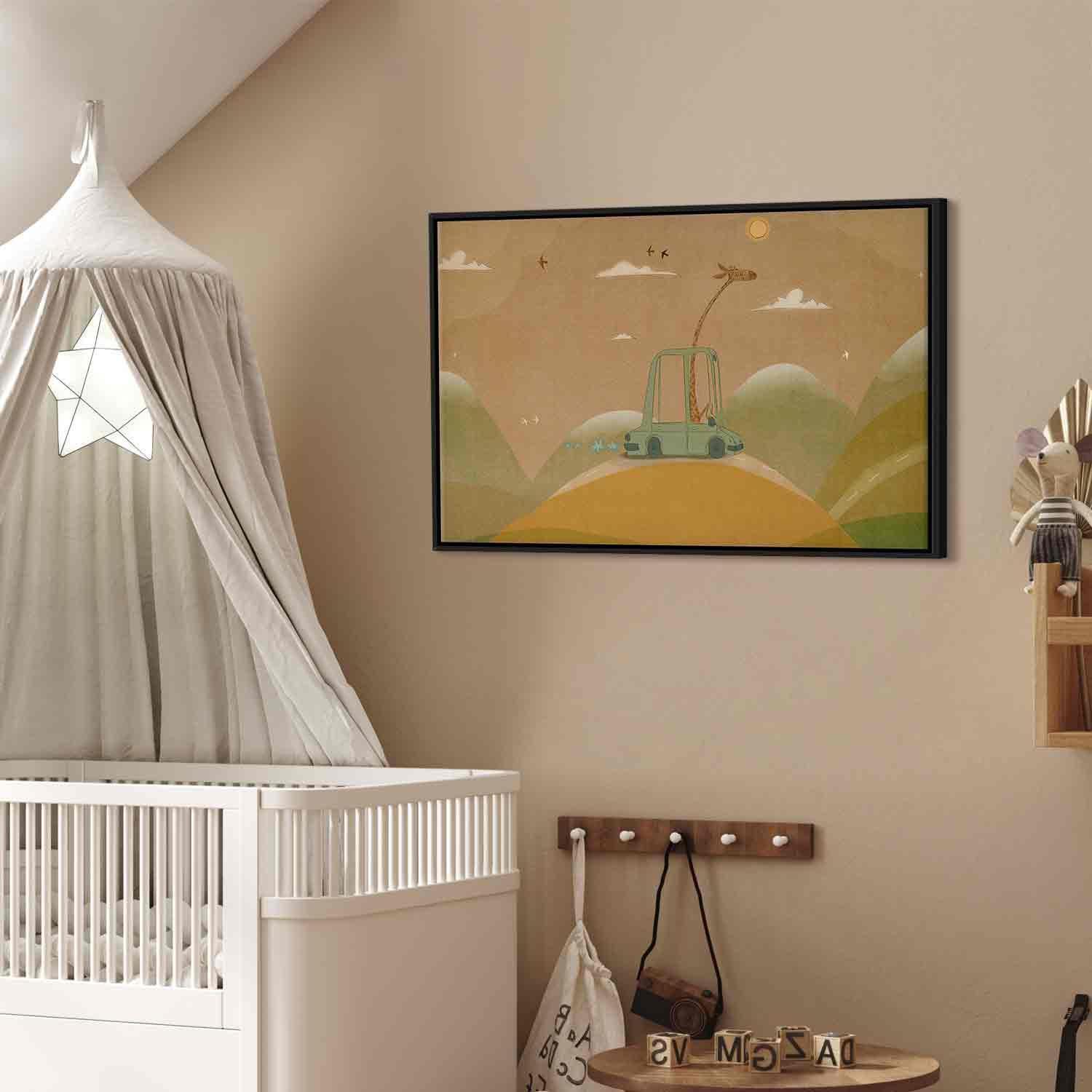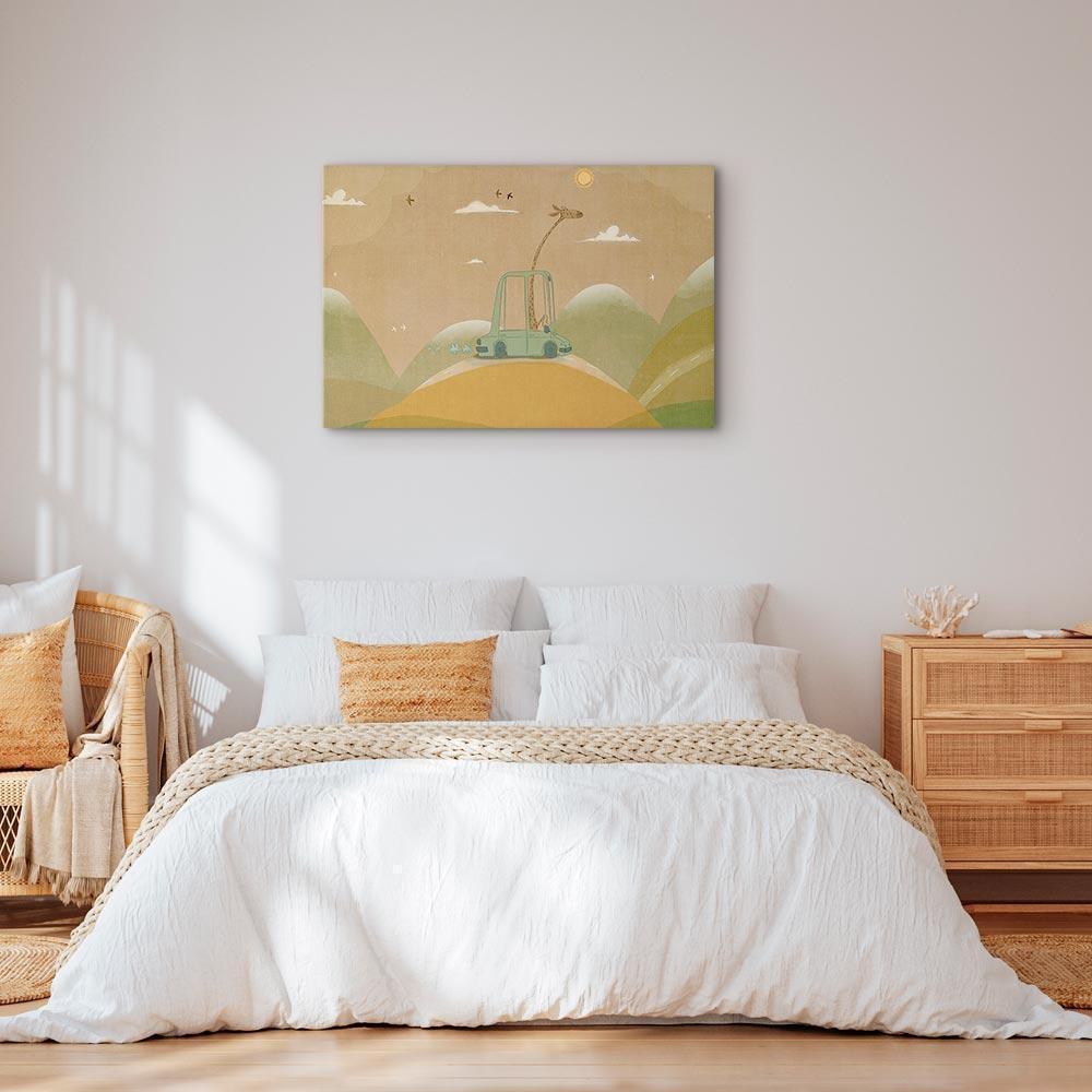 Unsere Bilder sind sicher und geruchsneutral und eignen sich daher ideal für Kinderzimmer. Die Größe wird Ihr Kind sicher beeindrucken! Bilder für Schlafzimmer sind ein echter Blickfang, genauso wie Bilder Wohnzimmer. Dekorieren Sie die Wände in Ihrem privaten Bereich mit einem Bild "Leinwandbild - Dreamy Traveler - A Cheerful Giraffe Driving a Car on a Sunny Day". Wir empfehlen Bilder für Schlafzimmer , die Sie beruhigen und in eine erholsame Stimmung versetzen. Bilder aus unserer Kollektion werden Ihrem Interieur eine außergewöhnliche Atmosphäre verleihen. Unabhängig vom Raum schaffen auch Kunst Bilder eine gemütliche Atmosphäre für die Gäste. Massive Holzrahmen unterstreichen den einzigartigen Charakter der Schlafzimmerbilder, und ein schneller und sicherer Versand ist ein weiterer Vorteil, der für diese Wanddekorationen spricht Leinwandbilder sind in fünf Varianten erhältlich, sodass jeder Kunde die perfekte Option für seine Bedürfnisse findet.Die Variante auf Strukturleinwand (Standard) ist eine universelle Dekoration, die das Haushaltsbudget nicht belastet.Für Liebhaber edler Materialien ist ein Druck auf italienischer Leinwand aus 100 % Baumwolle die ideale Wahl.Und für Fans der Malerei? Hier überzeugt die außergewöhnliche Premium-Print-Technik – ein Bild, das auf Strukturleinwand gedruckt und von Hand mit einer Schicht transparenten Gels überzogen wird, die die Pinselstriche eines Künstlers imitiert – ein „wie gemalt“-Effekt, aber zu einem günstigeren Preis.Die Variante im soliden Holzrahmen des Typs American Box mit Tiefeneffekt (zwei Rahmenfarben zur Auswahl, Motiv auf Strukturleinwand gedruckt) bietet eine klassische Lösung in neuer Form.Das Akustikbild (Druck auf Strukturleinwand mit einer zusätzlichen Schicht schallabsorbierendem Schaumstoff) ist dagegen ein Volltreffer für alle, die Ästhetik mit Funktionalität verbinden möchten.Zwar sind die beiden letzten Optionen nur für bestimmte Größen von einteiligen Bildern verfügbar, doch bei allen Varianten legen wir GRATIS die erforderliche Anzahl an Haken und Nägeln zur Montage bei.