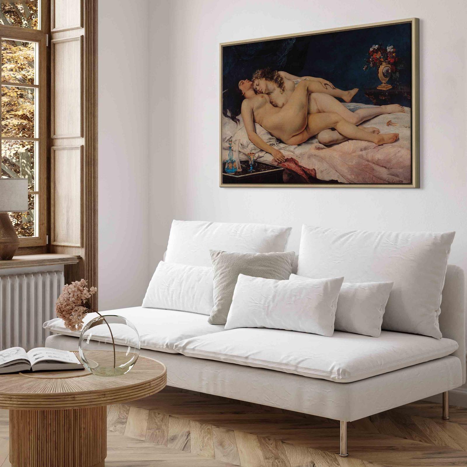 Unsere Bilder sind sicher und geruchsneutral und eignen sich daher ideal für Kinderzimmer. Die Größe wird Ihr Kind sicher beeindrucken! Bilder für Schlafzimmer sind ein echter Blickfang, genauso wie Bilder Wohnzimmer. Dekorieren Sie die Wände in Ihrem privaten Bereich mit einem Bild "Leinwandbild - Gustave Courbet – Sleeping". Wir empfehlen Bilder für Schlafzimmer , die Sie beruhigen und in eine erholsame Stimmung versetzen. Bilder aus unserer Kollektion werden Ihrem Interieur eine außergewöhnliche Atmosphäre verleihen. Unabhängig vom Raum schaffen auch Kunst Bilder eine gemütliche Atmosphäre für die Gäste. Massive Holzrahmen unterstreichen den einzigartigen Charakter der Schlafzimmerbilder, und ein schneller und sicherer Versand ist ein weiterer Vorteil, der für diese Wanddekorationen spricht Leinwandbilder sind in fünf Varianten erhältlich, sodass jeder Kunde die perfekte Option für seine Bedürfnisse findet.Die Variante auf Strukturleinwand (Standard) ist eine universelle Dekoration, die das Haushaltsbudget nicht belastet.Für Liebhaber edler Materialien ist ein Druck auf italienischer Leinwand aus 100 % Baumwolle die ideale Wahl.Und für Fans der Malerei? Hier überzeugt die außergewöhnliche Premium-Print-Technik – ein Bild, das auf Strukturleinwand gedruckt und von Hand mit einer Schicht transparenten Gels überzogen wird, die die Pinselstriche eines Künstlers imitiert – ein „wie gemalt“-Effekt, aber zu einem günstigeren Preis.Die Variante im soliden Holzrahmen des Typs American Box mit Tiefeneffekt (zwei Rahmenfarben zur Auswahl, Motiv auf Strukturleinwand gedruckt) bietet eine klassische Lösung in neuer Form.Das Akustikbild (Druck auf Strukturleinwand mit einer zusätzlichen Schicht schallabsorbierendem Schaumstoff) ist dagegen ein Volltreffer für alle, die Ästhetik mit Funktionalität verbinden möchten.Zwar sind die beiden letzten Optionen nur für bestimmte Größen von einteiligen Bildern verfügbar, doch bei allen Varianten legen wir GRATIS die erforderliche Anzahl an Haken und Nägeln zur Montage bei.