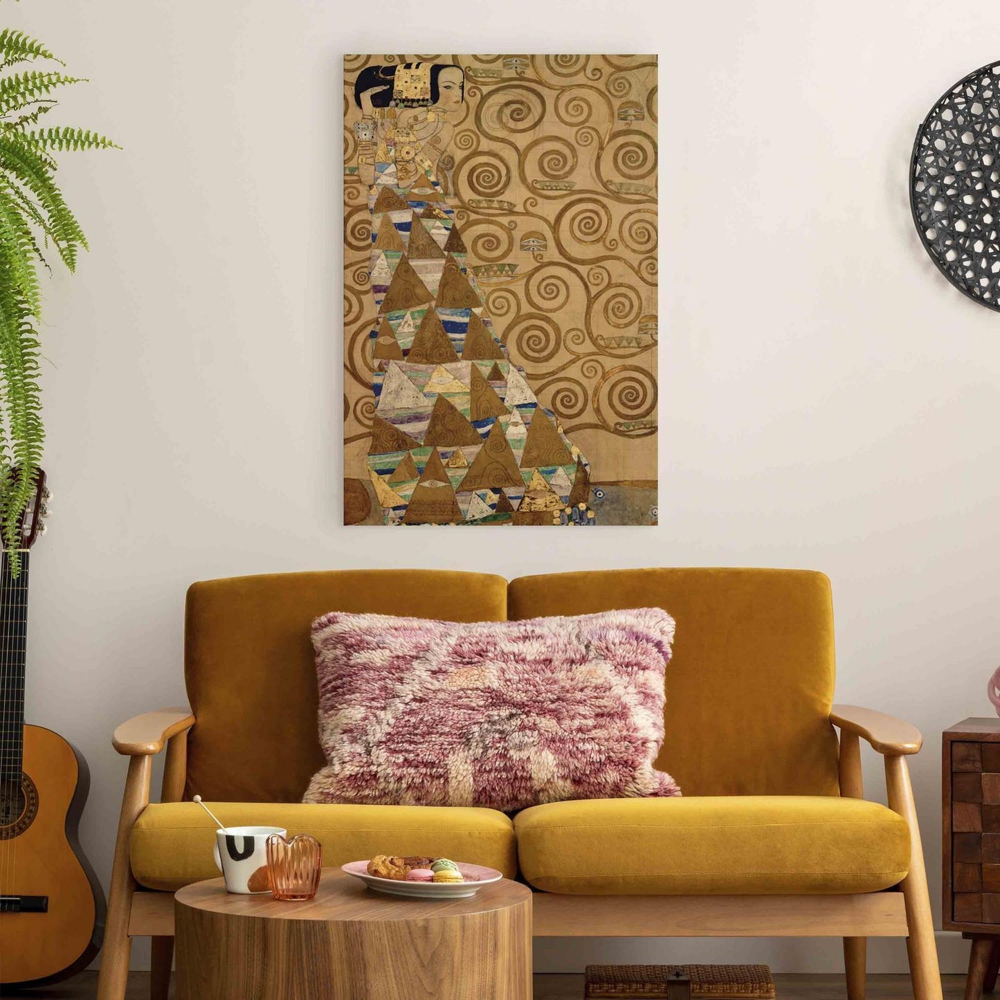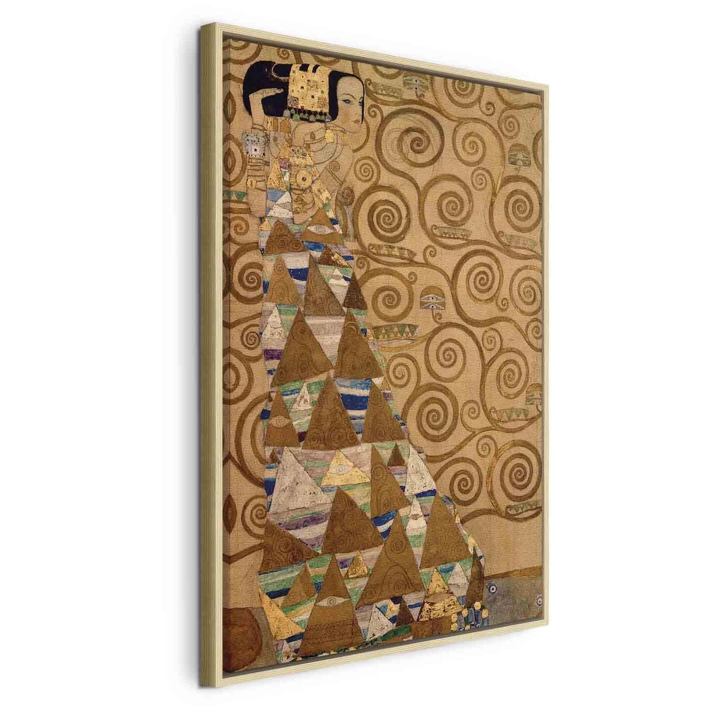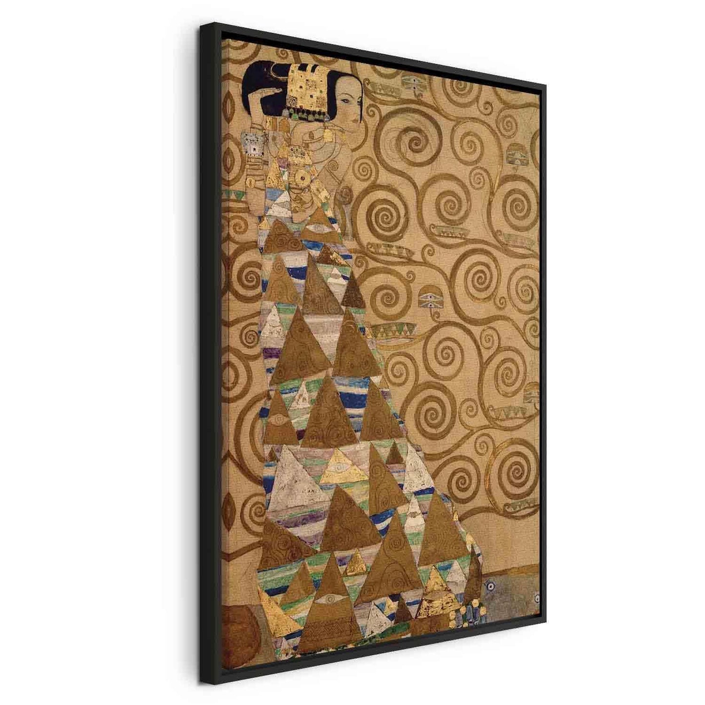Unsere Bilder sind sicher und geruchsneutral und eignen sich daher ideal für Kinderzimmer. Die Größe wird Ihr Kind sicher beeindrucken! Bilder für Schlafzimmer sind ein echter Blickfang, genauso wie Bilder Wohnzimmer. Dekorieren Sie die Wände in Ihrem privaten Bereich mit einem Bild "Leinwandbild - Expectation (Gustav Klimt)". Wir empfehlen Bilder für Schlafzimmer, die Sie beruhigen und in eine erholsame Stimmung versetzen. Bilder aus unserer Kollektion werden Ihrem Interieur eine außergewöhnliche Atmosphäre verleihen. Unabhängig vom Raum schaffen auch Kunst Bilder eine gemütliche Atmosphäre für die Gäste. Massive Holzrahmen unterstreichen den einzigartigen Charakter der Schlafzimmerbilder, und ein schneller und sicherer Versand ist ein weiterer Vorteil, der für diese Wanddekorationen spricht. Bilder auf Leinwand sind in vier Versionen erhältlich, aus denen jeder Kunde die perfekte Option für seine Bedürfnisse finden wird. Das Angebot umfasst eine Version auf Vliesleinwand (Standard), auf italienischer Leinwand, Premium Print (ein Bild, das auf italienischer Leinwand gedruckt und von Hand mit einer Schicht transparentem Gel überzogen ist, das die Pinselstriche des Künstlers imitiert) sowie in einem soliden, hölzernen American-Box-Rahmen (zwei Rahmenfarben zur Auswahl, Muster gedruckt auf italienischer Leinwand).