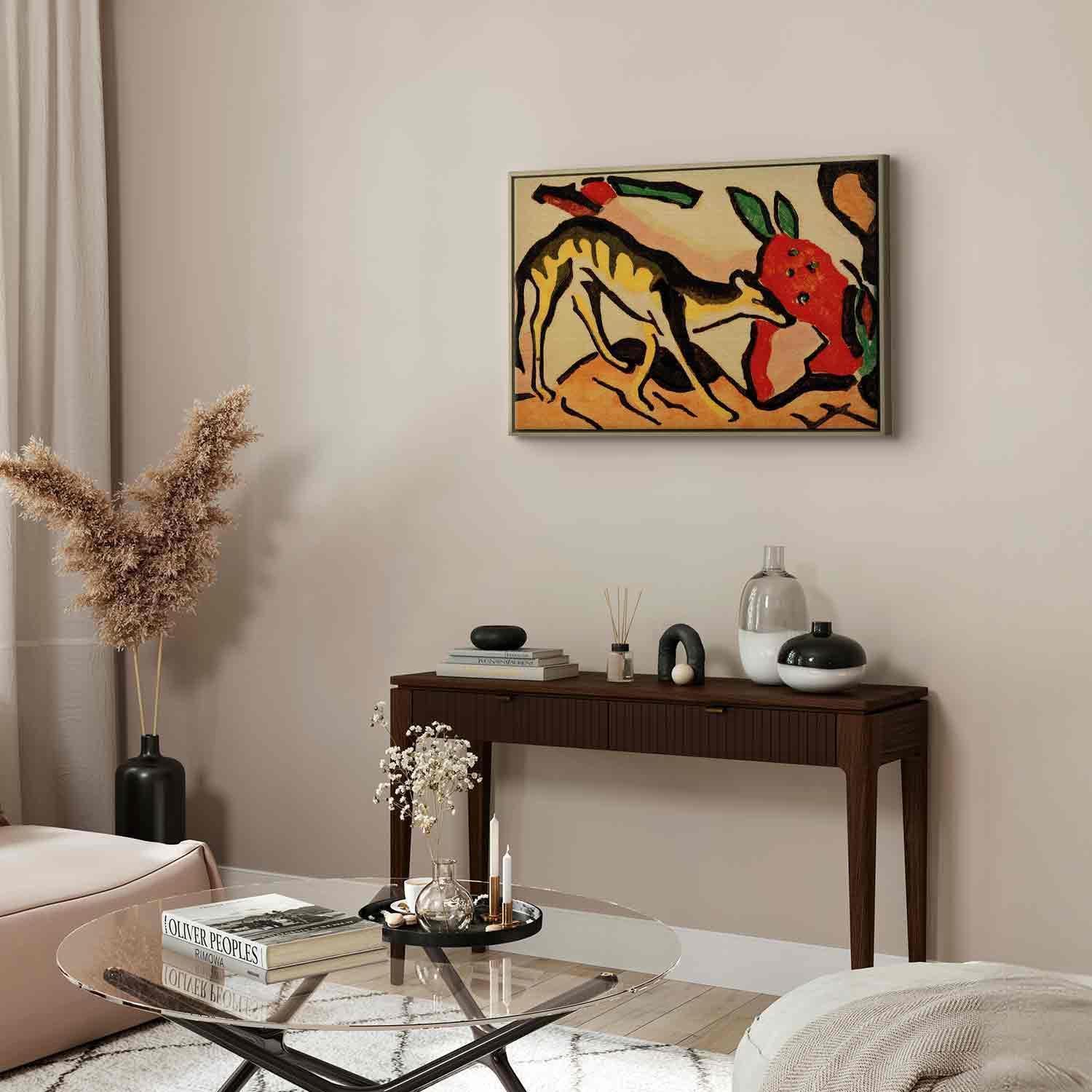 Unsere Bilder sind sicher und geruchsneutral und eignen sich daher ideal für Kinderzimmer. Die Größe wird Ihr Kind sicher beeindrucken! Bilder für Schlafzimmer sind ein echter Blickfang, genauso wie Bilder Wohnzimmer. Dekorieren Sie die Wände in Ihrem privaten Bereich mit einem Bild "Leinwandbild - Franz Marc – Fabeltier". Wir empfehlen Bilder für Schlafzimmer , die Sie beruhigen und in eine erholsame Stimmung versetzen. Bilder aus unserer Kollektion werden Ihrem Interieur eine außergewöhnliche Atmosphäre verleihen. Unabhängig vom Raum schaffen auch Kunst Bilder eine gemütliche Atmosphäre für die Gäste. Massive Holzrahmen unterstreichen den einzigartigen Charakter der Schlafzimmerbilder, und ein schneller und sicherer Versand ist ein weiterer Vorteil, der für diese Wanddekorationen spricht Leinwandbilder sind in fünf Varianten erhältlich, sodass jeder Kunde die perfekte Option für seine Bedürfnisse findet.Die Variante auf Strukturleinwand (Standard) ist eine universelle Dekoration, die das Haushaltsbudget nicht belastet.Für Liebhaber edler Materialien ist ein Druck auf italienischer Leinwand aus 100 % Baumwolle die ideale Wahl.Und für Fans der Malerei? Hier überzeugt die außergewöhnliche Premium-Print-Technik – ein Bild, das auf Strukturleinwand gedruckt und von Hand mit einer Schicht transparenten Gels überzogen wird, die die Pinselstriche eines Künstlers imitiert – ein „wie gemalt“-Effekt, aber zu einem günstigeren Preis.Die Variante im soliden Holzrahmen des Typs American Box mit Tiefeneffekt (zwei Rahmenfarben zur Auswahl, Motiv auf Strukturleinwand gedruckt) bietet eine klassische Lösung in neuer Form.Das Akustikbild (Druck auf Strukturleinwand mit einer zusätzlichen Schicht schallabsorbierendem Schaumstoff) ist dagegen ein Volltreffer für alle, die Ästhetik mit Funktionalität verbinden möchten.Zwar sind die beiden letzten Optionen nur für bestimmte Größen von einteiligen Bildern verfügbar, doch bei allen Varianten legen wir GRATIS die erforderliche Anzahl an Haken und Nägeln zur Montage bei.