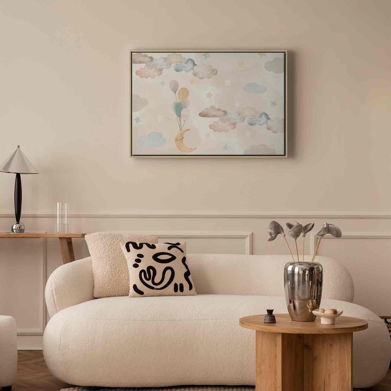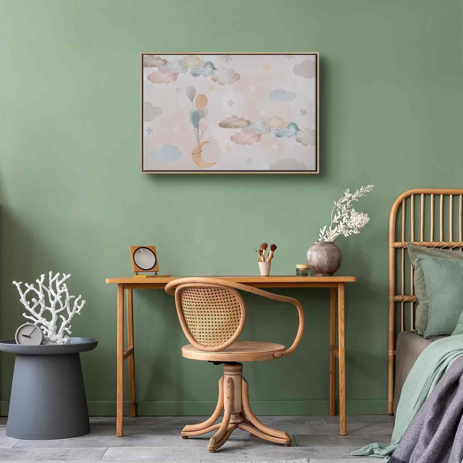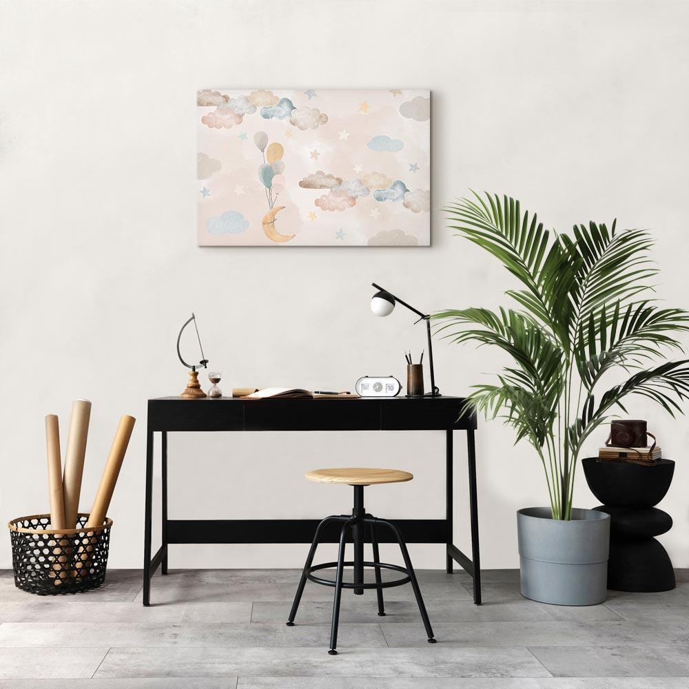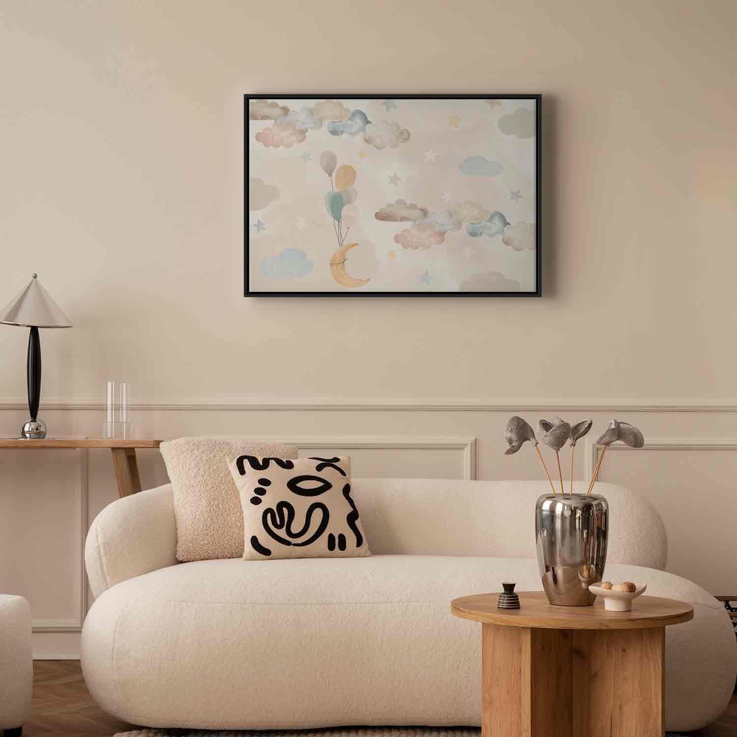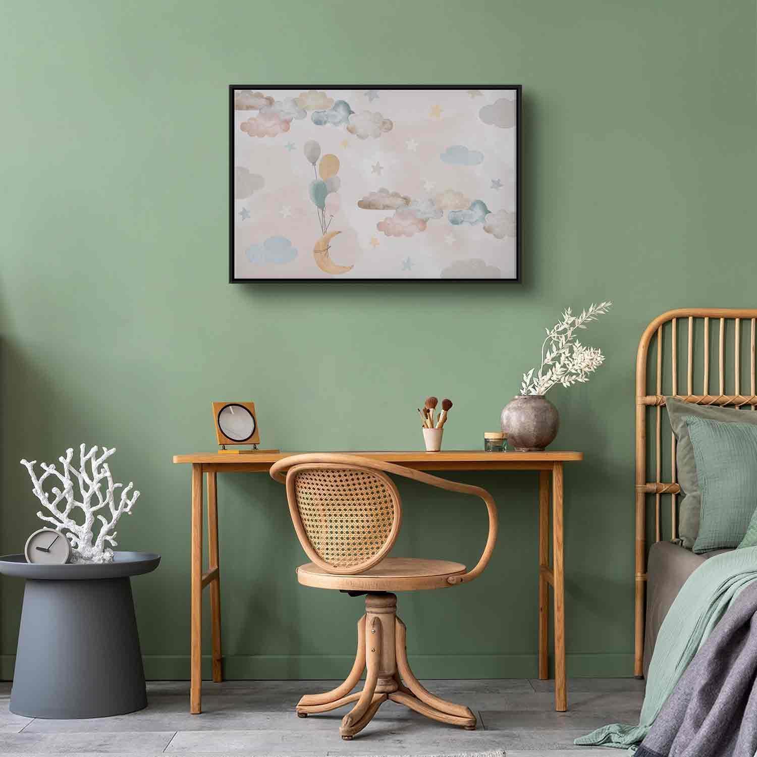 Unsere Bilder sind sicher und geruchsneutral und eignen sich daher ideal für Kinderzimmer. Die Größe wird Ihr Kind sicher beeindrucken! Bilder für Schlafzimmer sind ein echter Blickfang, genauso wie Bilder Wohnzimmer. Dekorieren Sie die Wände in Ihrem privaten Bereich mit einem Bild "Leinwandbild - Fairy-Tale Moon - Pastel Moon with Balloons Among Colorful Clouds and Stars in Subdued Colors on a Light Background". Wir empfehlen Bilder für Schlafzimmer , die Sie beruhigen und in eine erholsame Stimmung versetzen. Bilder aus unserer Kollektion werden Ihrem Interieur eine außergewöhnliche Atmosphäre verleihen. Unabhängig vom Raum schaffen auch Kunst Bilder eine gemütliche Atmosphäre für die Gäste. Massive Holzrahmen unterstreichen den einzigartigen Charakter der Schlafzimmerbilder, und ein schneller und sicherer Versand ist ein weiterer Vorteil, der für diese Wanddekorationen spricht Leinwandbilder sind in fünf Varianten erhältlich, sodass jeder Kunde die perfekte Option für seine Bedürfnisse findet.Die Variante auf Strukturleinwand (Standard) ist eine universelle Dekoration, die das Haushaltsbudget nicht belastet.Für Liebhaber edler Materialien ist ein Druck auf italienischer Leinwand aus 100 % Baumwolle die ideale Wahl.Und für Fans der Malerei? Hier überzeugt die außergewöhnliche Premium-Print-Technik – ein Bild, das auf Strukturleinwand gedruckt und von Hand mit einer Schicht transparenten Gels überzogen wird, die die Pinselstriche eines Künstlers imitiert – ein „wie gemalt“-Effekt, aber zu einem günstigeren Preis.Die Variante im soliden Holzrahmen des Typs American Box mit Tiefeneffekt (zwei Rahmenfarben zur Auswahl, Motiv auf Strukturleinwand gedruckt) bietet eine klassische Lösung in neuer Form.Das Akustikbild (Druck auf Strukturleinwand mit einer zusätzlichen Schicht schallabsorbierendem Schaumstoff) ist dagegen ein Volltreffer für alle, die Ästhetik mit Funktionalität verbinden möchten.Zwar sind die beiden letzten Optionen nur für bestimmte Größen von einteiligen Bildern verfügbar, doch bei allen Varianten legen wir GRATIS die erforderliche Anzahl an Haken und Nägeln zur Montage bei.