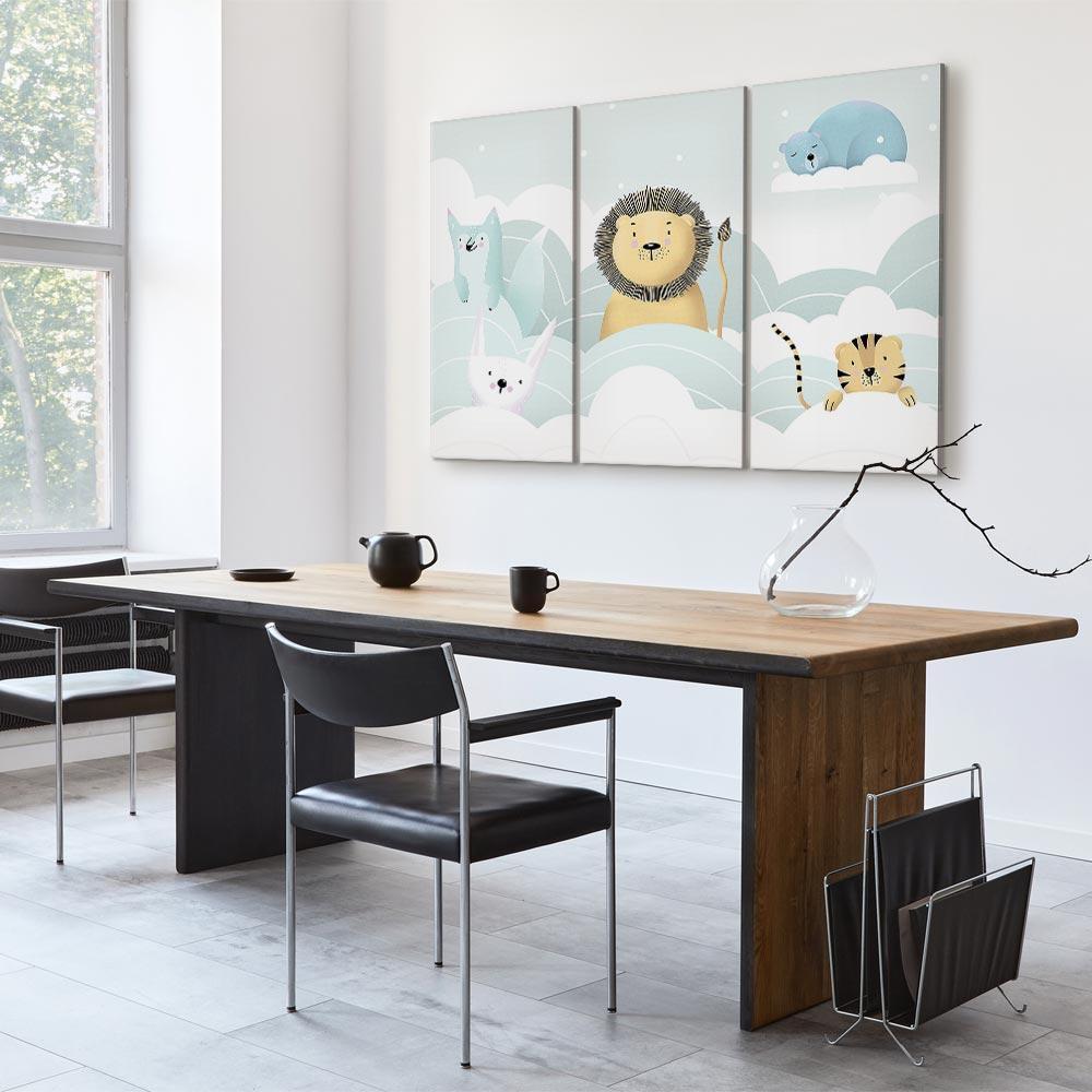 Unsere Bilder sind sicher und geruchsneutral und eignen sich daher ideal für Kinderzimmer. Die Größe wird Ihr Kind sicher beeindrucken! Bilder für Schlafzimmer sind ein echter Blickfang, genauso wie Bilder Wohnzimmer. Dekorieren Sie die Wände in Ihrem privaten Bereich mit einem Bild "Leinwandbild - Fairy-Tale Zoo (3 Parts)". Wir empfehlen Bilder für Schlafzimmer , die Sie beruhigen und in eine erholsame Stimmung versetzen. Bilder aus unserer Kollektion werden Ihrem Interieur eine außergewöhnliche Atmosphäre verleihen. Unabhängig vom Raum schaffen auch Kunst Bilder eine gemütliche Atmosphäre für die Gäste. Massive Holzrahmen unterstreichen den einzigartigen Charakter der Schlafzimmerbilder, und ein schneller und sicherer Versand ist ein weiterer Vorteil, der für diese Wanddekorationen spricht Leinwandbilder sind in fünf Varianten erhältlich, sodass jeder Kunde die perfekte Option für seine Bedürfnisse findet.Die Variante auf Strukturleinwand (Standard) ist eine universelle Dekoration, die das Haushaltsbudget nicht belastet.Für Liebhaber edler Materialien ist ein Druck auf italienischer Leinwand aus 100 % Baumwolle die ideale Wahl.Und für Fans der Malerei? Hier überzeugt die außergewöhnliche Premium-Print-Technik – ein Bild, das auf Strukturleinwand gedruckt und von Hand mit einer Schicht transparenten Gels überzogen wird, die die Pinselstriche eines Künstlers imitiert – ein „wie gemalt“-Effekt, aber zu einem günstigeren Preis.Die Variante im soliden Holzrahmen des Typs American Box mit Tiefeneffekt (zwei Rahmenfarben zur Auswahl, Motiv auf Strukturleinwand gedruckt) bietet eine klassische Lösung in neuer Form.Das Akustikbild (Druck auf Strukturleinwand mit einer zusätzlichen Schicht schallabsorbierendem Schaumstoff) ist dagegen ein Volltreffer für alle, die Ästhetik mit Funktionalität verbinden möchten.Zwar sind die beiden letzten Optionen nur für bestimmte Größen von einteiligen Bildern verfügbar, doch bei allen Varianten legen wir GRATIS die erforderliche Anzahl an Haken und Nägeln zur Montage bei.