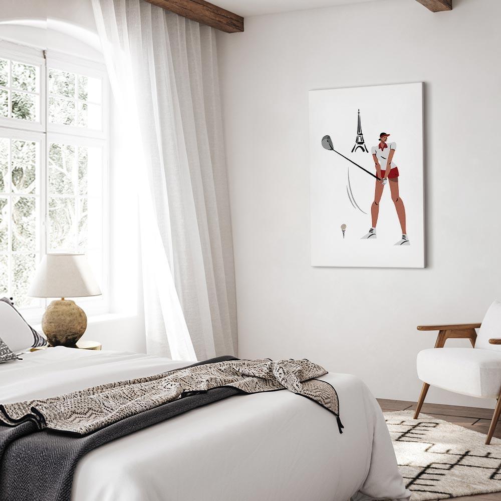 Unsere Bilder sind sicher und geruchsneutral und eignen sich daher ideal für Kinderzimmer. Die Größe wird Ihr Kind sicher beeindrucken! Bilder für Schlafzimmer sind ein echter Blickfang, genauso wie Bilder Wohnzimmer. Dekorieren Sie die Wände in Ihrem privaten Bereich mit einem Bild "Leinwandbild - Female Golfer With the Eiffel Tower in the Background - Illustration". Wir empfehlen Bilder für Schlafzimmer , die Sie beruhigen und in eine erholsame Stimmung versetzen. Bilder aus unserer Kollektion werden Ihrem Interieur eine außergewöhnliche Atmosphäre verleihen. Unabhängig vom Raum schaffen auch Kunst Bilder eine gemütliche Atmosphäre für die Gäste. Massive Holzrahmen unterstreichen den einzigartigen Charakter der Schlafzimmerbilder, und ein schneller und sicherer Versand ist ein weiterer Vorteil, der für diese Wanddekorationen spricht Leinwandbilder sind in fünf Varianten erhältlich, sodass jeder Kunde die perfekte Option für seine Bedürfnisse findet.Die Variante auf Strukturleinwand (Standard) ist eine universelle Dekoration, die das Haushaltsbudget nicht belastet.Für Liebhaber edler Materialien ist ein Druck auf italienischer Leinwand aus 100 % Baumwolle die ideale Wahl.Und für Fans der Malerei? Hier überzeugt die außergewöhnliche Premium-Print-Technik – ein Bild, das auf Strukturleinwand gedruckt und von Hand mit einer Schicht transparenten Gels überzogen wird, die die Pinselstriche eines Künstlers imitiert – ein „wie gemalt“-Effekt, aber zu einem günstigeren Preis.Die Variante im soliden Holzrahmen des Typs American Box mit Tiefeneffekt (zwei Rahmenfarben zur Auswahl, Motiv auf Strukturleinwand gedruckt) bietet eine klassische Lösung in neuer Form.Das Akustikbild (Druck auf Strukturleinwand mit einer zusätzlichen Schicht schallabsorbierendem Schaumstoff) ist dagegen ein Volltreffer für alle, die Ästhetik mit Funktionalität verbinden möchten.Zwar sind die beiden letzten Optionen nur für bestimmte Größen von einteiligen Bildern verfügbar, doch bei allen Varianten legen wir GRATIS die erforderliche Anzahl an Haken und Nägeln zur Montage bei.