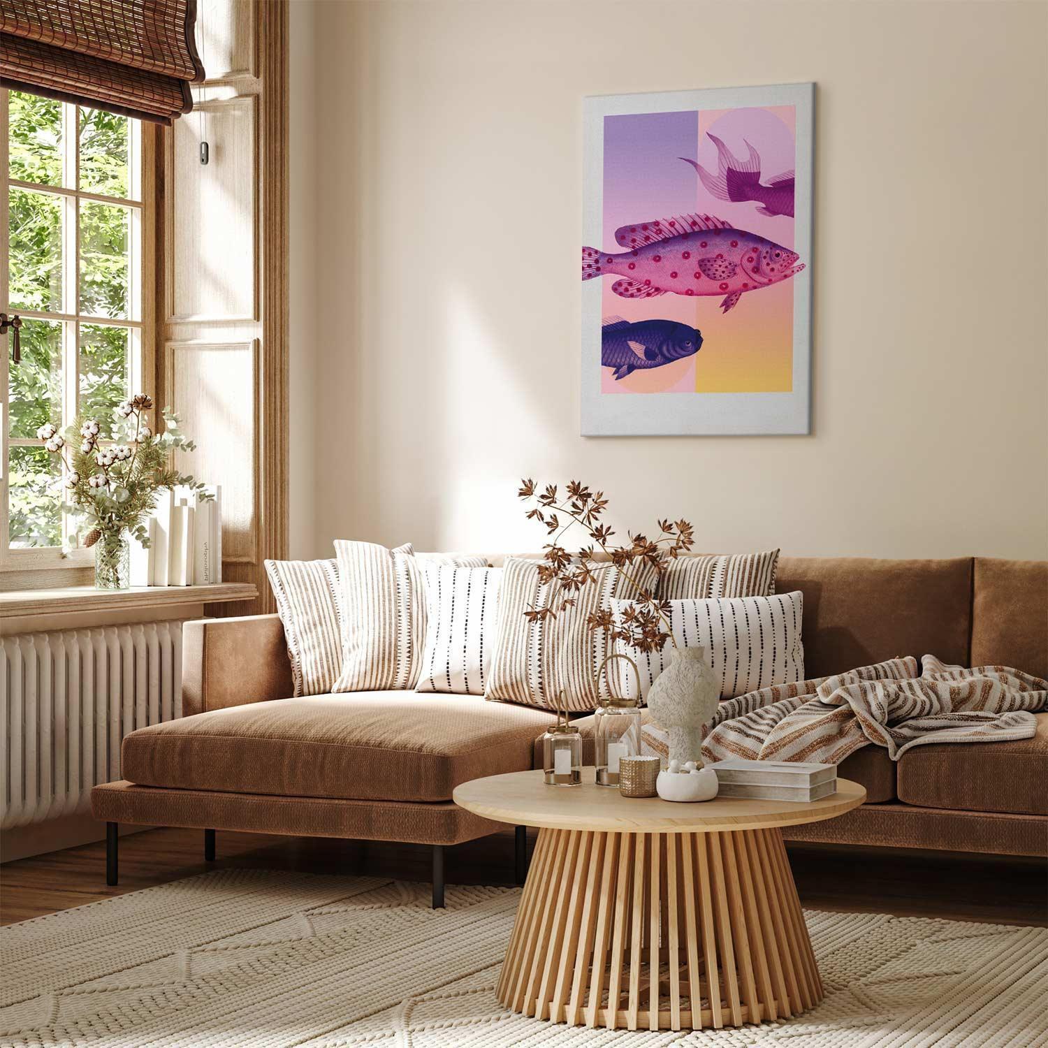 Unsere Bilder sind sicher und geruchsneutral und eignen sich daher ideal für Kinderzimmer. Die Größe wird Ihr Kind sicher beeindrucken! Bilder für Schlafzimmer sind ein echter Blickfang, genauso wie Bilder Wohnzimmer. Dekorieren Sie die Wände in Ihrem privaten Bereich mit einem Bild "Leinwandbild - Fish in Pastels - Stylized Fish Against Gradient Shapes". Wir empfehlen Bilder für Schlafzimmer , die Sie beruhigen und in eine erholsame Stimmung versetzen. Bilder aus unserer Kollektion werden Ihrem Interieur eine außergewöhnliche Atmosphäre verleihen. Unabhängig vom Raum schaffen auch Kunst Bilder eine gemütliche Atmosphäre für die Gäste. Massive Holzrahmen unterstreichen den einzigartigen Charakter der Schlafzimmerbilder, und ein schneller und sicherer Versand ist ein weiterer Vorteil, der für diese Wanddekorationen spricht Leinwandbilder sind in fünf Varianten erhältlich, sodass jeder Kunde die perfekte Option für seine Bedürfnisse findet.Die Variante auf Strukturleinwand (Standard) ist eine universelle Dekoration, die das Haushaltsbudget nicht belastet.Für Liebhaber edler Materialien ist ein Druck auf italienischer Leinwand aus 100 % Baumwolle die ideale Wahl.Und für Fans der Malerei? Hier überzeugt die außergewöhnliche Premium-Print-Technik – ein Bild, das auf Strukturleinwand gedruckt und von Hand mit einer Schicht transparenten Gels überzogen wird, die die Pinselstriche eines Künstlers imitiert – ein „wie gemalt“-Effekt, aber zu einem günstigeren Preis.Die Variante im soliden Holzrahmen des Typs American Box mit Tiefeneffekt (zwei Rahmenfarben zur Auswahl, Motiv auf Strukturleinwand gedruckt) bietet eine klassische Lösung in neuer Form.Das Akustikbild (Druck auf Strukturleinwand mit einer zusätzlichen Schicht schallabsorbierendem Schaumstoff) ist dagegen ein Volltreffer für alle, die Ästhetik mit Funktionalität verbinden möchten.Zwar sind die beiden letzten Optionen nur für bestimmte Größen von einteiligen Bildern verfügbar, doch bei allen Varianten legen wir GRATIS die erforderliche Anzahl an Haken und Nägeln zur Montage bei.