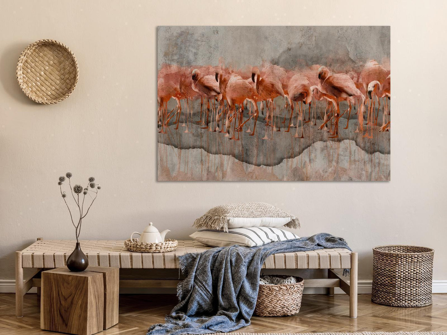 Unsere Bilder sind sicher und geruchsneutral und eignen sich daher ideal für Kinderzimmer. Die Größe wird Ihr Kind sicher beeindrucken! Bilder für Schlafzimmer sind ein echter Blickfang, genauso wie Bilder Wohnzimmer. Dekorieren Sie die Wände in Ihrem privaten Bereich mit einem Bild "Leinwandbild - Flamingo Lake (1 Part) Wide". Wir empfehlen Bilder für Schlafzimmer, die Sie beruhigen und in eine erholsame Stimmung versetzen. Bilder aus unserer Kollektion werden Ihrem Interieur eine außergewöhnliche Atmosphäre verleihen. Unabhängig vom Raum schaffen auch Kunst Bilder eine gemütliche Atmosphäre für die Gäste. Massive Holzrahmen unterstreichen den einzigartigen Charakter der Schlafzimmerbilder, und ein schneller und sicherer Versand ist ein weiterer Vorteil, der für diese Wanddekorationen spricht. Bilder auf Leinwand sind in vier Versionen erhältlich, aus denen jeder Kunde die perfekte Option für seine Bedürfnisse finden wird. Das Angebot umfasst eine Version auf Vliesleinwand (Standard), auf italienischer Leinwand, Premium Print (ein Bild, das auf italienischer Leinwand gedruckt und von Hand mit einer Schicht transparentem Gel überzogen ist, das die Pinselstriche des Künstlers imitiert) sowie in einem soliden, hölzernen American-Box-Rahmen (zwei Rahmenfarben zur Auswahl, Muster gedruckt auf italienischer Leinwand).