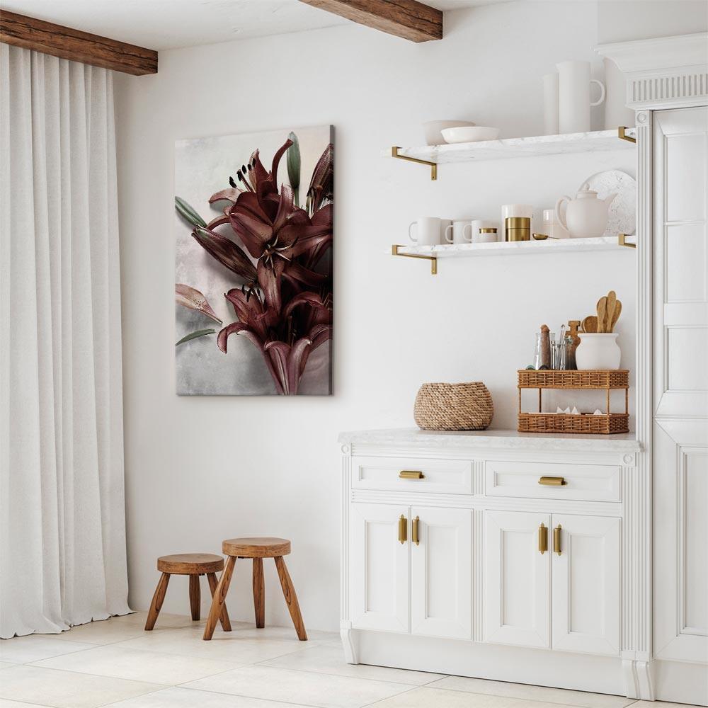 Unsere Bilder sind sicher und geruchsneutral und eignen sich daher ideal für Kinderzimmer. Die Größe wird Ihr Kind sicher beeindrucken! Bilder für Schlafzimmer sind ein echter Blickfang, genauso wie Bilder Wohnzimmer. Dekorieren Sie die Wände in Ihrem privaten Bereich mit einem Bild "Leinwandbild - Floral Form (1 Part) Vertical". Wir empfehlen Bilder für Schlafzimmer , die Sie beruhigen und in eine erholsame Stimmung versetzen. Bilder aus unserer Kollektion werden Ihrem Interieur eine außergewöhnliche Atmosphäre verleihen. Unabhängig vom Raum schaffen auch Kunst Bilder eine gemütliche Atmosphäre für die Gäste. Massive Holzrahmen unterstreichen den einzigartigen Charakter der Schlafzimmerbilder, und ein schneller und sicherer Versand ist ein weiterer Vorteil, der für diese Wanddekorationen spricht Leinwandbilder sind in fünf Varianten erhältlich, sodass jeder Kunde die perfekte Option für seine Bedürfnisse findet.Die Variante auf Strukturleinwand (Standard) ist eine universelle Dekoration, die das Haushaltsbudget nicht belastet.Für Liebhaber edler Materialien ist ein Druck auf italienischer Leinwand aus 100 % Baumwolle die ideale Wahl.Und für Fans der Malerei? Hier überzeugt die außergewöhnliche Premium-Print-Technik – ein Bild, das auf Strukturleinwand gedruckt und von Hand mit einer Schicht transparenten Gels überzogen wird, die die Pinselstriche eines Künstlers imitiert – ein „wie gemalt“-Effekt, aber zu einem günstigeren Preis.Die Variante im soliden Holzrahmen des Typs American Box mit Tiefeneffekt (zwei Rahmenfarben zur Auswahl, Motiv auf Strukturleinwand gedruckt) bietet eine klassische Lösung in neuer Form.Das Akustikbild (Druck auf Strukturleinwand mit einer zusätzlichen Schicht schallabsorbierendem Schaumstoff) ist dagegen ein Volltreffer für alle, die Ästhetik mit Funktionalität verbinden möchten.Zwar sind die beiden letzten Optionen nur für bestimmte Größen von einteiligen Bildern verfügbar, doch bei allen Varianten legen wir GRATIS die erforderliche Anzahl an Haken und Nägeln zur Montage bei.