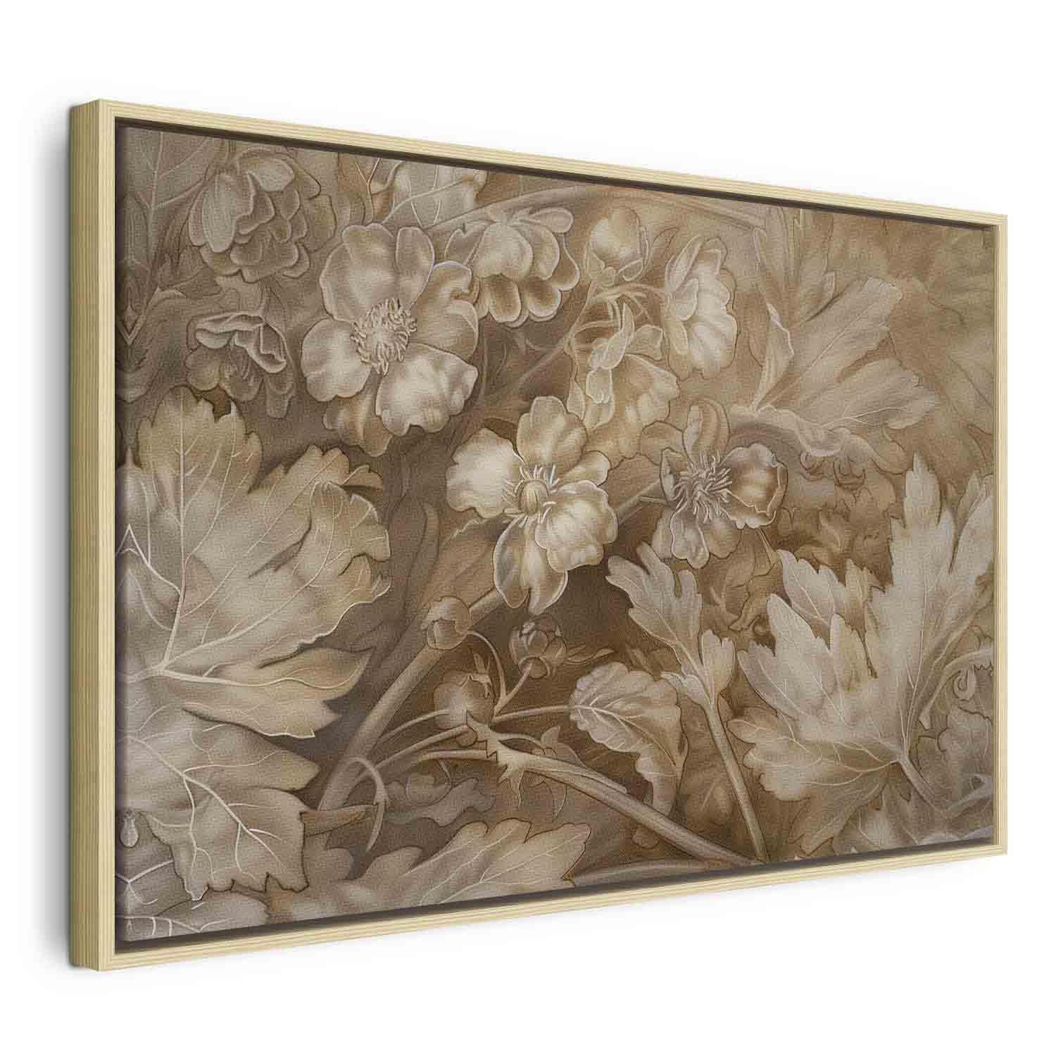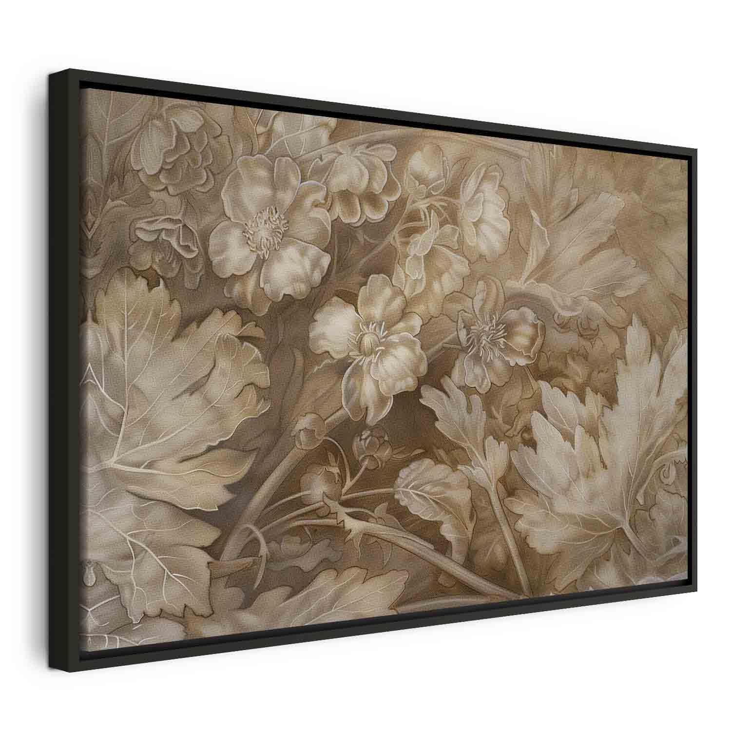 Leinwandbild - Floral Ornaments Carved in Delicate Sepia and Brown Shades
