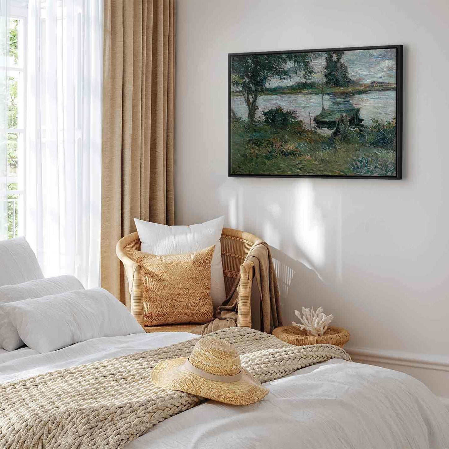 Unsere Bilder sind sicher und geruchsneutral und eignen sich daher ideal für Kinderzimmer. Die Größe wird Ihr Kind sicher beeindrucken! Bilder für Schlafzimmer sind ein echter Blickfang, genauso wie Bilder Wohnzimmer. Dekorieren Sie die Wände in Ihrem privaten Bereich mit einem Bild "Leinwandbild - Flußufer (Paul Gauguin)". Wir empfehlen Bilder für Schlafzimmer, die Sie beruhigen und in eine erholsame Stimmung versetzen. Bilder aus unserer Kollektion werden Ihrem Interieur eine außergewöhnliche Atmosphäre verleihen. Unabhängig vom Raum schaffen auch Kunst Bilder eine gemütliche Atmosphäre für die Gäste. Massive Holzrahmen unterstreichen den einzigartigen Charakter der Schlafzimmerbilder, und ein schneller und sicherer Versand ist ein weiterer Vorteil, der für diese Wanddekorationen spricht. Bilder auf Leinwand sind in vier Versionen erhältlich, aus denen jeder Kunde die perfekte Option für seine Bedürfnisse finden wird. Das Angebot umfasst eine Version auf Vliesleinwand (Standard), auf italienischer Leinwand, Premium Print (ein Bild, das auf italienischer Leinwand gedruckt und von Hand mit einer Schicht transparentem Gel überzogen ist, das die Pinselstriche des Künstlers imitiert) sowie in einem soliden, hölzernen American-Box-Rahmen (zwei Rahmenfarben zur Auswahl, Muster gedruckt auf italienischer Leinwand).