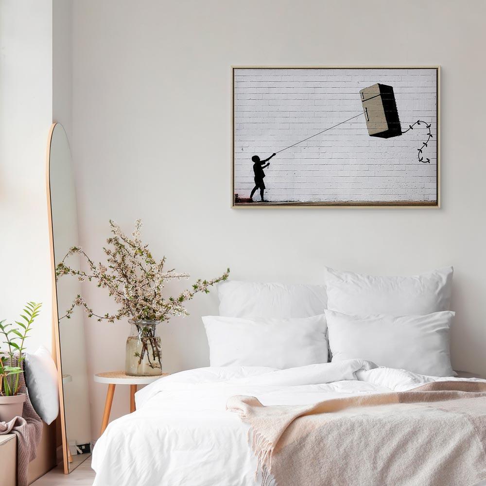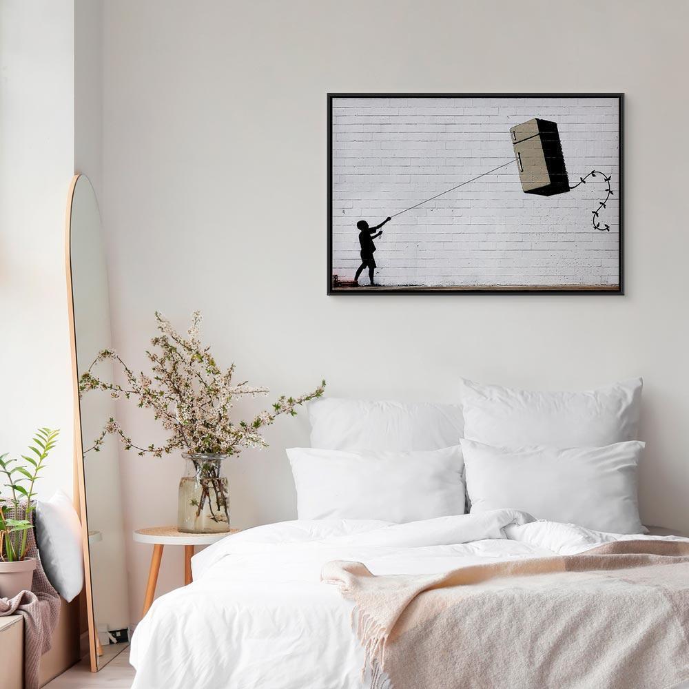 Unsere Bilder sind sicher und geruchsneutral und eignen sich daher ideal für Kinderzimmer. Die Größe wird Ihr Kind sicher beeindrucken! Bilder für Schlafzimmer sind ein echter Blickfang, genauso wie Bilder Wohnzimmer. Dekorieren Sie die Wände in Ihrem privaten Bereich mit einem Bild "Leinwandbild - Flying Fridge (1 Part) Wide". Wir empfehlen Bilder für Schlafzimmer , die Sie beruhigen und in eine erholsame Stimmung versetzen. Bilder aus unserer Kollektion werden Ihrem Interieur eine außergewöhnliche Atmosphäre verleihen. Unabhängig vom Raum schaffen auch Kunst Bilder eine gemütliche Atmosphäre für die Gäste. Massive Holzrahmen unterstreichen den einzigartigen Charakter der Schlafzimmerbilder, und ein schneller und sicherer Versand ist ein weiterer Vorteil, der für diese Wanddekorationen spricht Leinwandbilder sind in fünf Varianten erhältlich, sodass jeder Kunde die perfekte Option für seine Bedürfnisse findet.Die Variante auf Strukturleinwand (Standard) ist eine universelle Dekoration, die das Haushaltsbudget nicht belastet.Für Liebhaber edler Materialien ist ein Druck auf italienischer Leinwand aus 100 % Baumwolle die ideale Wahl.Und für Fans der Malerei? Hier überzeugt die außergewöhnliche Premium-Print-Technik – ein Bild, das auf Strukturleinwand gedruckt und von Hand mit einer Schicht transparenten Gels überzogen wird, die die Pinselstriche eines Künstlers imitiert – ein „wie gemalt“-Effekt, aber zu einem günstigeren Preis.Die Variante im soliden Holzrahmen des Typs American Box mit Tiefeneffekt (zwei Rahmenfarben zur Auswahl, Motiv auf Strukturleinwand gedruckt) bietet eine klassische Lösung in neuer Form.Das Akustikbild (Druck auf Strukturleinwand mit einer zusätzlichen Schicht schallabsorbierendem Schaumstoff) ist dagegen ein Volltreffer für alle, die Ästhetik mit Funktionalität verbinden möchten.Zwar sind die beiden letzten Optionen nur für bestimmte Größen von einteiligen Bildern verfügbar, doch bei allen Varianten legen wir GRATIS die erforderliche Anzahl an Haken und Nägeln zur Montage bei.