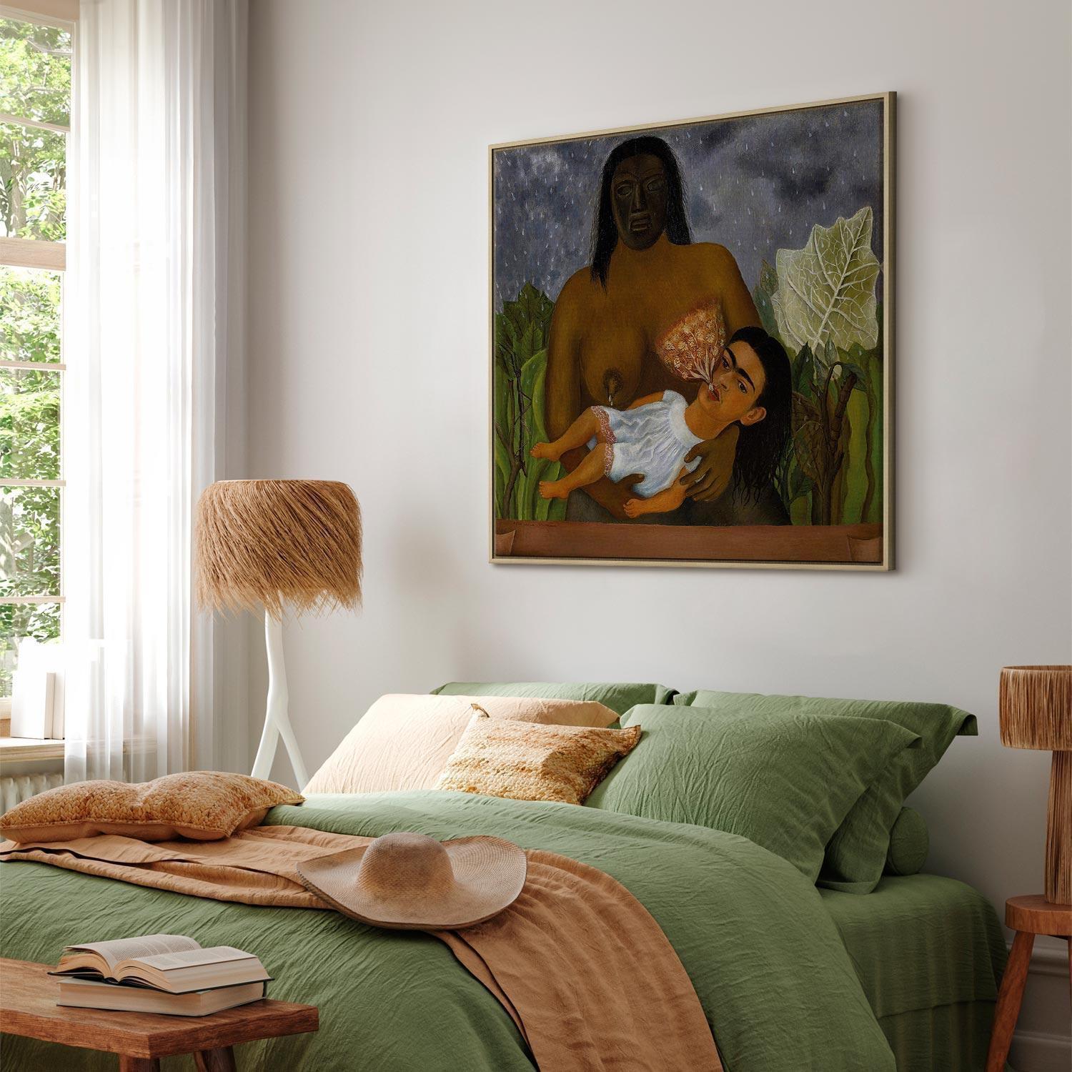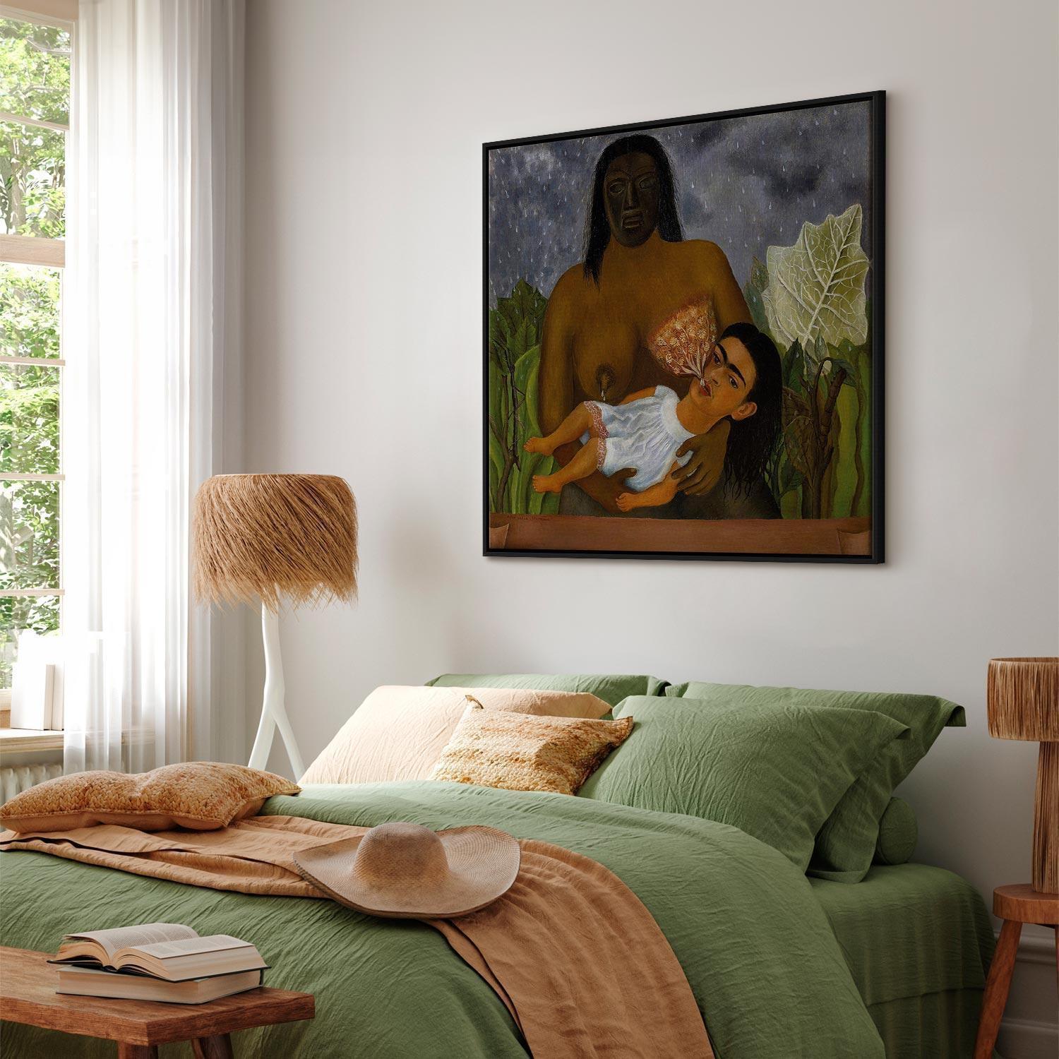 Unsere Bilder sind sicher und geruchsneutral und eignen sich daher ideal für Kinderzimmer. Die Größe wird Ihr Kind sicher beeindrucken! Bilder für Schlafzimmer sind ein echter Blickfang, genauso wie Bilder Wohnzimmer. Dekorieren Sie die Wände in Ihrem privaten Bereich mit einem Bild "Leinwandbild - Frida Kahlo – My Nurse and I". Wir empfehlen Bilder für Schlafzimmer , die Sie beruhigen und in eine erholsame Stimmung versetzen. Bilder aus unserer Kollektion werden Ihrem Interieur eine außergewöhnliche Atmosphäre verleihen. Unabhängig vom Raum schaffen auch Kunst Bilder eine gemütliche Atmosphäre für die Gäste. Massive Holzrahmen unterstreichen den einzigartigen Charakter der Schlafzimmerbilder, und ein schneller und sicherer Versand ist ein weiterer Vorteil, der für diese Wanddekorationen spricht Leinwandbilder sind in fünf Varianten erhältlich, sodass jeder Kunde die perfekte Option für seine Bedürfnisse findet.Die Variante auf Strukturleinwand (Standard) ist eine universelle Dekoration, die das Haushaltsbudget nicht belastet.Für Liebhaber edler Materialien ist ein Druck auf italienischer Leinwand aus 100 % Baumwolle die ideale Wahl.Und für Fans der Malerei? Hier überzeugt die außergewöhnliche Premium-Print-Technik – ein Bild, das auf Strukturleinwand gedruckt und von Hand mit einer Schicht transparenten Gels überzogen wird, die die Pinselstriche eines Künstlers imitiert – ein „wie gemalt“-Effekt, aber zu einem günstigeren Preis.Die Variante im soliden Holzrahmen des Typs American Box mit Tiefeneffekt (zwei Rahmenfarben zur Auswahl, Motiv auf Strukturleinwand gedruckt) bietet eine klassische Lösung in neuer Form.Das Akustikbild (Druck auf Strukturleinwand mit einer zusätzlichen Schicht schallabsorbierendem Schaumstoff) ist dagegen ein Volltreffer für alle, die Ästhetik mit Funktionalität verbinden möchten.Zwar sind die beiden letzten Optionen nur für bestimmte Größen von einteiligen Bildern verfügbar, doch bei allen Varianten legen wir GRATIS die erforderliche Anzahl an Haken und Nägeln zur Montage bei.