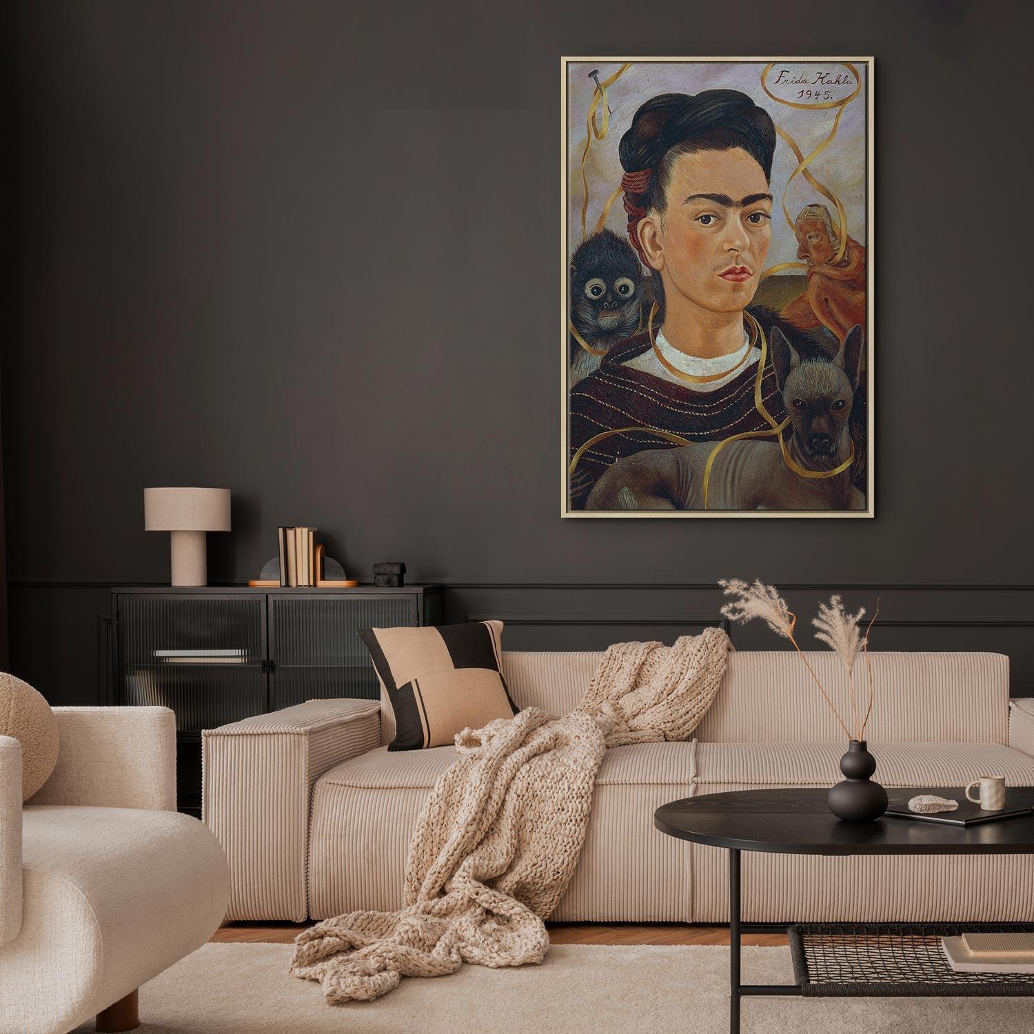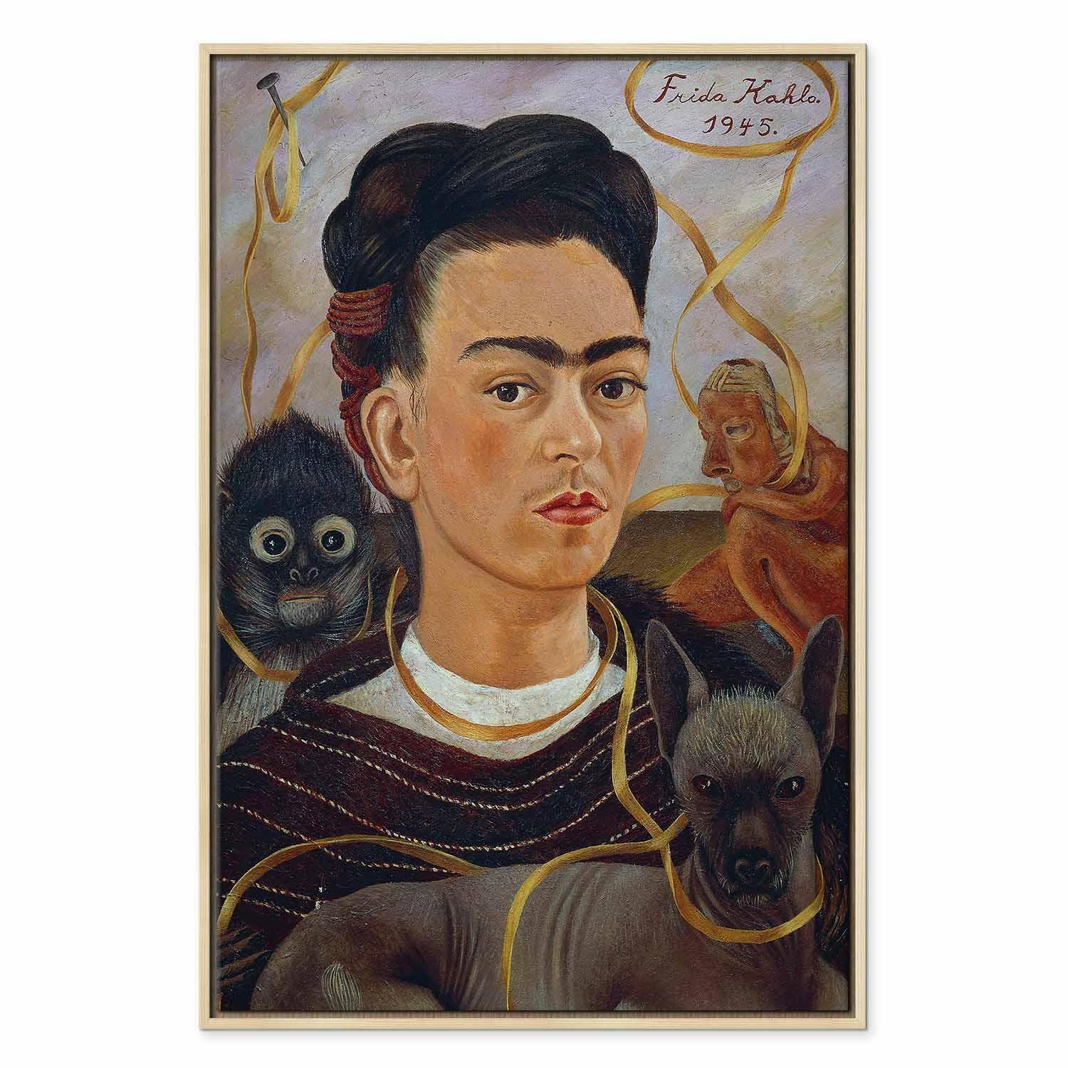Leinwandbild - Frida Kahlo – Self-Portrait with Changuito