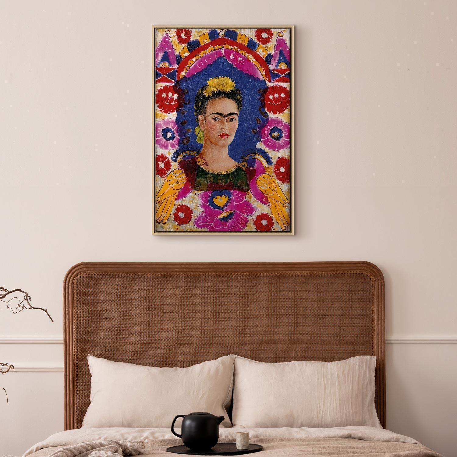 Unsere Bilder sind sicher und geruchsneutral und eignen sich daher ideal für Kinderzimmer. Die Größe wird Ihr Kind sicher beeindrucken! Bilder für Schlafzimmer sind ein echter Blickfang, genauso wie Bilder Wohnzimmer. Dekorieren Sie die Wände in Ihrem privaten Bereich mit einem Bild "Leinwandbild - Frida Kahlo – The Frame (Self-Portrait)". Wir empfehlen Bilder für Schlafzimmer , die Sie beruhigen und in eine erholsame Stimmung versetzen. Bilder aus unserer Kollektion werden Ihrem Interieur eine außergewöhnliche Atmosphäre verleihen. Unabhängig vom Raum schaffen auch Kunst Bilder eine gemütliche Atmosphäre für die Gäste. Massive Holzrahmen unterstreichen den einzigartigen Charakter der Schlafzimmerbilder, und ein schneller und sicherer Versand ist ein weiterer Vorteil, der für diese Wanddekorationen spricht Leinwandbilder sind in fünf Varianten erhältlich, sodass jeder Kunde die perfekte Option für seine Bedürfnisse findet.Die Variante auf Strukturleinwand (Standard) ist eine universelle Dekoration, die das Haushaltsbudget nicht belastet.Für Liebhaber edler Materialien ist ein Druck auf italienischer Leinwand aus 100 % Baumwolle die ideale Wahl.Und für Fans der Malerei? Hier überzeugt die außergewöhnliche Premium-Print-Technik – ein Bild, das auf Strukturleinwand gedruckt und von Hand mit einer Schicht transparenten Gels überzogen wird, die die Pinselstriche eines Künstlers imitiert – ein „wie gemalt“-Effekt, aber zu einem günstigeren Preis.Die Variante im soliden Holzrahmen des Typs American Box mit Tiefeneffekt (zwei Rahmenfarben zur Auswahl, Motiv auf Strukturleinwand gedruckt) bietet eine klassische Lösung in neuer Form.Das Akustikbild (Druck auf Strukturleinwand mit einer zusätzlichen Schicht schallabsorbierendem Schaumstoff) ist dagegen ein Volltreffer für alle, die Ästhetik mit Funktionalität verbinden möchten.Zwar sind die beiden letzten Optionen nur für bestimmte Größen von einteiligen Bildern verfügbar, doch bei allen Varianten legen wir GRATIS die erforderliche Anzahl an Haken und Nägeln zur Montage bei.