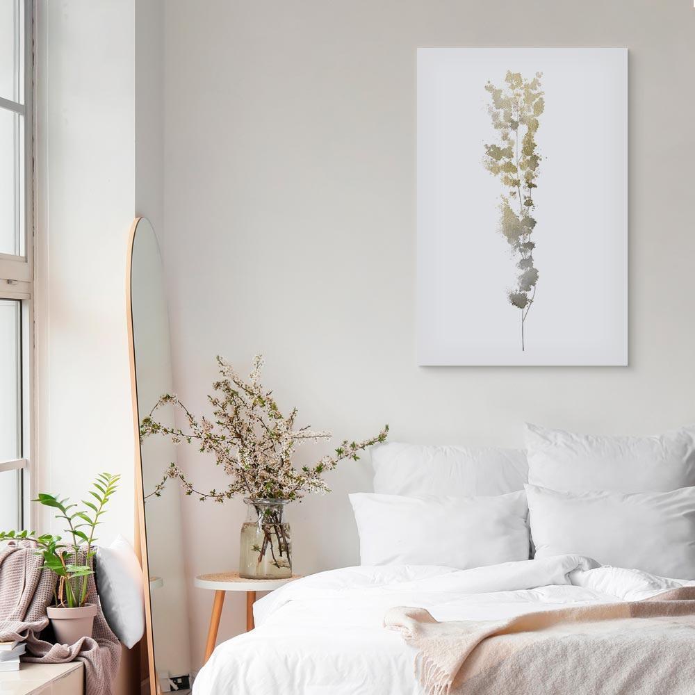 Unsere Bilder sind sicher und geruchsneutral und eignen sich daher ideal für Kinderzimmer. Die Größe wird Ihr Kind sicher beeindrucken! Bilder für Schlafzimmer sind ein echter Blickfang, genauso wie Bilder Wohnzimmer. Dekorieren Sie die Wände in Ihrem privaten Bereich mit einem Bild "Leinwandbild - Golden Branch (1 Part) Vertical". Wir empfehlen Bilder für Schlafzimmer , die Sie beruhigen und in eine erholsame Stimmung versetzen. Bilder aus unserer Kollektion werden Ihrem Interieur eine außergewöhnliche Atmosphäre verleihen. Unabhängig vom Raum schaffen auch Kunst Bilder eine gemütliche Atmosphäre für die Gäste. Massive Holzrahmen unterstreichen den einzigartigen Charakter der Schlafzimmerbilder, und ein schneller und sicherer Versand ist ein weiterer Vorteil, der für diese Wanddekorationen spricht Leinwandbilder sind in fünf Varianten erhältlich, sodass jeder Kunde die perfekte Option für seine Bedürfnisse findet.Die Variante auf Strukturleinwand (Standard) ist eine universelle Dekoration, die das Haushaltsbudget nicht belastet.Für Liebhaber edler Materialien ist ein Druck auf italienischer Leinwand aus 100 % Baumwolle die ideale Wahl.Und für Fans der Malerei? Hier überzeugt die außergewöhnliche Premium-Print-Technik – ein Bild, das auf Strukturleinwand gedruckt und von Hand mit einer Schicht transparenten Gels überzogen wird, die die Pinselstriche eines Künstlers imitiert – ein „wie gemalt“-Effekt, aber zu einem günstigeren Preis.Die Variante im soliden Holzrahmen des Typs American Box mit Tiefeneffekt (zwei Rahmenfarben zur Auswahl, Motiv auf Strukturleinwand gedruckt) bietet eine klassische Lösung in neuer Form.Das Akustikbild (Druck auf Strukturleinwand mit einer zusätzlichen Schicht schallabsorbierendem Schaumstoff) ist dagegen ein Volltreffer für alle, die Ästhetik mit Funktionalität verbinden möchten.Zwar sind die beiden letzten Optionen nur für bestimmte Größen von einteiligen Bildern verfügbar, doch bei allen Varianten legen wir GRATIS die erforderliche Anzahl an Haken und Nägeln zur Montage bei.