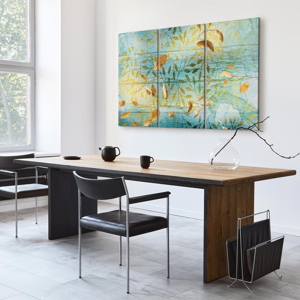 Unsere Bilder sind sicher und geruchsneutral und eignen sich daher ideal für Kinderzimmer. Die Größe wird Ihr Kind sicher beeindrucken! Bilder für Schlafzimmer sind ein echter Blickfang, genauso wie Bilder Wohnzimmer. Dekorieren Sie die Wände in Ihrem privaten Bereich mit einem Bild "Leinwandbild - Golden Harvest (3 Parts)". Wir empfehlen Bilder für Schlafzimmer , die Sie beruhigen und in eine erholsame Stimmung versetzen. Bilder aus unserer Kollektion werden Ihrem Interieur eine außergewöhnliche Atmosphäre verleihen. Unabhängig vom Raum schaffen auch Kunst Bilder eine gemütliche Atmosphäre für die Gäste. Massive Holzrahmen unterstreichen den einzigartigen Charakter der Schlafzimmerbilder, und ein schneller und sicherer Versand ist ein weiterer Vorteil, der für diese Wanddekorationen spricht Leinwandbilder sind in fünf Varianten erhältlich, sodass jeder Kunde die perfekte Option für seine Bedürfnisse findet.Die Variante auf Strukturleinwand (Standard) ist eine universelle Dekoration, die das Haushaltsbudget nicht belastet.Für Liebhaber edler Materialien ist ein Druck auf italienischer Leinwand aus 100 % Baumwolle die ideale Wahl.Und für Fans der Malerei? Hier überzeugt die außergewöhnliche Premium-Print-Technik – ein Bild, das auf Strukturleinwand gedruckt und von Hand mit einer Schicht transparenten Gels überzogen wird, die die Pinselstriche eines Künstlers imitiert – ein „wie gemalt“-Effekt, aber zu einem günstigeren Preis.Die Variante im soliden Holzrahmen des Typs American Box mit Tiefeneffekt (zwei Rahmenfarben zur Auswahl, Motiv auf Strukturleinwand gedruckt) bietet eine klassische Lösung in neuer Form.Das Akustikbild (Druck auf Strukturleinwand mit einer zusätzlichen Schicht schallabsorbierendem Schaumstoff) ist dagegen ein Volltreffer für alle, die Ästhetik mit Funktionalität verbinden möchten.Zwar sind die beiden letzten Optionen nur für bestimmte Größen von einteiligen Bildern verfügbar, doch bei allen Varianten legen wir GRATIS die erforderliche Anzahl an Haken und Nägeln zur Montage bei.