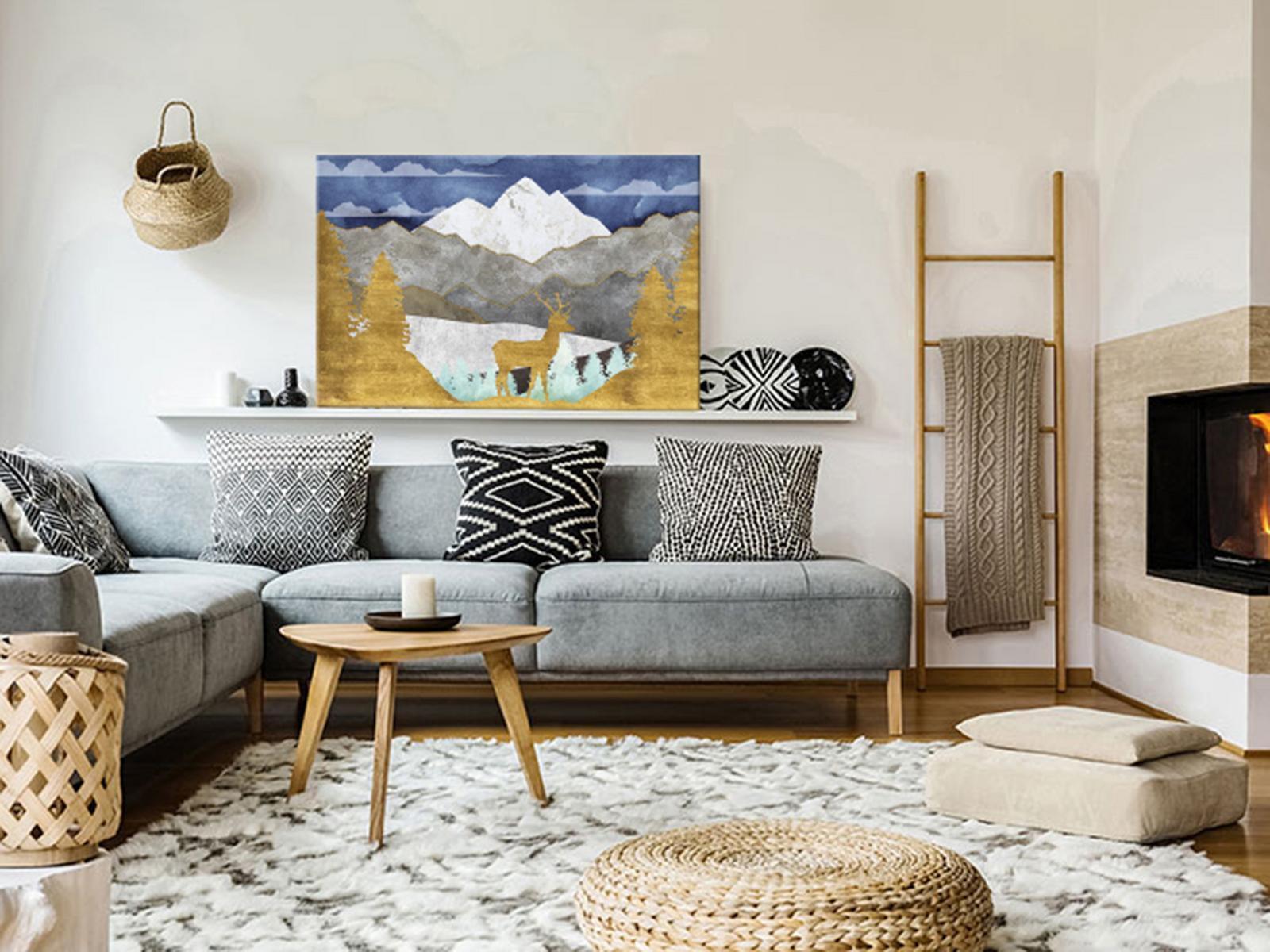 Das Leinwandbild „Golden Land“ strahlt eine harmonische Balance zwischen Natur und Abstraktion aus. Die gold-beigen Nuancen fördern ein angenehmes Raumgefühl und passen sich vielseitig an unterschiedliche Farbkonzepte an. Besonders beliebt ist es im Wohnzimmer, im Schlafzimmer oder im Eingangsbereich – dort, wo ein stimmungsvoller Akzent gesetzt werden soll.