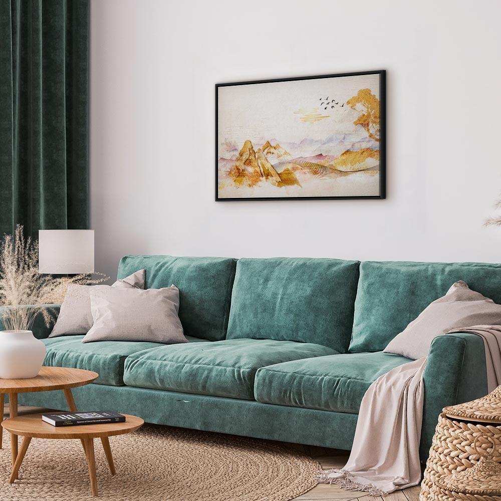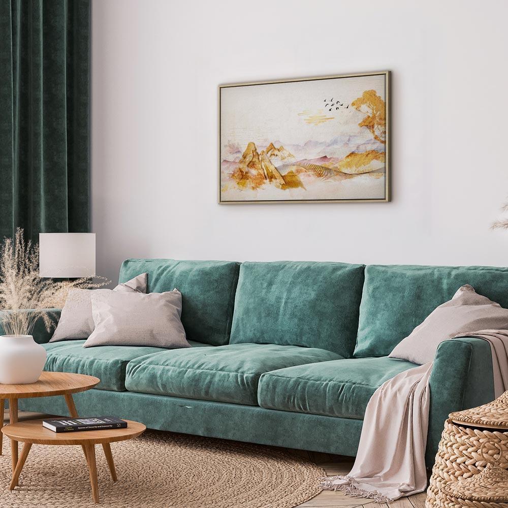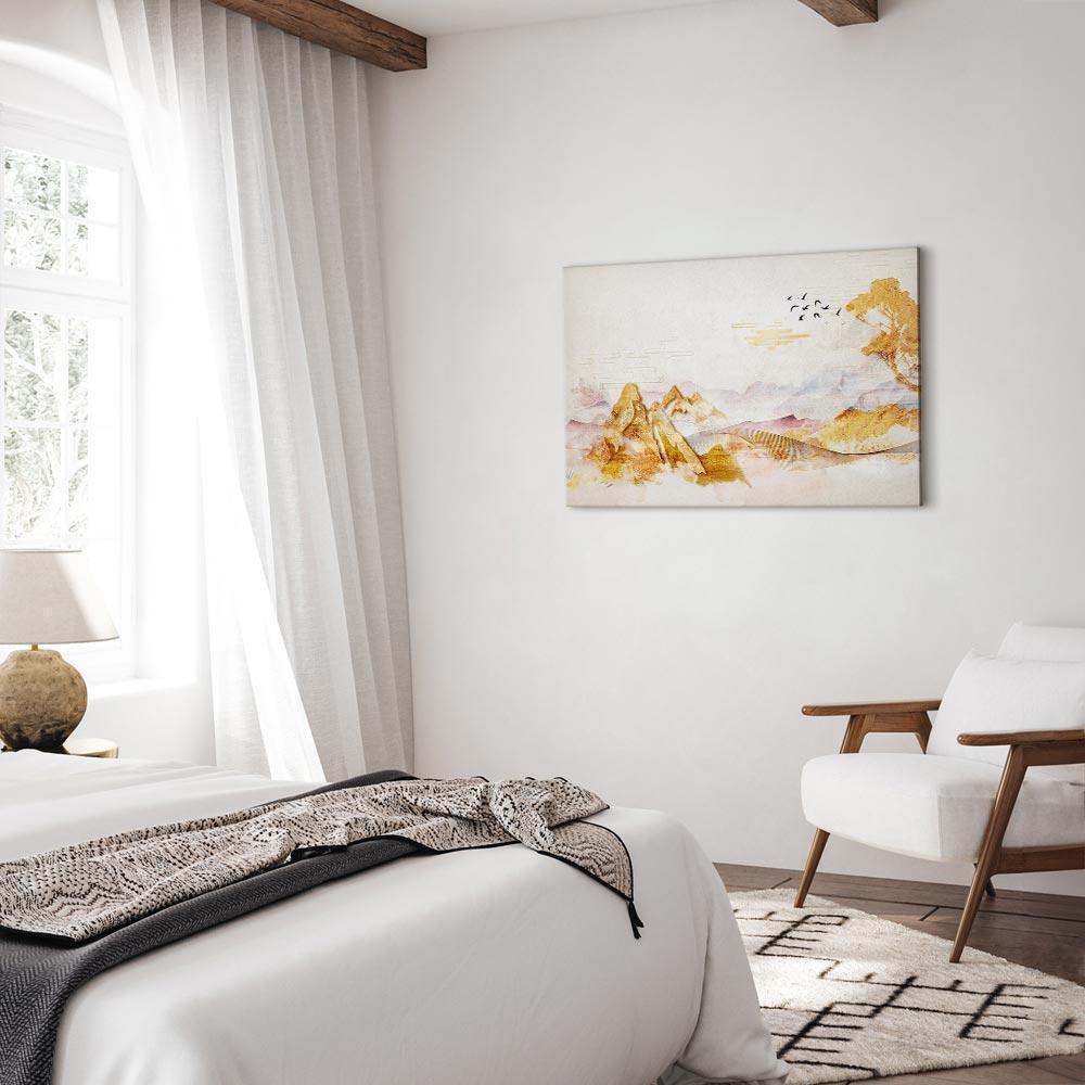 Unsere Bilder sind sicher und geruchsneutral und eignen sich daher ideal für Kinderzimmer. Die Größe wird Ihr Kind sicher beeindrucken! Bilder für Schlafzimmer sind ein echter Blickfang, genauso wie Bilder Wohnzimmer. Dekorieren Sie die Wände in Ihrem privaten Bereich mit einem Bild "Leinwandbild - Golden Mountains (1 Part) Wide". Wir empfehlen Bilder für Schlafzimmer , die Sie beruhigen und in eine erholsame Stimmung versetzen. Bilder aus unserer Kollektion werden Ihrem Interieur eine außergewöhnliche Atmosphäre verleihen. Unabhängig vom Raum schaffen auch Kunst Bilder eine gemütliche Atmosphäre für die Gäste. Massive Holzrahmen unterstreichen den einzigartigen Charakter der Schlafzimmerbilder, und ein schneller und sicherer Versand ist ein weiterer Vorteil, der für diese Wanddekorationen spricht Leinwandbilder sind in fünf Varianten erhältlich, sodass jeder Kunde die perfekte Option für seine Bedürfnisse findet.Die Variante auf Strukturleinwand (Standard) ist eine universelle Dekoration, die das Haushaltsbudget nicht belastet.Für Liebhaber edler Materialien ist ein Druck auf italienischer Leinwand aus 100 % Baumwolle die ideale Wahl.Und für Fans der Malerei? Hier überzeugt die außergewöhnliche Premium-Print-Technik – ein Bild, das auf Strukturleinwand gedruckt und von Hand mit einer Schicht transparenten Gels überzogen wird, die die Pinselstriche eines Künstlers imitiert – ein „wie gemalt“-Effekt, aber zu einem günstigeren Preis.Die Variante im soliden Holzrahmen des Typs American Box mit Tiefeneffekt (zwei Rahmenfarben zur Auswahl, Motiv auf Strukturleinwand gedruckt) bietet eine klassische Lösung in neuer Form.Das Akustikbild (Druck auf Strukturleinwand mit einer zusätzlichen Schicht schallabsorbierendem Schaumstoff) ist dagegen ein Volltreffer für alle, die Ästhetik mit Funktionalität verbinden möchten.Zwar sind die beiden letzten Optionen nur für bestimmte Größen von einteiligen Bildern verfügbar, doch bei allen Varianten legen wir GRATIS die erforderliche Anzahl an Haken und Nägeln zur Montage bei.