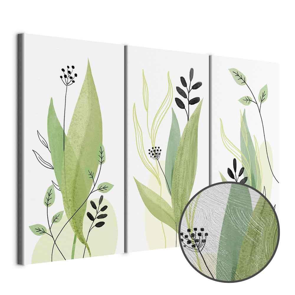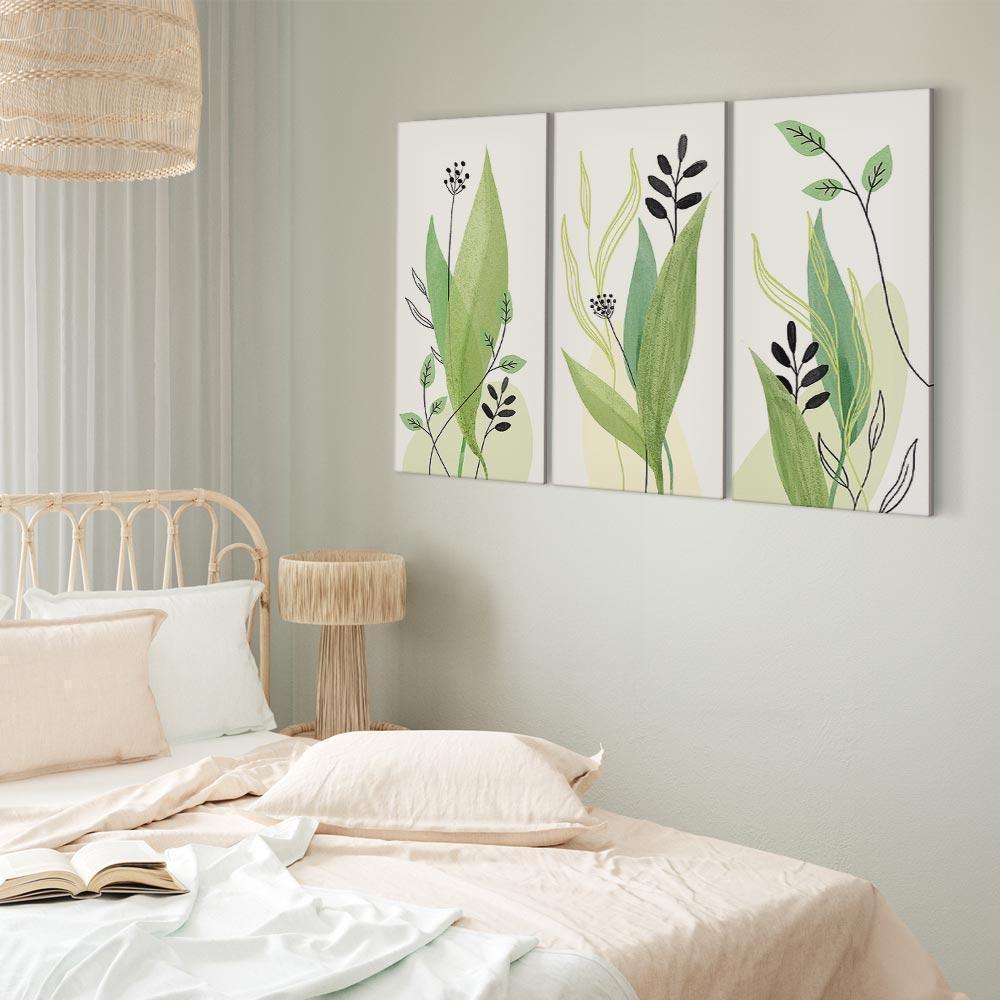 Unsere Bilder sind sicher und geruchsneutral und eignen sich daher ideal für Kinderzimmer. Die Größe wird Ihr Kind sicher beeindrucken! Bilder für Schlafzimmer sind ein echter Blickfang, genauso wie Bilder Wohnzimmer. Dekorieren Sie die Wände in Ihrem privaten Bereich mit einem Bild "Leinwandbild - Green Day (3 Parts)". Wir empfehlen Bilder für Schlafzimmer , die Sie beruhigen und in eine erholsame Stimmung versetzen. Bilder aus unserer Kollektion werden Ihrem Interieur eine außergewöhnliche Atmosphäre verleihen. Unabhängig vom Raum schaffen auch Kunst Bilder eine gemütliche Atmosphäre für die Gäste. Massive Holzrahmen unterstreichen den einzigartigen Charakter der Schlafzimmerbilder, und ein schneller und sicherer Versand ist ein weiterer Vorteil, der für diese Wanddekorationen spricht Leinwandbilder sind in fünf Varianten erhältlich, sodass jeder Kunde die perfekte Option für seine Bedürfnisse findet.Die Variante auf Strukturleinwand (Standard) ist eine universelle Dekoration, die das Haushaltsbudget nicht belastet.Für Liebhaber edler Materialien ist ein Druck auf italienischer Leinwand aus 100 % Baumwolle die ideale Wahl.Und für Fans der Malerei? Hier überzeugt die außergewöhnliche Premium-Print-Technik – ein Bild, das auf Strukturleinwand gedruckt und von Hand mit einer Schicht transparenten Gels überzogen wird, die die Pinselstriche eines Künstlers imitiert – ein „wie gemalt“-Effekt, aber zu einem günstigeren Preis.Die Variante im soliden Holzrahmen des Typs American Box mit Tiefeneffekt (zwei Rahmenfarben zur Auswahl, Motiv auf Strukturleinwand gedruckt) bietet eine klassische Lösung in neuer Form.Das Akustikbild (Druck auf Strukturleinwand mit einer zusätzlichen Schicht schallabsorbierendem Schaumstoff) ist dagegen ein Volltreffer für alle, die Ästhetik mit Funktionalität verbinden möchten.Zwar sind die beiden letzten Optionen nur für bestimmte Größen von einteiligen Bildern verfügbar, doch bei allen Varianten legen wir GRATIS die erforderliche Anzahl an Haken und Nägeln zur Montage bei.
