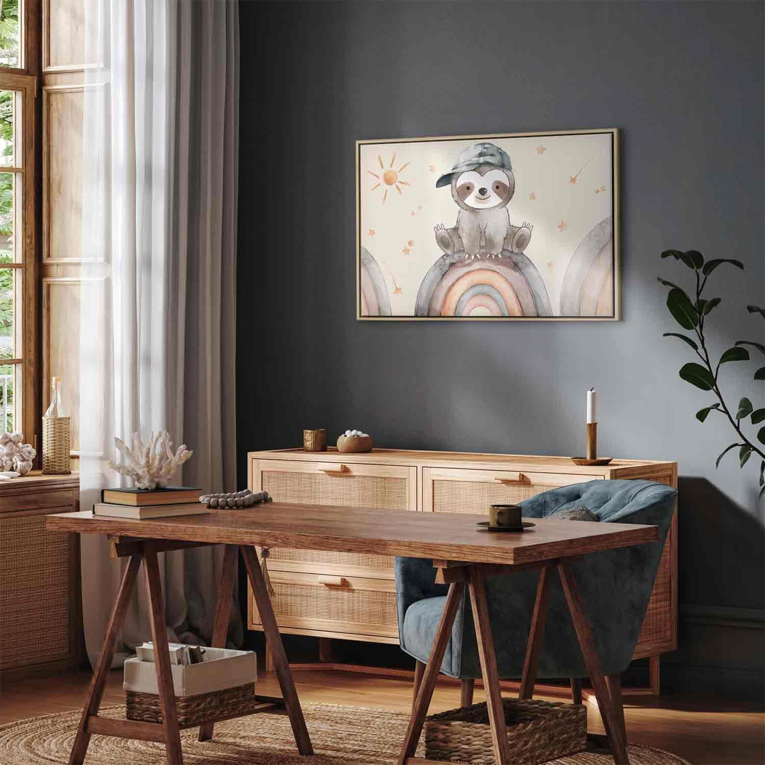 Unsere Bilder sind sicher und geruchsneutral und eignen sich daher ideal für Kinderzimmer. Die Größe wird Ihr Kind sicher beeindrucken! Bilder für Schlafzimmer sind ein echter Blickfang, genauso wie Bilder Wohnzimmer. Dekorieren Sie die Wände in Ihrem privaten Bereich mit einem Bild "Leinwandbild - Happy Sloth - Sloth in Subdued Colors Wearing a Cap Sitting on a Rainbow Among Little Stars". Wir empfehlen Bilder für Schlafzimmer , die Sie beruhigen und in eine erholsame Stimmung versetzen. Bilder aus unserer Kollektion werden Ihrem Interieur eine außergewöhnliche Atmosphäre verleihen. Unabhängig vom Raum schaffen auch Kunst Bilder eine gemütliche Atmosphäre für die Gäste. Massive Holzrahmen unterstreichen den einzigartigen Charakter der Schlafzimmerbilder, und ein schneller und sicherer Versand ist ein weiterer Vorteil, der für diese Wanddekorationen spricht Leinwandbilder sind in fünf Varianten erhältlich, sodass jeder Kunde die perfekte Option für seine Bedürfnisse findet.Die Variante auf Strukturleinwand (Standard) ist eine universelle Dekoration, die das Haushaltsbudget nicht belastet.Für Liebhaber edler Materialien ist ein Druck auf italienischer Leinwand aus 100 % Baumwolle die ideale Wahl.Und für Fans der Malerei? Hier überzeugt die außergewöhnliche Premium-Print-Technik – ein Bild, das auf Strukturleinwand gedruckt und von Hand mit einer Schicht transparenten Gels überzogen wird, die die Pinselstriche eines Künstlers imitiert – ein „wie gemalt“-Effekt, aber zu einem günstigeren Preis.Die Variante im soliden Holzrahmen des Typs American Box mit Tiefeneffekt (zwei Rahmenfarben zur Auswahl, Motiv auf Strukturleinwand gedruckt) bietet eine klassische Lösung in neuer Form.Das Akustikbild (Druck auf Strukturleinwand mit einer zusätzlichen Schicht schallabsorbierendem Schaumstoff) ist dagegen ein Volltreffer für alle, die Ästhetik mit Funktionalität verbinden möchten.Zwar sind die beiden letzten Optionen nur für bestimmte Größen von einteiligen Bildern verfügbar, doch bei allen Varianten legen wir GRATIS die erforderliche Anzahl an Haken und Nägeln zur Montage bei.