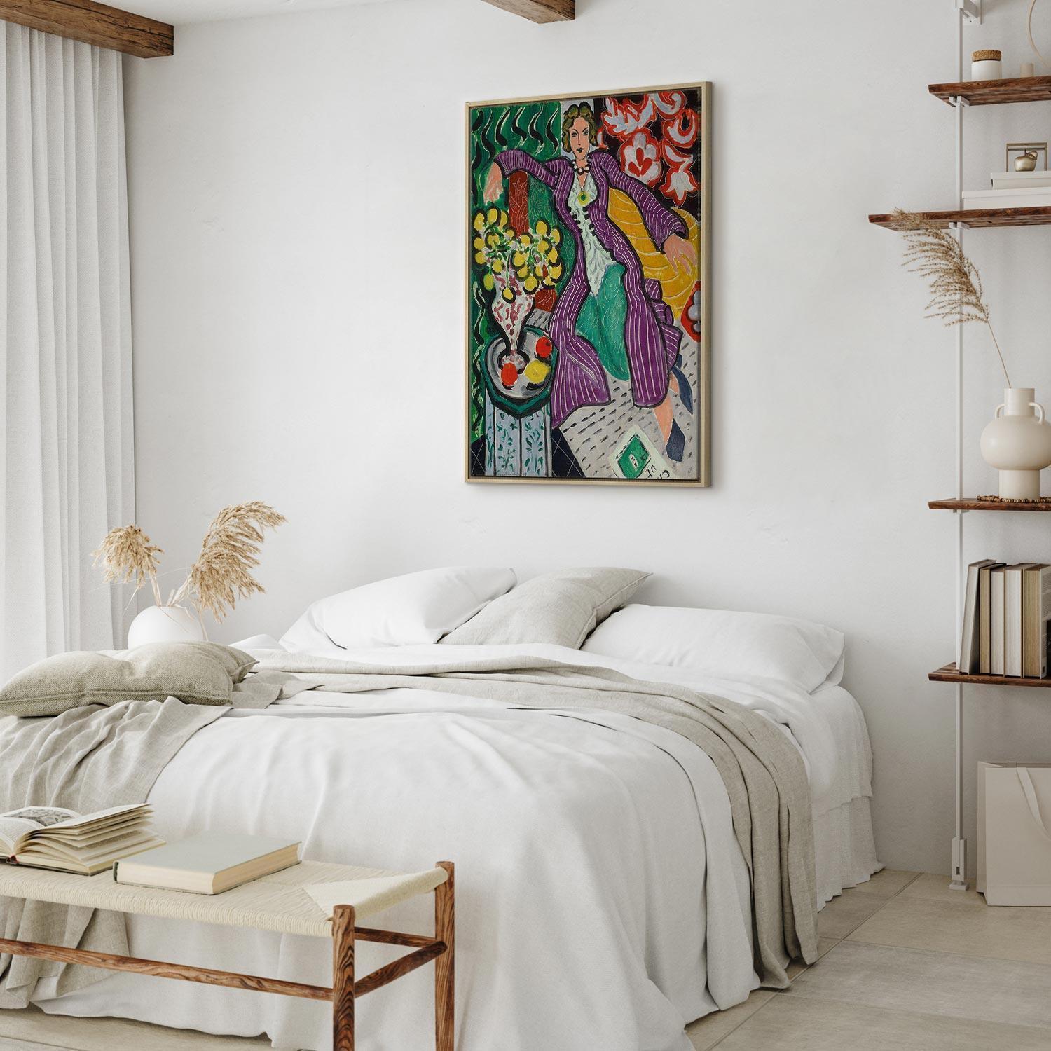 Unsere Bilder sind sicher und geruchsneutral und eignen sich daher ideal für Kinderzimmer. Die Größe wird Ihr Kind sicher beeindrucken! Bilder für Schlafzimmer sind ein echter Blickfang, genauso wie Bilder Wohnzimmer. Dekorieren Sie die Wände in Ihrem privaten Bereich mit einem Bild "Leinwandbild - Henri Matisse – Woman in a Purple Coat". Wir empfehlen Bilder für Schlafzimmer , die Sie beruhigen und in eine erholsame Stimmung versetzen. Bilder aus unserer Kollektion werden Ihrem Interieur eine außergewöhnliche Atmosphäre verleihen. Unabhängig vom Raum schaffen auch Kunst Bilder eine gemütliche Atmosphäre für die Gäste. Massive Holzrahmen unterstreichen den einzigartigen Charakter der Schlafzimmerbilder, und ein schneller und sicherer Versand ist ein weiterer Vorteil, der für diese Wanddekorationen spricht Leinwandbilder sind in fünf Varianten erhältlich, sodass jeder Kunde die perfekte Option für seine Bedürfnisse findet.Die Variante auf Strukturleinwand (Standard) ist eine universelle Dekoration, die das Haushaltsbudget nicht belastet.Für Liebhaber edler Materialien ist ein Druck auf italienischer Leinwand aus 100 % Baumwolle die ideale Wahl.Und für Fans der Malerei? Hier überzeugt die außergewöhnliche Premium-Print-Technik – ein Bild, das auf Strukturleinwand gedruckt und von Hand mit einer Schicht transparenten Gels überzogen wird, die die Pinselstriche eines Künstlers imitiert – ein „wie gemalt“-Effekt, aber zu einem günstigeren Preis.Die Variante im soliden Holzrahmen des Typs American Box mit Tiefeneffekt (zwei Rahmenfarben zur Auswahl, Motiv auf Strukturleinwand gedruckt) bietet eine klassische Lösung in neuer Form.Das Akustikbild (Druck auf Strukturleinwand mit einer zusätzlichen Schicht schallabsorbierendem Schaumstoff) ist dagegen ein Volltreffer für alle, die Ästhetik mit Funktionalität verbinden möchten.Zwar sind die beiden letzten Optionen nur für bestimmte Größen von einteiligen Bildern verfügbar, doch bei allen Varianten legen wir GRATIS die erforderliche Anzahl an Haken und Nägeln zur Montage bei.