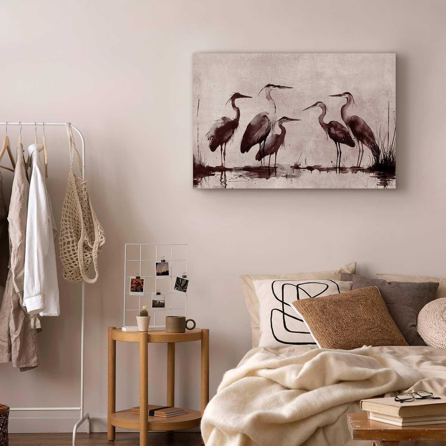 Unsere Bilder sind sicher und geruchsneutral und eignen sich daher ideal für Kinderzimmer. Die Größe wird Ihr Kind sicher beeindrucken! Bilder für Schlafzimmer sind ein echter Blickfang, genauso wie Bilder Wohnzimmer. Dekorieren Sie die Wände in Ihrem privaten Bereich mit einem Bild "Leinwandbild - Herons painted with ink". Wir empfehlen Bilder für Schlafzimmer , die Sie beruhigen und in eine erholsame Stimmung versetzen. Bilder aus unserer Kollektion werden Ihrem Interieur eine außergewöhnliche Atmosphäre verleihen. Unabhängig vom Raum schaffen auch Kunst Bilder eine gemütliche Atmosphäre für die Gäste. Massive Holzrahmen unterstreichen den einzigartigen Charakter der Schlafzimmerbilder, und ein schneller und sicherer Versand ist ein weiterer Vorteil, der für diese Wanddekorationen spricht Leinwandbilder sind in fünf Varianten erhältlich, sodass jeder Kunde die perfekte Option für seine Bedürfnisse findet.Die Variante auf Strukturleinwand (Standard) ist eine universelle Dekoration, die das Haushaltsbudget nicht belastet.Für Liebhaber edler Materialien ist ein Druck auf italienischer Leinwand aus 100 % Baumwolle die ideale Wahl.Und für Fans der Malerei? Hier überzeugt die außergewöhnliche Premium-Print-Technik – ein Bild, das auf Strukturleinwand gedruckt und von Hand mit einer Schicht transparenten Gels überzogen wird, die die Pinselstriche eines Künstlers imitiert – ein „wie gemalt“-Effekt, aber zu einem günstigeren Preis.Die Variante im soliden Holzrahmen des Typs American Box mit Tiefeneffekt (zwei Rahmenfarben zur Auswahl, Motiv auf Strukturleinwand gedruckt) bietet eine klassische Lösung in neuer Form.Das Akustikbild (Druck auf Strukturleinwand mit einer zusätzlichen Schicht schallabsorbierendem Schaumstoff) ist dagegen ein Volltreffer für alle, die Ästhetik mit Funktionalität verbinden möchten.Zwar sind die beiden letzten Optionen nur für bestimmte Größen von einteiligen Bildern verfügbar, doch bei allen Varianten legen wir GRATIS die erforderliche Anzahl an Haken und Nägeln zur Montage bei.