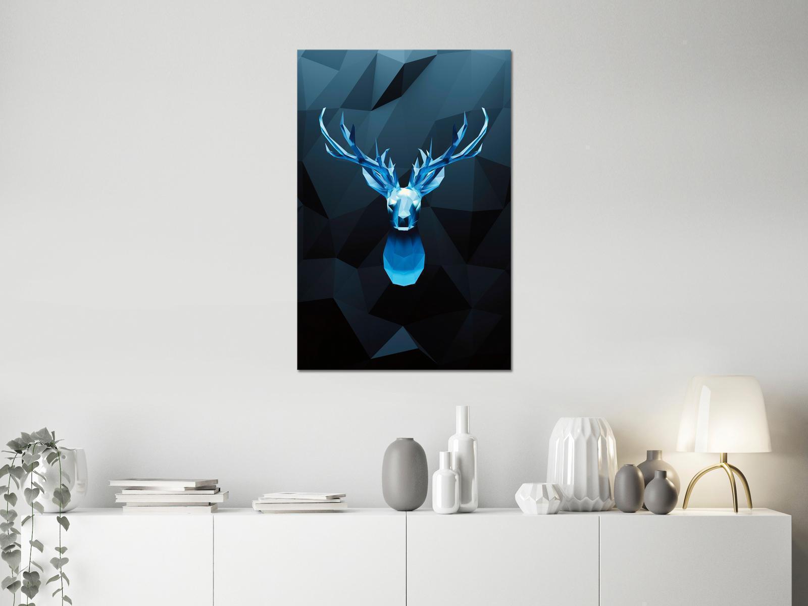 Das Leinwandbild „Eishirsch“ zeigt einen majestätischen weißen Hirsch inmitten einer vereisten, mystischen Winterlandschaft. Die kalten Blautöne und die minimalistische Komposition verleihen dem Motiv eine beruhigende und zugleich eindrucksvolle Wirkung.