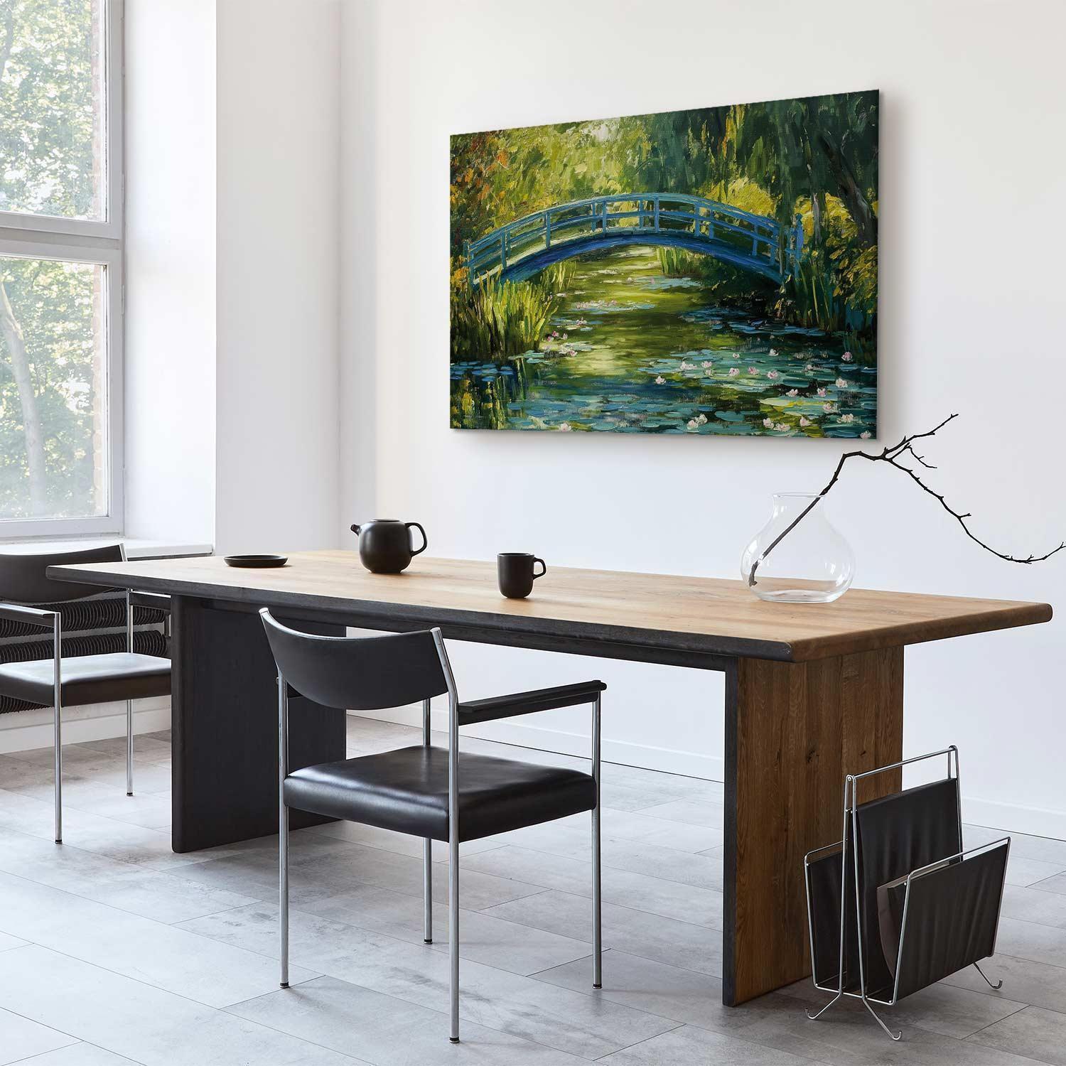 Leinwandbild - Impressionist bridge - painting of a bridge against a picturesque background