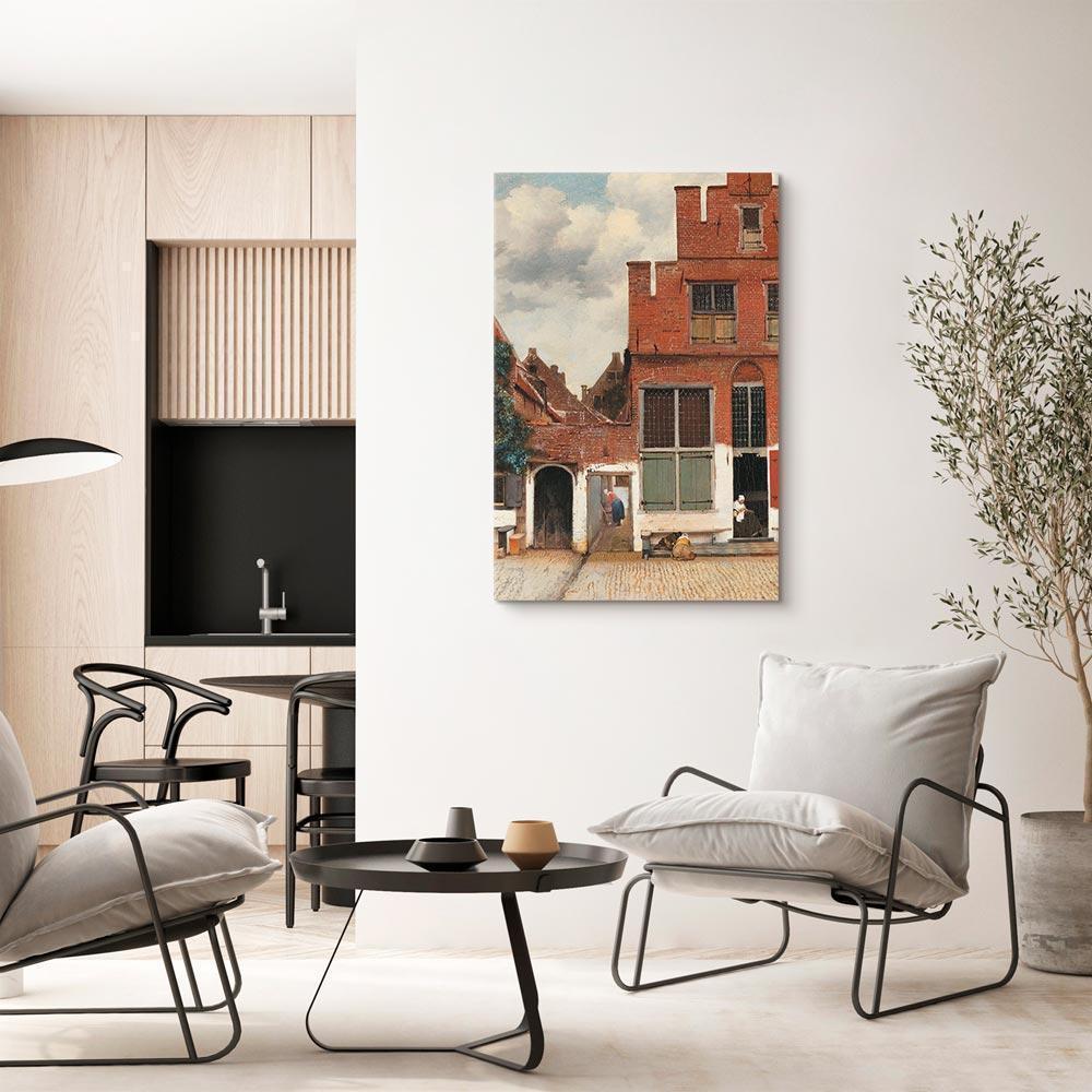 Unsere Bilder sind sicher und geruchsneutral und eignen sich daher ideal für Kinderzimmer. Die Größe wird Ihr Kind sicher beeindrucken! Bilder für Schlafzimmer sind ein echter Blickfang, genauso wie Bilder Wohnzimmer. Dekorieren Sie die Wände in Ihrem privaten Bereich mit einem Bild "Leinwandbild - Jan Vermeer – The Little Street". Wir empfehlen Bilder für Schlafzimmer , die Sie beruhigen und in eine erholsame Stimmung versetzen. Bilder aus unserer Kollektion werden Ihrem Interieur eine außergewöhnliche Atmosphäre verleihen. Unabhängig vom Raum schaffen auch Kunst Bilder eine gemütliche Atmosphäre für die Gäste. Massive Holzrahmen unterstreichen den einzigartigen Charakter der Schlafzimmerbilder, und ein schneller und sicherer Versand ist ein weiterer Vorteil, der für diese Wanddekorationen spricht Leinwandbilder sind in fünf Varianten erhältlich, sodass jeder Kunde die perfekte Option für seine Bedürfnisse findet.Die Variante auf Strukturleinwand (Standard) ist eine universelle Dekoration, die das Haushaltsbudget nicht belastet.Für Liebhaber edler Materialien ist ein Druck auf italienischer Leinwand aus 100 % Baumwolle die ideale Wahl.Und für Fans der Malerei? Hier überzeugt die außergewöhnliche Premium-Print-Technik – ein Bild, das auf Strukturleinwand gedruckt und von Hand mit einer Schicht transparenten Gels überzogen wird, die die Pinselstriche eines Künstlers imitiert – ein „wie gemalt“-Effekt, aber zu einem günstigeren Preis.Die Variante im soliden Holzrahmen des Typs American Box mit Tiefeneffekt (zwei Rahmenfarben zur Auswahl, Motiv auf Strukturleinwand gedruckt) bietet eine klassische Lösung in neuer Form.Das Akustikbild (Druck auf Strukturleinwand mit einer zusätzlichen Schicht schallabsorbierendem Schaumstoff) ist dagegen ein Volltreffer für alle, die Ästhetik mit Funktionalität verbinden möchten.Zwar sind die beiden letzten Optionen nur für bestimmte Größen von einteiligen Bildern verfügbar, doch bei allen Varianten legen wir GRATIS die erforderliche Anzahl an Haken und Nägeln zur Montage bei.