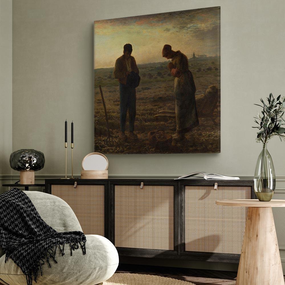 Unsere Bilder sind sicher und geruchsneutral und eignen sich daher ideal für Kinderzimmer. Die Größe wird Ihr Kind sicher beeindrucken! Bilder für Schlafzimmer sind ein echter Blickfang, genauso wie Bilder Wohnzimmer. Dekorieren Sie die Wände in Ihrem privaten Bereich mit einem Bild "Leinwandbild - Jean-François Millet – The Angelus". Wir empfehlen Bilder für Schlafzimmer , die Sie beruhigen und in eine erholsame Stimmung versetzen. Bilder aus unserer Kollektion werden Ihrem Interieur eine außergewöhnliche Atmosphäre verleihen. Unabhängig vom Raum schaffen auch Kunst Bilder eine gemütliche Atmosphäre für die Gäste. Massive Holzrahmen unterstreichen den einzigartigen Charakter der Schlafzimmerbilder, und ein schneller und sicherer Versand ist ein weiterer Vorteil, der für diese Wanddekorationen spricht Leinwandbilder sind in fünf Varianten erhältlich, sodass jeder Kunde die perfekte Option für seine Bedürfnisse findet.Die Variante auf Strukturleinwand (Standard) ist eine universelle Dekoration, die das Haushaltsbudget nicht belastet.Für Liebhaber edler Materialien ist ein Druck auf italienischer Leinwand aus 100 % Baumwolle die ideale Wahl.Und für Fans der Malerei? Hier überzeugt die außergewöhnliche Premium-Print-Technik – ein Bild, das auf Strukturleinwand gedruckt und von Hand mit einer Schicht transparenten Gels überzogen wird, die die Pinselstriche eines Künstlers imitiert – ein „wie gemalt“-Effekt, aber zu einem günstigeren Preis.Die Variante im soliden Holzrahmen des Typs American Box mit Tiefeneffekt (zwei Rahmenfarben zur Auswahl, Motiv auf Strukturleinwand gedruckt) bietet eine klassische Lösung in neuer Form.Das Akustikbild (Druck auf Strukturleinwand mit einer zusätzlichen Schicht schallabsorbierendem Schaumstoff) ist dagegen ein Volltreffer für alle, die Ästhetik mit Funktionalität verbinden möchten.Zwar sind die beiden letzten Optionen nur für bestimmte Größen von einteiligen Bildern verfügbar, doch bei allen Varianten legen wir GRATIS die erforderliche Anzahl an Haken und Nägeln zur Montage bei.