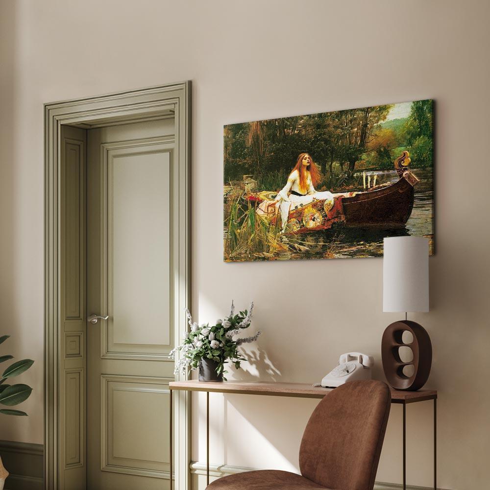 Unsere Bilder sind sicher und geruchsneutral und eignen sich daher ideal für Kinderzimmer. Die Größe wird Ihr Kind sicher beeindrucken! Bilder für Schlafzimmer sind ein echter Blickfang, genauso wie Bilder Wohnzimmer. Dekorieren Sie die Wände in Ihrem privaten Bereich mit einem Bild "Leinwandbild - John William Waterhouse – The Lady of Shalott". Wir empfehlen Bilder für Schlafzimmer , die Sie beruhigen und in eine erholsame Stimmung versetzen. Bilder aus unserer Kollektion werden Ihrem Interieur eine außergewöhnliche Atmosphäre verleihen. Unabhängig vom Raum schaffen auch Kunst Bilder eine gemütliche Atmosphäre für die Gäste. Massive Holzrahmen unterstreichen den einzigartigen Charakter der Schlafzimmerbilder, und ein schneller und sicherer Versand ist ein weiterer Vorteil, der für diese Wanddekorationen spricht Leinwandbilder sind in fünf Varianten erhältlich, sodass jeder Kunde die perfekte Option für seine Bedürfnisse findet.Die Variante auf Strukturleinwand (Standard) ist eine universelle Dekoration, die das Haushaltsbudget nicht belastet.Für Liebhaber edler Materialien ist ein Druck auf italienischer Leinwand aus 100 % Baumwolle die ideale Wahl.Und für Fans der Malerei? Hier überzeugt die außergewöhnliche Premium-Print-Technik – ein Bild, das auf Strukturleinwand gedruckt und von Hand mit einer Schicht transparenten Gels überzogen wird, die die Pinselstriche eines Künstlers imitiert – ein „wie gemalt“-Effekt, aber zu einem günstigeren Preis.Die Variante im soliden Holzrahmen des Typs American Box mit Tiefeneffekt (zwei Rahmenfarben zur Auswahl, Motiv auf Strukturleinwand gedruckt) bietet eine klassische Lösung in neuer Form.Das Akustikbild (Druck auf Strukturleinwand mit einer zusätzlichen Schicht schallabsorbierendem Schaumstoff) ist dagegen ein Volltreffer für alle, die Ästhetik mit Funktionalität verbinden möchten.Zwar sind die beiden letzten Optionen nur für bestimmte Größen von einteiligen Bildern verfügbar, doch bei allen Varianten legen wir GRATIS die erforderliche Anzahl an Haken und Nägeln zur Montage bei.