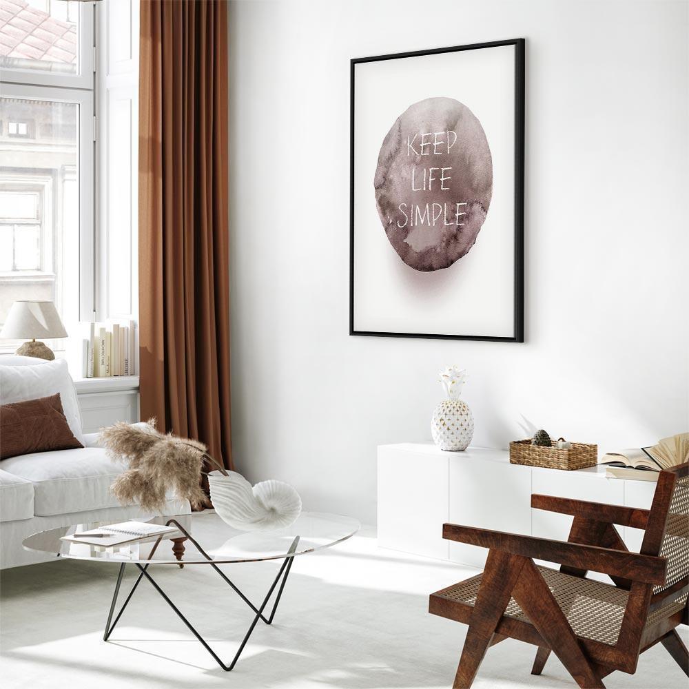 Unsere Bilder sind sicher und geruchsneutral und eignen sich daher ideal für Kinderzimmer. Die Größe wird Ihr Kind sicher beeindrucken! Bilder für Schlafzimmer sind ein echter Blickfang, genauso wie Bilder Wohnzimmer. Dekorieren Sie die Wände in Ihrem privaten Bereich mit einem Bild "Leinwandbild - Keep Life Simple (1 Part) Vertical". Wir empfehlen Bilder für Schlafzimmer , die Sie beruhigen und in eine erholsame Stimmung versetzen. Bilder aus unserer Kollektion werden Ihrem Interieur eine außergewöhnliche Atmosphäre verleihen. Unabhängig vom Raum schaffen auch Kunst Bilder eine gemütliche Atmosphäre für die Gäste. Massive Holzrahmen unterstreichen den einzigartigen Charakter der Schlafzimmerbilder, und ein schneller und sicherer Versand ist ein weiterer Vorteil, der für diese Wanddekorationen spricht Leinwandbilder sind in fünf Varianten erhältlich, sodass jeder Kunde die perfekte Option für seine Bedürfnisse findet.Die Variante auf Strukturleinwand (Standard) ist eine universelle Dekoration, die das Haushaltsbudget nicht belastet.Für Liebhaber edler Materialien ist ein Druck auf italienischer Leinwand aus 100 % Baumwolle die ideale Wahl.Und für Fans der Malerei? Hier überzeugt die außergewöhnliche Premium-Print-Technik – ein Bild, das auf Strukturleinwand gedruckt und von Hand mit einer Schicht transparenten Gels überzogen wird, die die Pinselstriche eines Künstlers imitiert – ein „wie gemalt“-Effekt, aber zu einem günstigeren Preis.Die Variante im soliden Holzrahmen des Typs American Box mit Tiefeneffekt (zwei Rahmenfarben zur Auswahl, Motiv auf Strukturleinwand gedruckt) bietet eine klassische Lösung in neuer Form.Das Akustikbild (Druck auf Strukturleinwand mit einer zusätzlichen Schicht schallabsorbierendem Schaumstoff) ist dagegen ein Volltreffer für alle, die Ästhetik mit Funktionalität verbinden möchten.Zwar sind die beiden letzten Optionen nur für bestimmte Größen von einteiligen Bildern verfügbar, doch bei allen Varianten legen wir GRATIS die erforderliche Anzahl an Haken und Nägeln zur Montage bei.