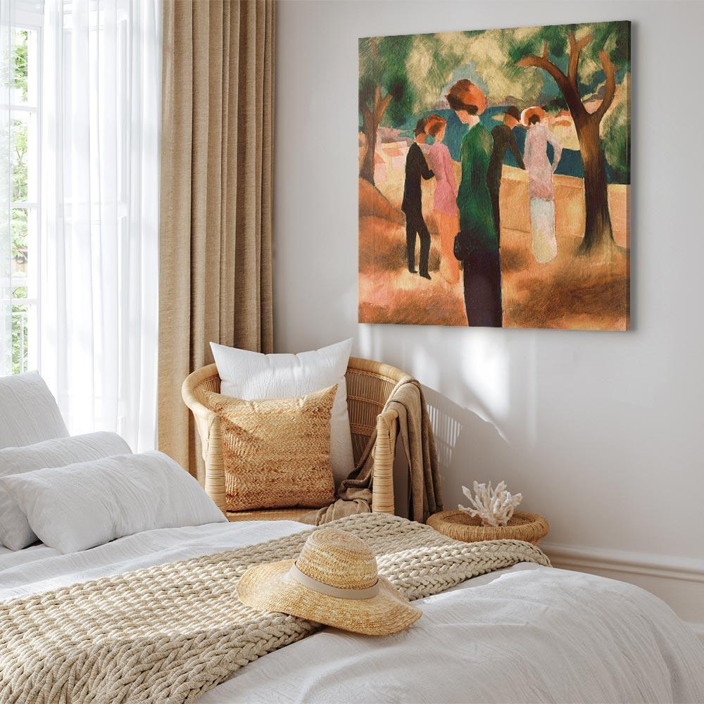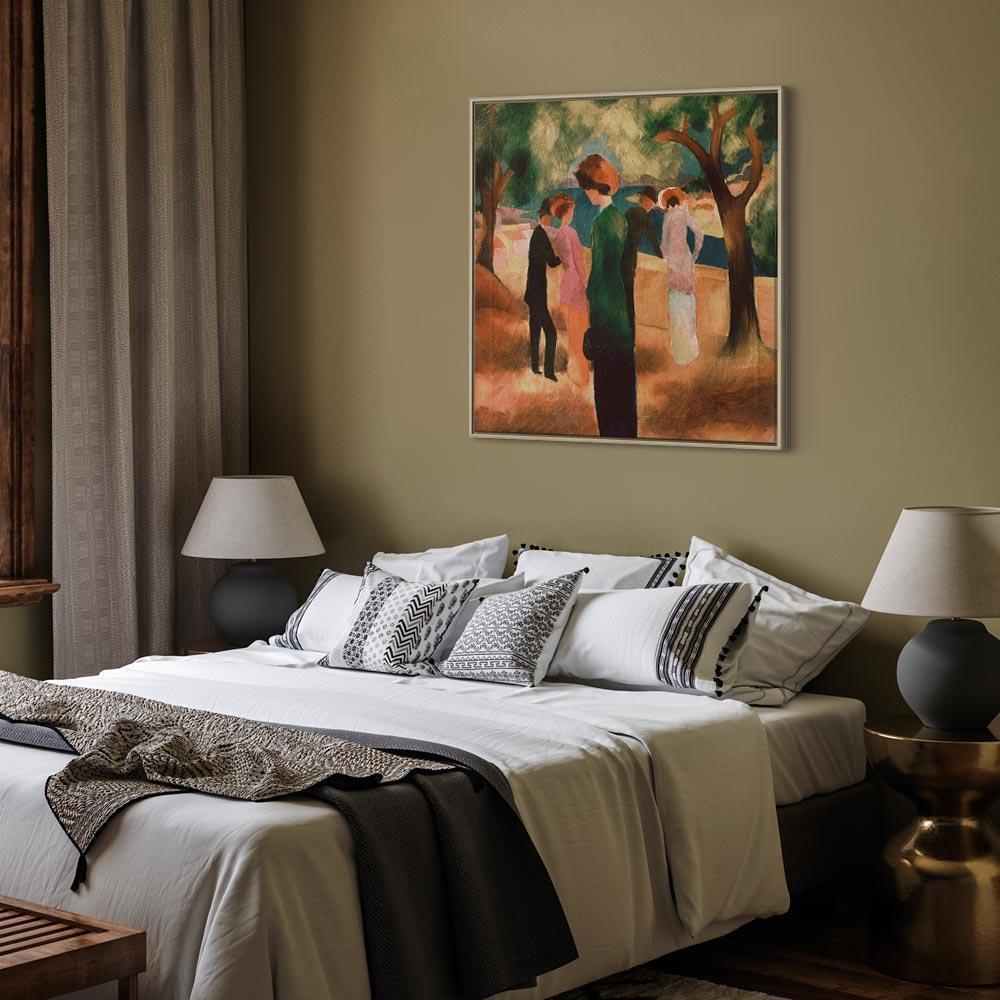 Unsere Bilder sind sicher und geruchsneutral und eignen sich daher ideal für Kinderzimmer. Die Größe wird Ihr Kind sicher beeindrucken! Bilder für Schlafzimmer sind ein echter Blickfang, genauso wie Bilder Wohnzimmer. Dekorieren Sie die Wände in Ihrem privaten Bereich mit einem Bild "Leinwandbild - August Macke – Lady in Green Jacket". Wir empfehlen Bilder für Schlafzimmer , die Sie beruhigen und in eine erholsame Stimmung versetzen. Bilder aus unserer Kollektion werden Ihrem Interieur eine außergewöhnliche Atmosphäre verleihen. Unabhängig vom Raum schaffen auch Kunst Bilder eine gemütliche Atmosphäre für die Gäste. Massive Holzrahmen unterstreichen den einzigartigen Charakter der Schlafzimmerbilder, und ein schneller und sicherer Versand ist ein weiterer Vorteil, der für diese Wanddekorationen spricht Leinwandbilder sind in fünf Varianten erhältlich, sodass jeder Kunde die perfekte Option für seine Bedürfnisse findet.Die Variante auf Strukturleinwand (Standard) ist eine universelle Dekoration, die das Haushaltsbudget nicht belastet.Für Liebhaber edler Materialien ist ein Druck auf italienischer Leinwand aus 100 % Baumwolle die ideale Wahl.Und für Fans der Malerei? Hier überzeugt die außergewöhnliche Premium-Print-Technik – ein Bild, das auf Strukturleinwand gedruckt und von Hand mit einer Schicht transparenten Gels überzogen wird, die die Pinselstriche eines Künstlers imitiert – ein „wie gemalt“-Effekt, aber zu einem günstigeren Preis.Die Variante im soliden Holzrahmen des Typs American Box mit Tiefeneffekt (zwei Rahmenfarben zur Auswahl, Motiv auf Strukturleinwand gedruckt) bietet eine klassische Lösung in neuer Form.Das Akustikbild (Druck auf Strukturleinwand mit einer zusätzlichen Schicht schallabsorbierendem Schaumstoff) ist dagegen ein Volltreffer für alle, die Ästhetik mit Funktionalität verbinden möchten.Zwar sind die beiden letzten Optionen nur für bestimmte Größen von einteiligen Bildern verfügbar, doch bei allen Varianten legen wir GRATIS die erforderliche Anzahl an Haken und Nägeln zur Montage bei.