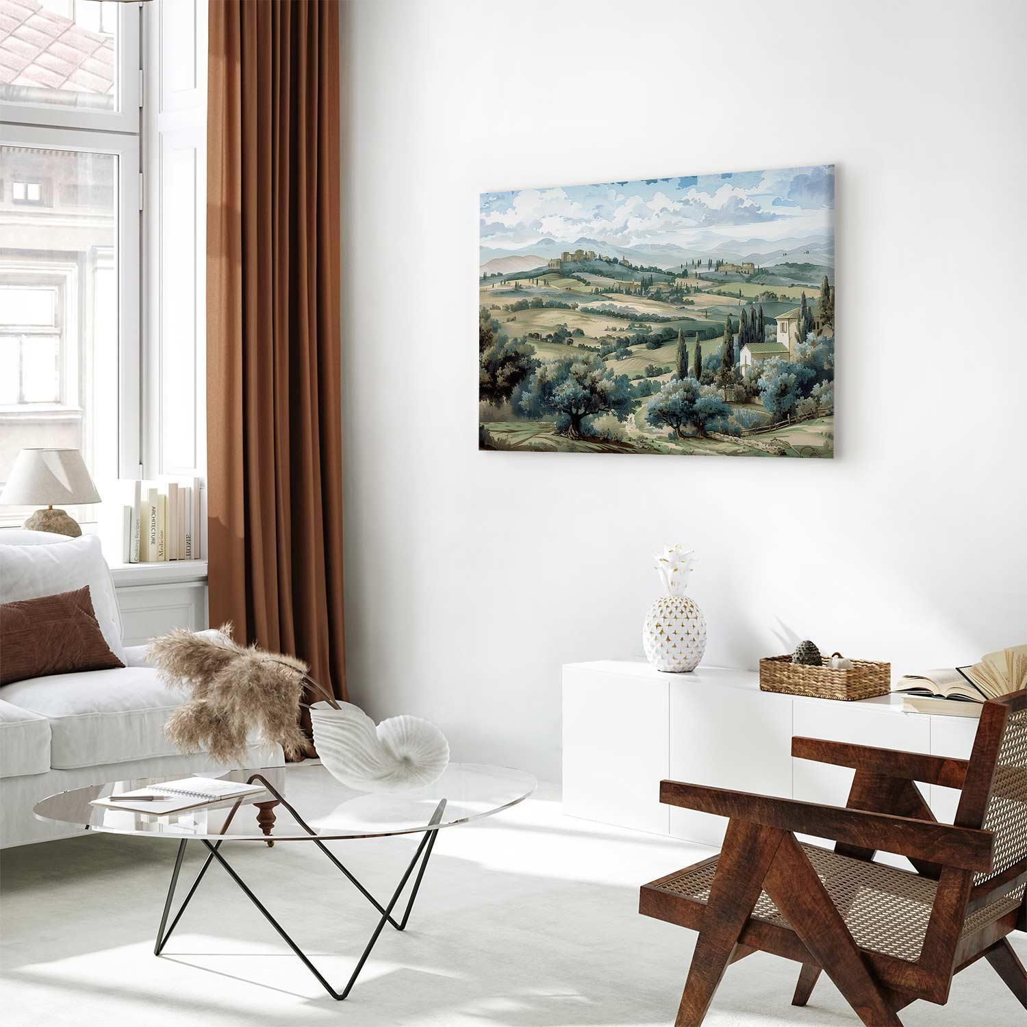 Leinwandbild - Landscape with Green Fields and Trees Tuscan Sunny View