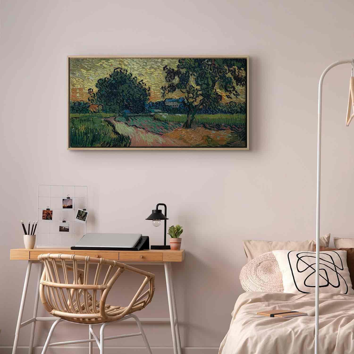Unsere Bilder sind sicher und geruchsneutral und eignen sich daher ideal für Kinderzimmer. Die Größe wird Ihr Kind sicher beeindrucken! Bilder für Schlafzimmer sind ein echter Blickfang, genauso wie Bilder Wohnzimmer. Dekorieren Sie die Wände in Ihrem privaten Bereich mit einem Bild "Leinwandbild - Vincent Van Gogh – Landscape with the Chateau of Auvers at Sunset". Wir empfehlen Bilder für Schlafzimmer , die Sie beruhigen und in eine erholsame Stimmung versetzen. Bilder aus unserer Kollektion werden Ihrem Interieur eine außergewöhnliche Atmosphäre verleihen. Unabhängig vom Raum schaffen auch Kunst Bilder eine gemütliche Atmosphäre für die Gäste. Massive Holzrahmen unterstreichen den einzigartigen Charakter der Schlafzimmerbilder, und ein schneller und sicherer Versand ist ein weiterer Vorteil, der für diese Wanddekorationen spricht Leinwandbilder sind in fünf Varianten erhältlich, sodass jeder Kunde die perfekte Option für seine Bedürfnisse findet.Die Variante auf Strukturleinwand (Standard) ist eine universelle Dekoration, die das Haushaltsbudget nicht belastet.Für Liebhaber edler Materialien ist ein Druck auf italienischer Leinwand aus 100 % Baumwolle die ideale Wahl.Und für Fans der Malerei? Hier überzeugt die außergewöhnliche Premium-Print-Technik – ein Bild, das auf Strukturleinwand gedruckt und von Hand mit einer Schicht transparenten Gels überzogen wird, die die Pinselstriche eines Künstlers imitiert – ein „wie gemalt“-Effekt, aber zu einem günstigeren Preis.Die Variante im soliden Holzrahmen des Typs American Box mit Tiefeneffekt (zwei Rahmenfarben zur Auswahl, Motiv auf Strukturleinwand gedruckt) bietet eine klassische Lösung in neuer Form.Das Akustikbild (Druck auf Strukturleinwand mit einer zusätzlichen Schicht schallabsorbierendem Schaumstoff) ist dagegen ein Volltreffer für alle, die Ästhetik mit Funktionalität verbinden möchten.Zwar sind die beiden letzten Optionen nur für bestimmte Größen von einteiligen Bildern verfügbar, doch bei allen Varianten legen wir GRATIS die erforderliche Anzahl an Haken und Nägeln zur Montage bei.