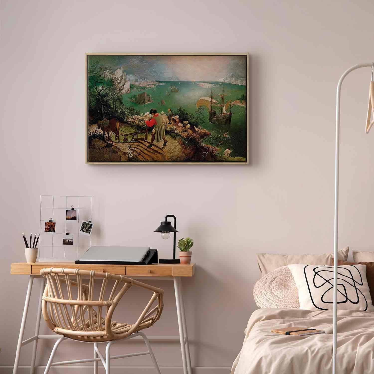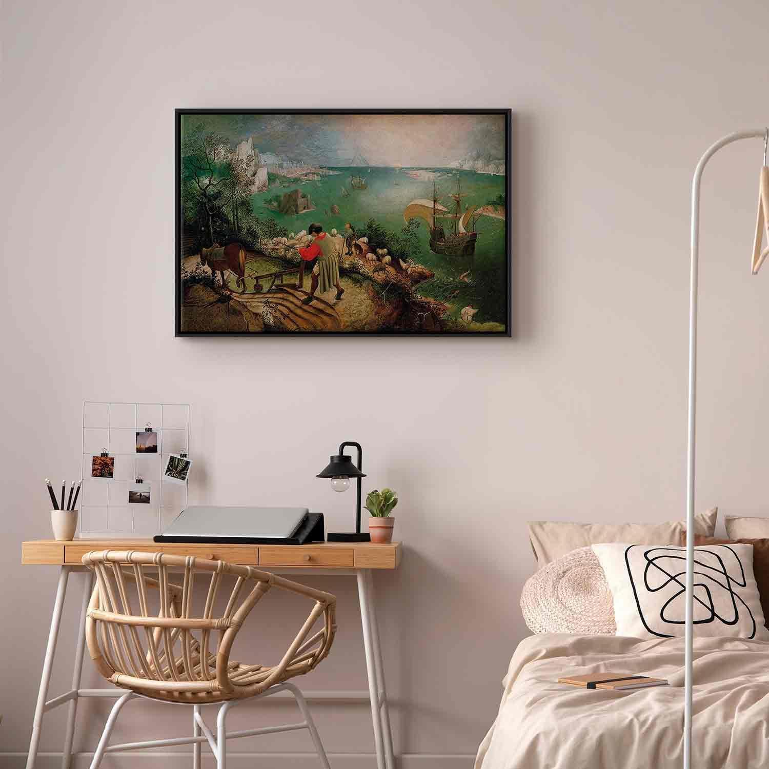 Unsere Bilder sind sicher und geruchsneutral und eignen sich daher ideal für Kinderzimmer. Die Größe wird Ihr Kind sicher beeindrucken! Bilder für Schlafzimmer sind ein echter Blickfang, genauso wie Bilder Wohnzimmer. Dekorieren Sie die Wände in Ihrem privaten Bereich mit einem Bild "Leinwandbild - Pieter Bruegel the Elder – Landscape with the Fall of Icarus". Wir empfehlen Bilder für Schlafzimmer , die Sie beruhigen und in eine erholsame Stimmung versetzen. Bilder aus unserer Kollektion werden Ihrem Interieur eine außergewöhnliche Atmosphäre verleihen. Unabhängig vom Raum schaffen auch Kunst Bilder eine gemütliche Atmosphäre für die Gäste. Massive Holzrahmen unterstreichen den einzigartigen Charakter der Schlafzimmerbilder, und ein schneller und sicherer Versand ist ein weiterer Vorteil, der für diese Wanddekorationen spricht Leinwandbilder sind in fünf Varianten erhältlich, sodass jeder Kunde die perfekte Option für seine Bedürfnisse findet.Die Variante auf Strukturleinwand (Standard) ist eine universelle Dekoration, die das Haushaltsbudget nicht belastet.Für Liebhaber edler Materialien ist ein Druck auf italienischer Leinwand aus 100 % Baumwolle die ideale Wahl.Und für Fans der Malerei? Hier überzeugt die außergewöhnliche Premium-Print-Technik – ein Bild, das auf Strukturleinwand gedruckt und von Hand mit einer Schicht transparenten Gels überzogen wird, die die Pinselstriche eines Künstlers imitiert – ein „wie gemalt“-Effekt, aber zu einem günstigeren Preis.Die Variante im soliden Holzrahmen des Typs American Box mit Tiefeneffekt (zwei Rahmenfarben zur Auswahl, Motiv auf Strukturleinwand gedruckt) bietet eine klassische Lösung in neuer Form.Das Akustikbild (Druck auf Strukturleinwand mit einer zusätzlichen Schicht schallabsorbierendem Schaumstoff) ist dagegen ein Volltreffer für alle, die Ästhetik mit Funktionalität verbinden möchten.Zwar sind die beiden letzten Optionen nur für bestimmte Größen von einteiligen Bildern verfügbar, doch bei allen Varianten legen wir GRATIS die erforderliche Anzahl an Haken und Nägeln zur Montage bei.