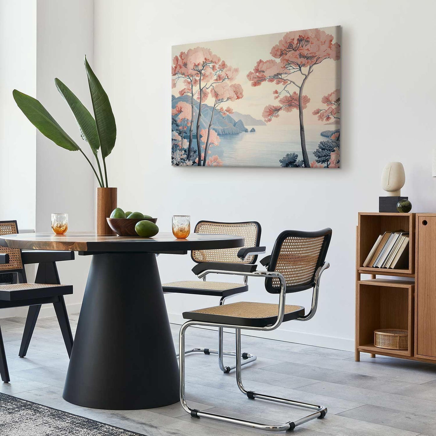 Unsere Bilder sind sicher und geruchsneutral und eignen sich daher ideal für Kinderzimmer. Die Größe wird Ihr Kind sicher beeindrucken! Bilder für Schlafzimmer sind ein echter Blickfang, genauso wie Bilder Wohnzimmer. Dekorieren Sie die Wände in Ihrem privaten Bereich mit einem Bild "Leinwandbild - Landscape with the Ocean Cliffs and Trees in Delicate Pink Shades". Wir empfehlen Bilder für Schlafzimmer, die Sie beruhigen und in eine erholsame Stimmung versetzen. Bilder aus unserer Kollektion werden Ihrem Interieur eine außergewöhnliche Atmosphäre verleihen. Unabhängig vom Raum schaffen auch Kunst Bilder eine gemütliche Atmosphäre für die Gäste. Massive Holzrahmen unterstreichen den einzigartigen Charakter der Schlafzimmerbilder, und ein schneller und sicherer Versand ist ein weiterer Vorteil, der für diese Wanddekorationen spricht. Bilder auf Leinwand sind in vier Versionen erhältlich, aus denen jeder Kunde die perfekte Option für seine Bedürfnisse finden wird. Das Angebot umfasst eine Version auf Vliesleinwand (Standard), auf italienischer Leinwand, Premium Print (ein Bild, das auf italienischer Leinwand gedruckt und von Hand mit einer Schicht transparentem Gel überzogen ist, das die Pinselstriche des Künstlers imitiert) sowie in einem soliden, hölzernen American-Box-Rahmen (zwei Rahmenfarben zur Auswahl, Muster gedruckt auf italienischer Leinwand).
