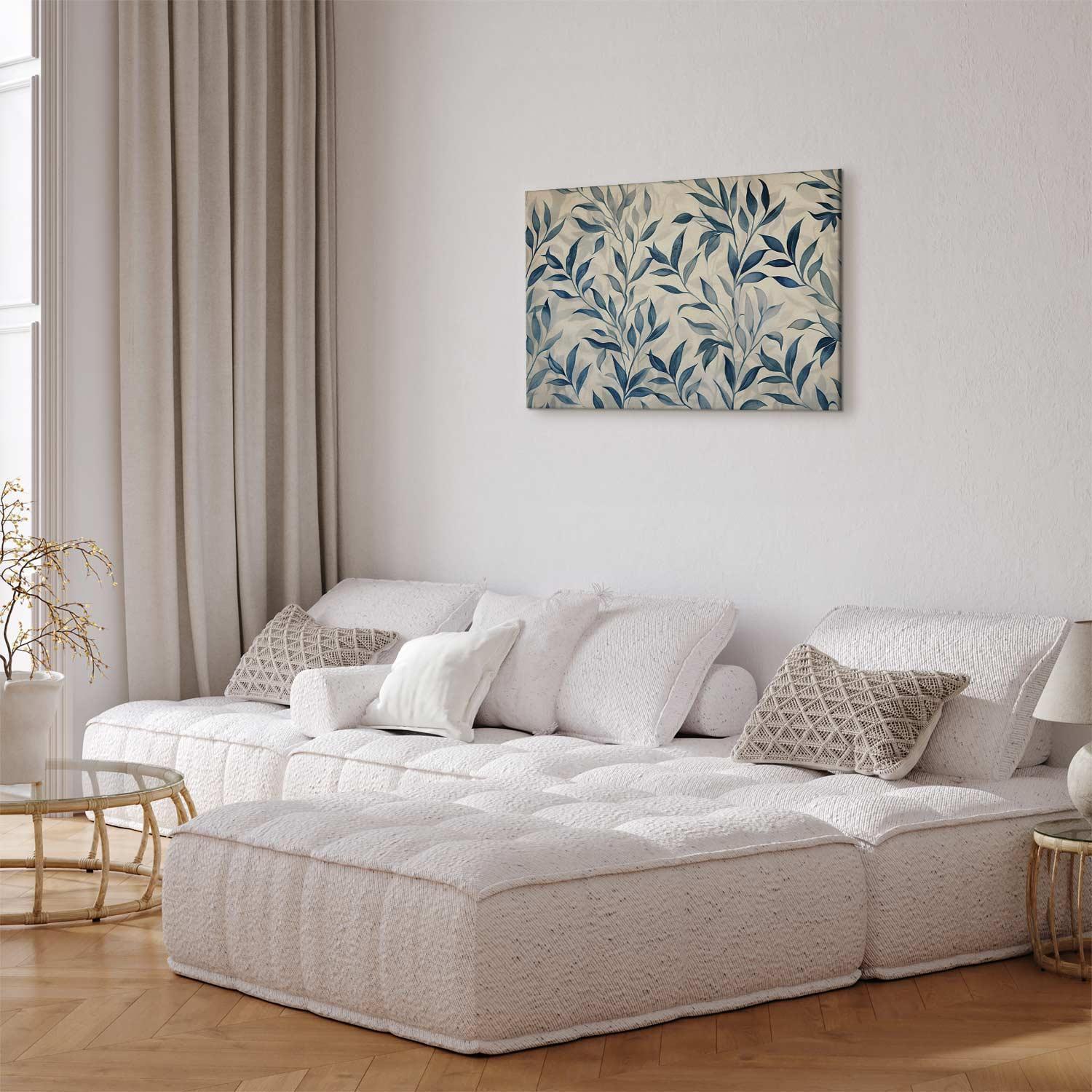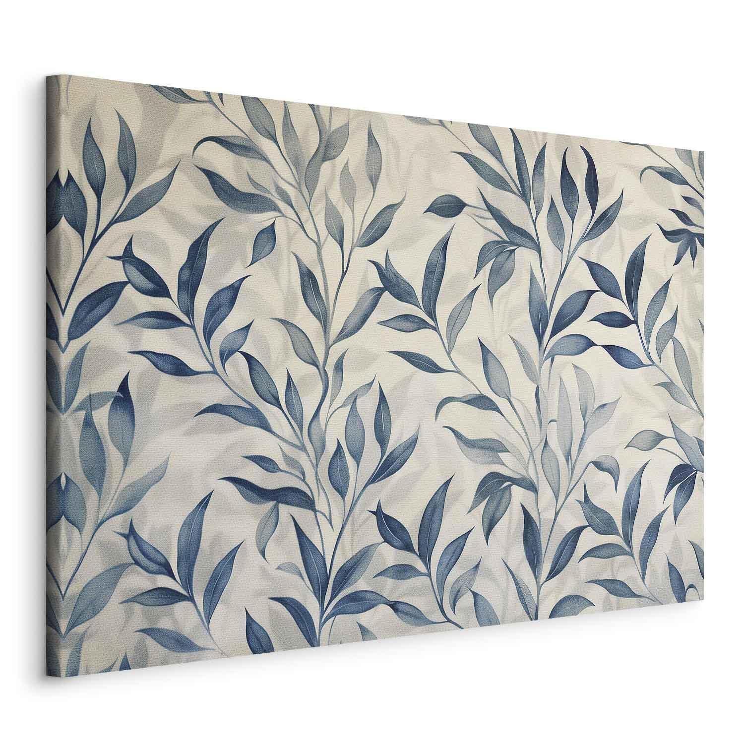 Leinwandbild - Leaves in Blue Color Delicate Botanical Motif