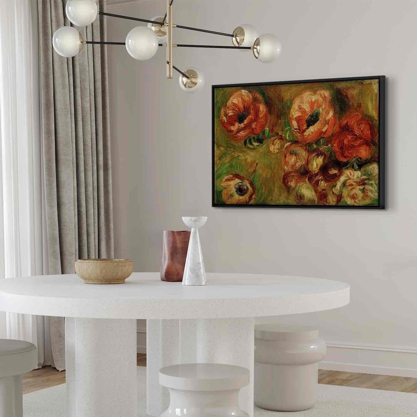 Unsere Bilder sind sicher und geruchsneutral und eignen sich daher ideal für Kinderzimmer. Die Größe wird Ihr Kind sicher beeindrucken! Bilder für Schlafzimmer sind ein echter Blickfang, genauso wie Bilder Wohnzimmer. Dekorieren Sie die Wände in Ihrem privaten Bereich mit einem Bild "Leinwandbild - Les Anémones (Pierre-Auguste Renoir)". Wir empfehlen Bilder für Schlafzimmer, die Sie beruhigen und in eine erholsame Stimmung versetzen. Bilder aus unserer Kollektion werden Ihrem Interieur eine außergewöhnliche Atmosphäre verleihen. Unabhängig vom Raum schaffen auch Kunst Bilder eine gemütliche Atmosphäre für die Gäste. Massive Holzrahmen unterstreichen den einzigartigen Charakter der Schlafzimmerbilder, und ein schneller und sicherer Versand ist ein weiterer Vorteil, der für diese Wanddekorationen spricht. Bilder auf Leinwand sind in vier Versionen erhältlich, aus denen jeder Kunde die perfekte Option für seine Bedürfnisse finden wird. Das Angebot umfasst eine Version auf Vliesleinwand (Standard), auf italienischer Leinwand, Premium Print (ein Bild, das auf italienischer Leinwand gedruckt und von Hand mit einer Schicht transparentem Gel überzogen ist, das die Pinselstriche des Künstlers imitiert) sowie in einem soliden, hölzernen American-Box-Rahmen (zwei Rahmenfarben zur Auswahl, Muster gedruckt auf italienischer Leinwand).