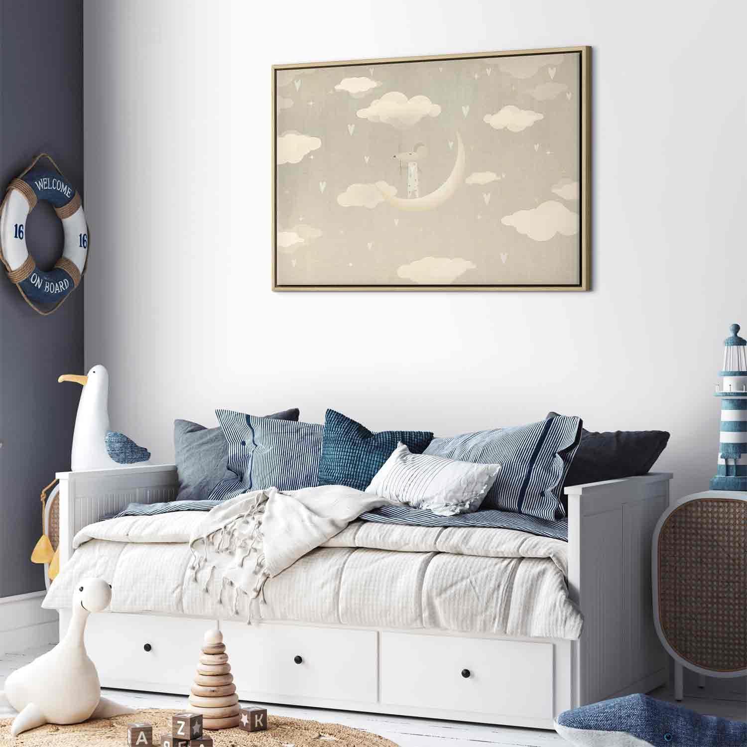Unsere Bilder sind sicher und geruchsneutral und eignen sich daher ideal für Kinderzimmer. Die Größe wird Ihr Kind sicher beeindrucken! Bilder für Schlafzimmer sind ein echter Blickfang, genauso wie Bilder Wohnzimmer. Dekorieren Sie die Wände in Ihrem privaten Bereich mit einem Bild "Leinwandbild - Little Conqueror - A Mouse in Heart Pajamas on the Moon Among Clouds". Wir empfehlen Bilder für Schlafzimmer , die Sie beruhigen und in eine erholsame Stimmung versetzen. Bilder aus unserer Kollektion werden Ihrem Interieur eine außergewöhnliche Atmosphäre verleihen. Unabhängig vom Raum schaffen auch Kunst Bilder eine gemütliche Atmosphäre für die Gäste. Massive Holzrahmen unterstreichen den einzigartigen Charakter der Schlafzimmerbilder, und ein schneller und sicherer Versand ist ein weiterer Vorteil, der für diese Wanddekorationen spricht Leinwandbilder sind in fünf Varianten erhältlich, sodass jeder Kunde die perfekte Option für seine Bedürfnisse findet.Die Variante auf Strukturleinwand (Standard) ist eine universelle Dekoration, die das Haushaltsbudget nicht belastet.Für Liebhaber edler Materialien ist ein Druck auf italienischer Leinwand aus 100 % Baumwolle die ideale Wahl.Und für Fans der Malerei? Hier überzeugt die außergewöhnliche Premium-Print-Technik – ein Bild, das auf Strukturleinwand gedruckt und von Hand mit einer Schicht transparenten Gels überzogen wird, die die Pinselstriche eines Künstlers imitiert – ein „wie gemalt“-Effekt, aber zu einem günstigeren Preis.Die Variante im soliden Holzrahmen des Typs American Box mit Tiefeneffekt (zwei Rahmenfarben zur Auswahl, Motiv auf Strukturleinwand gedruckt) bietet eine klassische Lösung in neuer Form.Das Akustikbild (Druck auf Strukturleinwand mit einer zusätzlichen Schicht schallabsorbierendem Schaumstoff) ist dagegen ein Volltreffer für alle, die Ästhetik mit Funktionalität verbinden möchten.Zwar sind die beiden letzten Optionen nur für bestimmte Größen von einteiligen Bildern verfügbar, doch bei allen Varianten legen wir GRATIS die erforderliche Anzahl an Haken und Nägeln zur Montage bei.