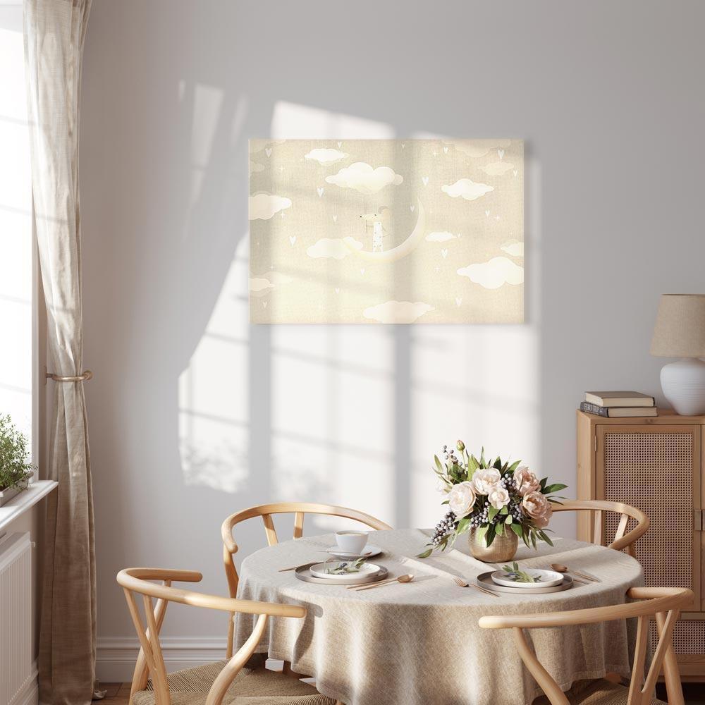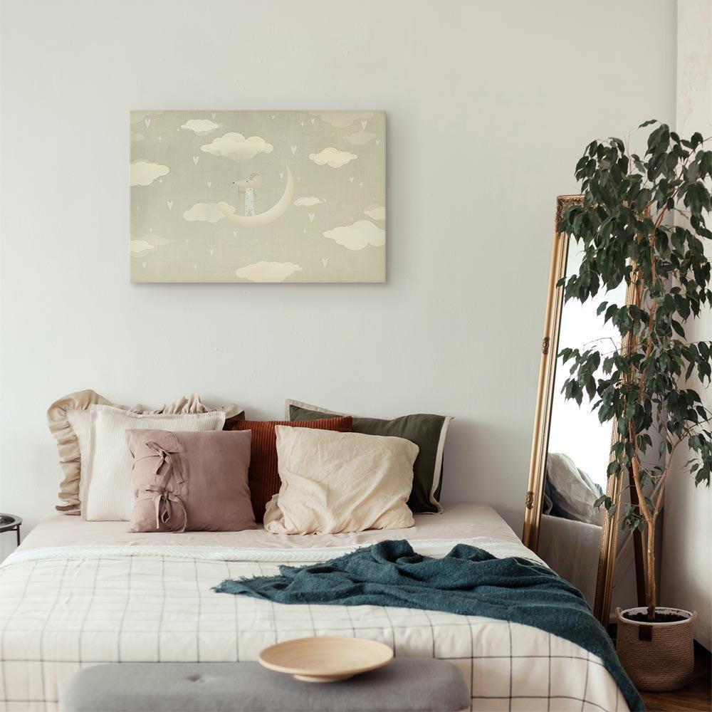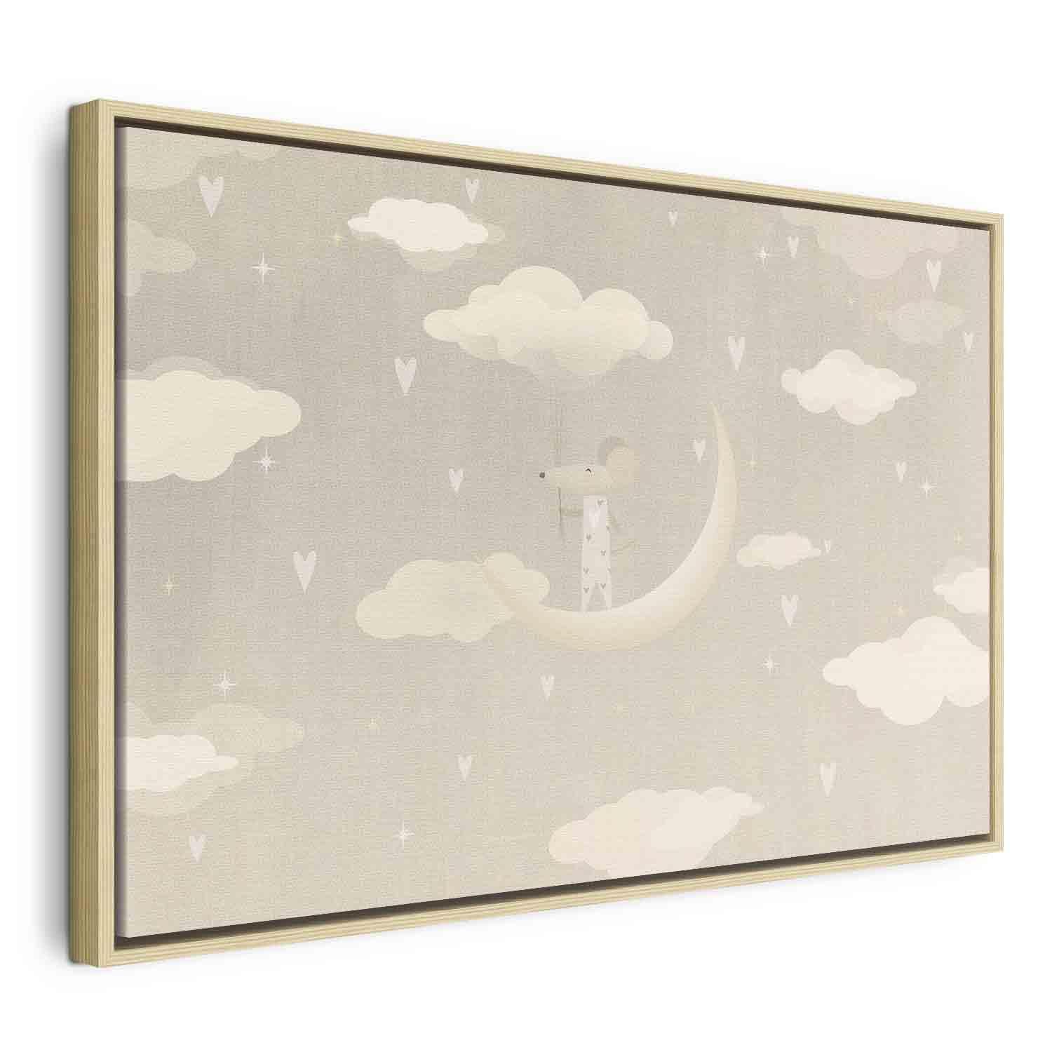 Leinwandbild - Little Conqueror - A Mouse in Heart Pajamas on the Moon Among Clouds