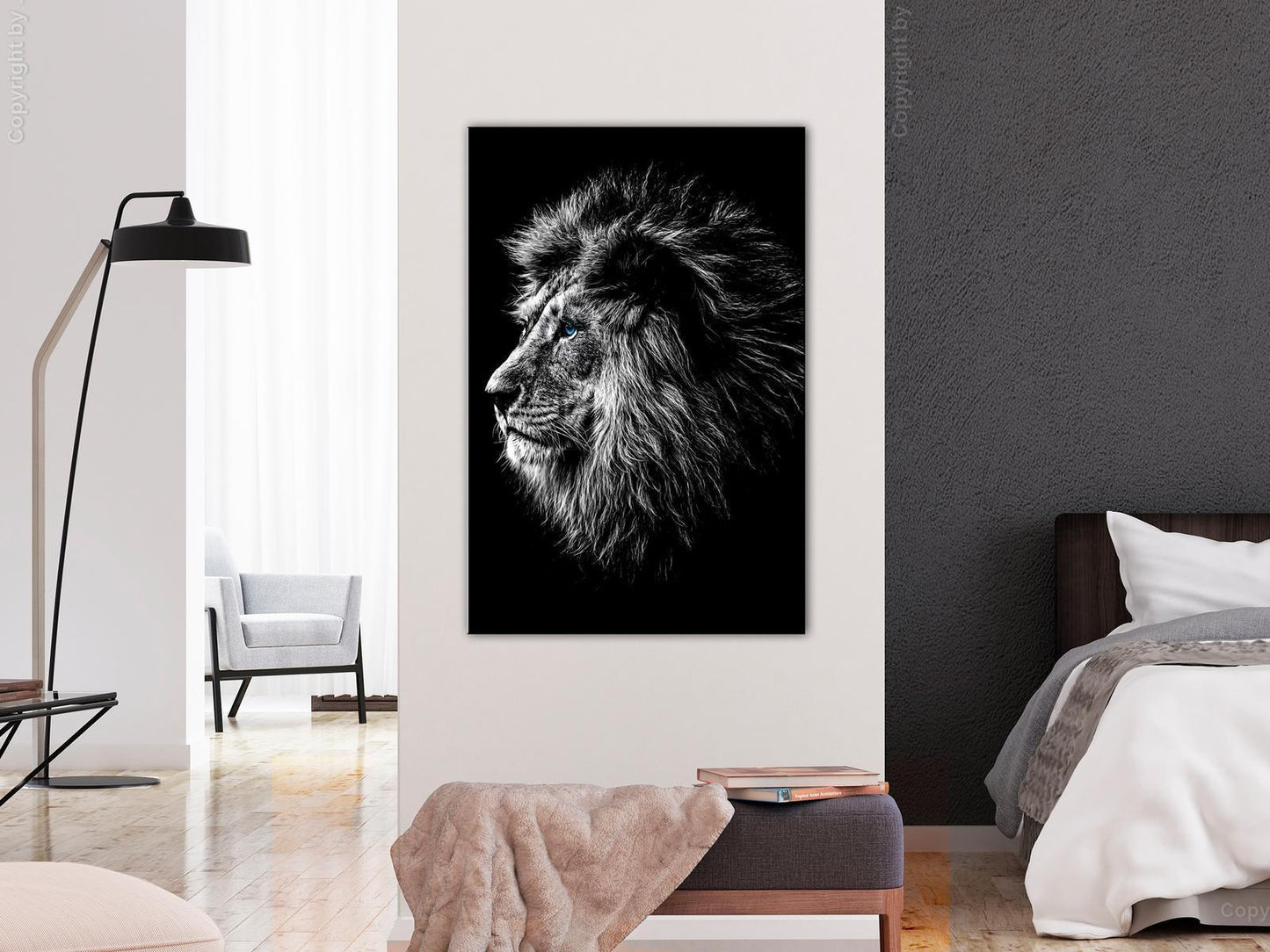 Leinwandbild Löwe mit blauen Augen – Kraftvolles Tierporträt in Schwarz-Weiß